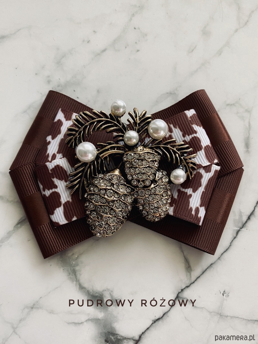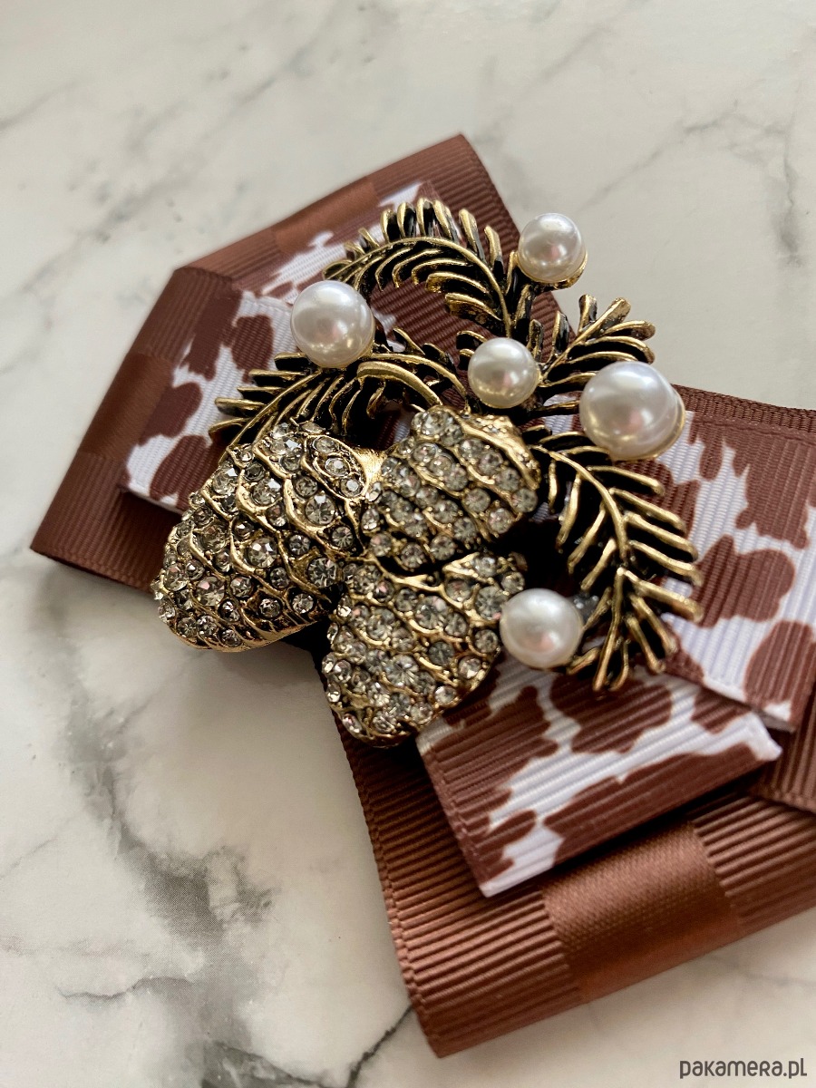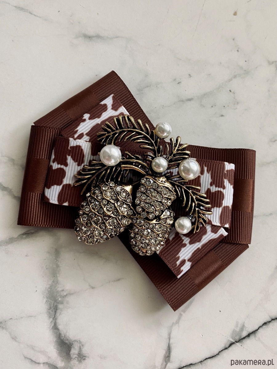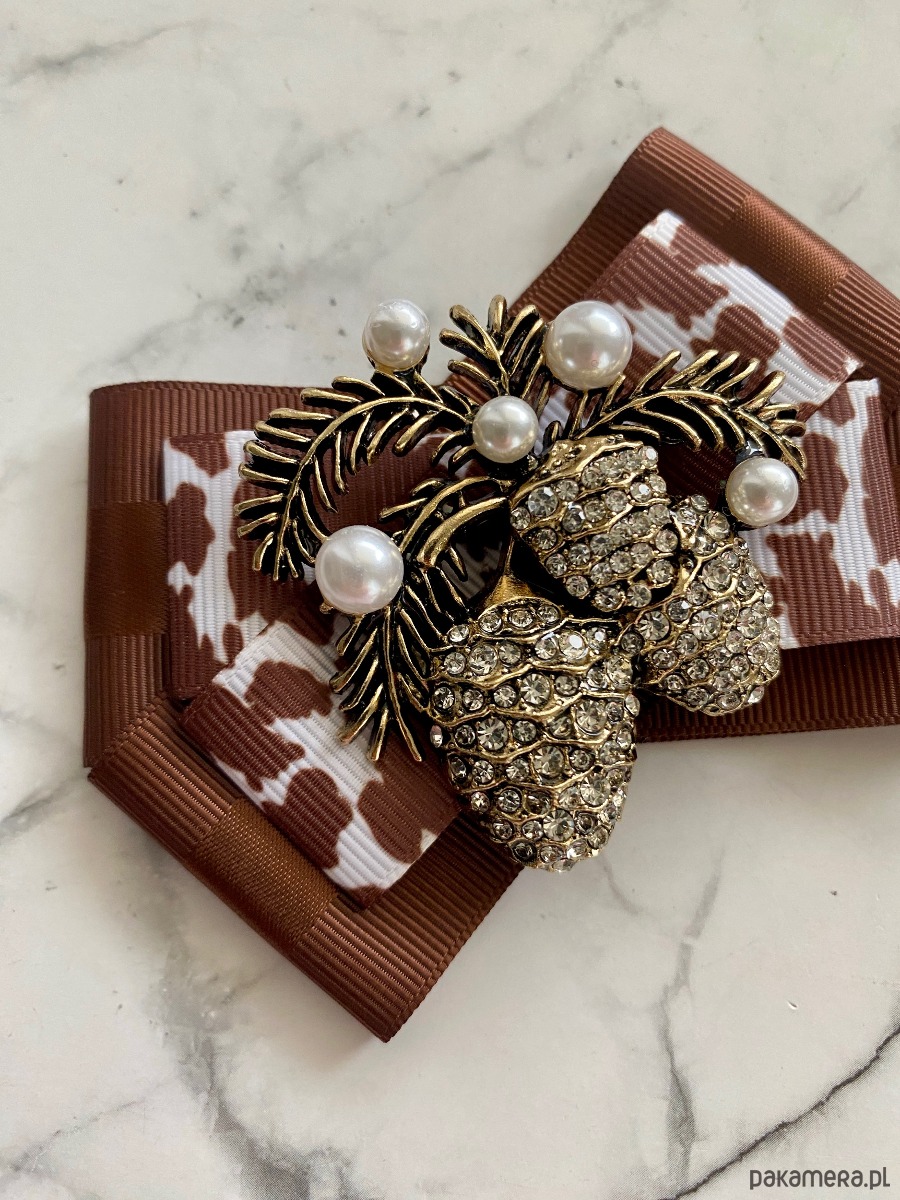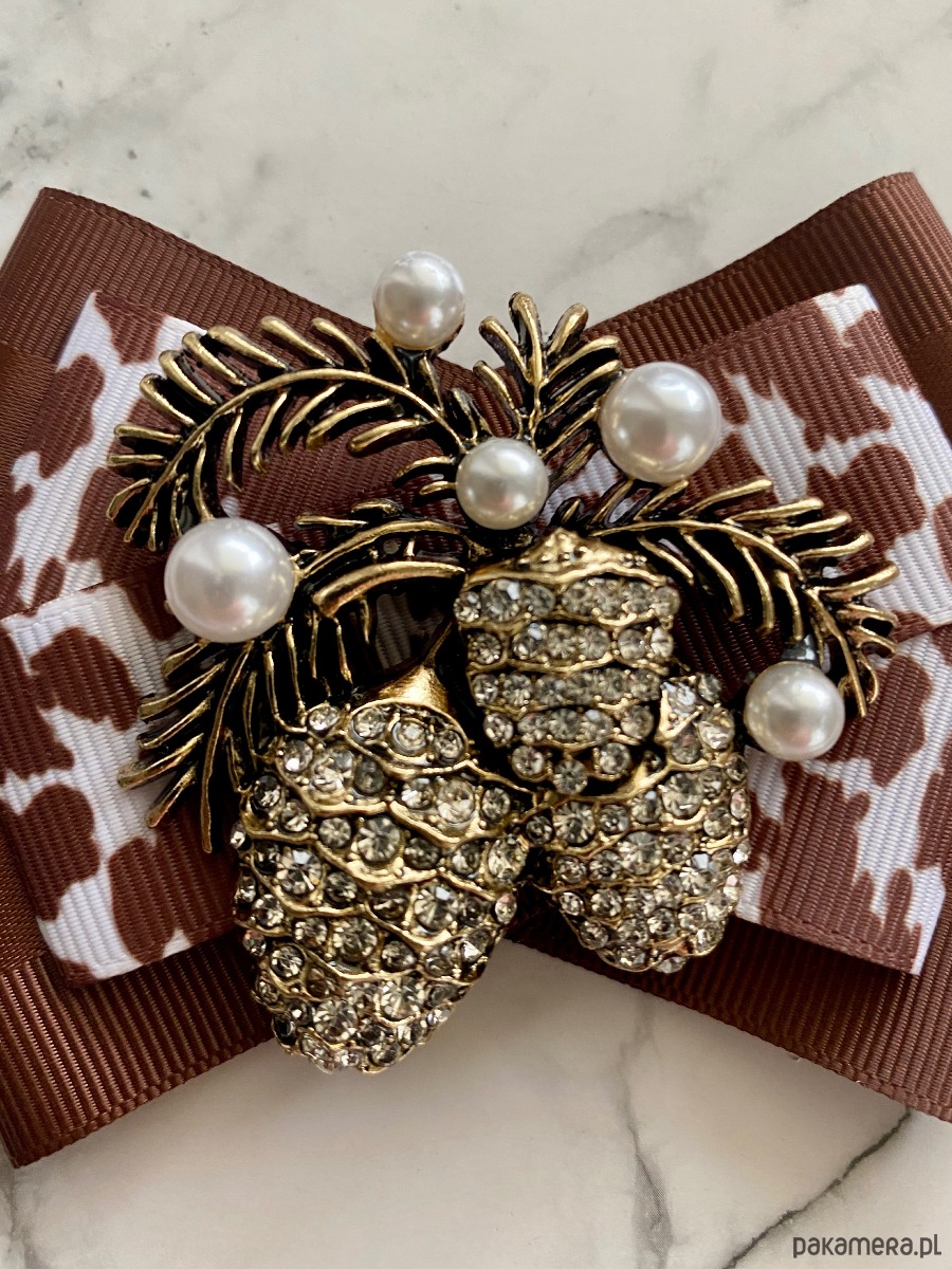 Broszka wykonana z wysokiej jakości taśm i dodatków.