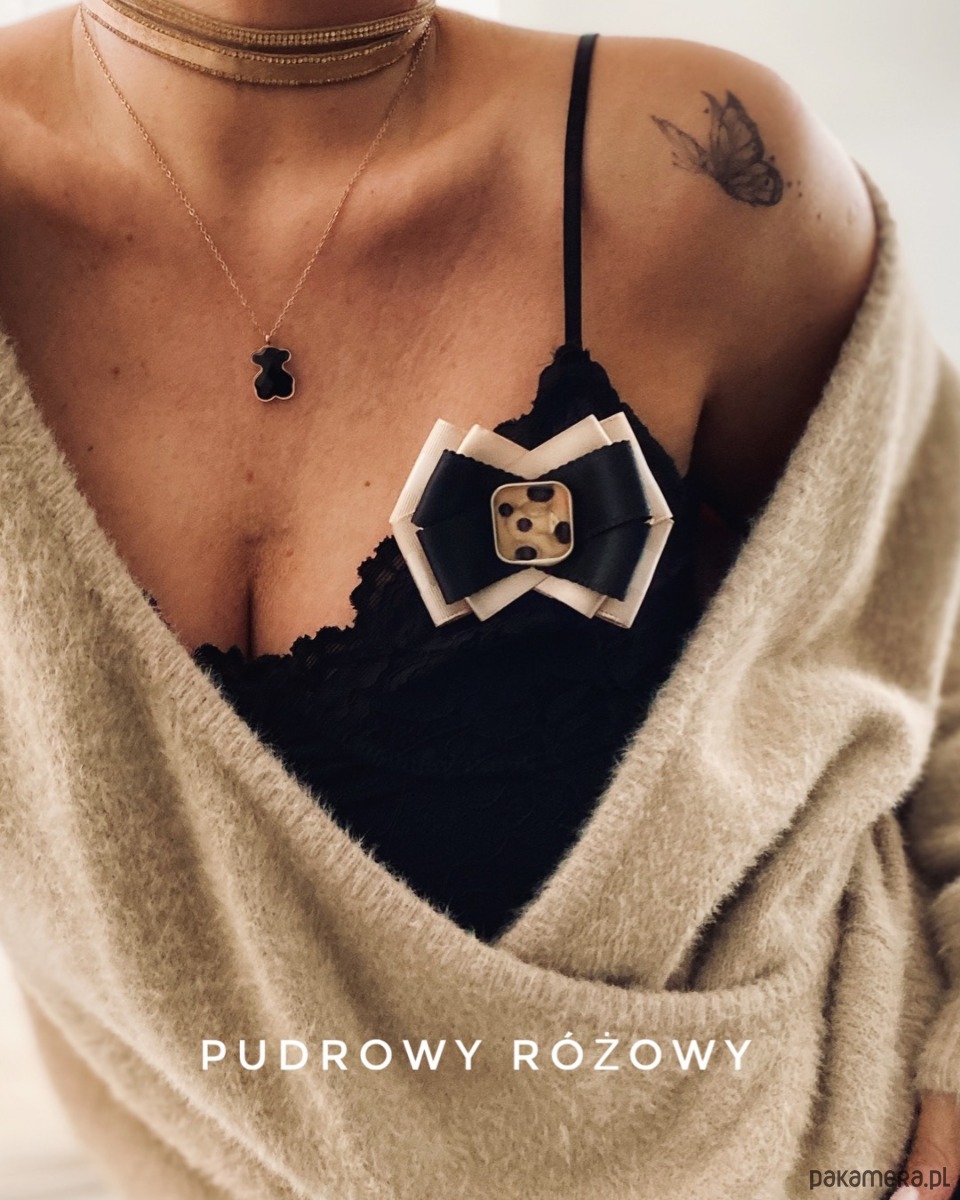 Broszka wykonana z wysokiej jakości taśm i dodatków.