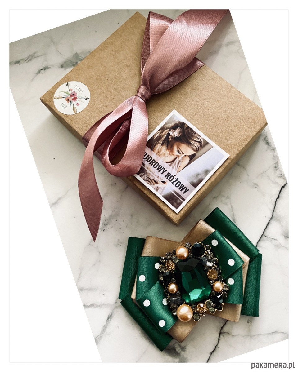 Broszka wykonana z wysokiej jakości taśm i dodatków.