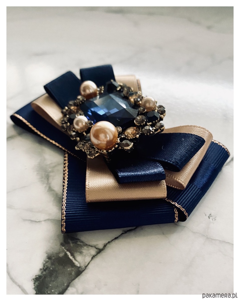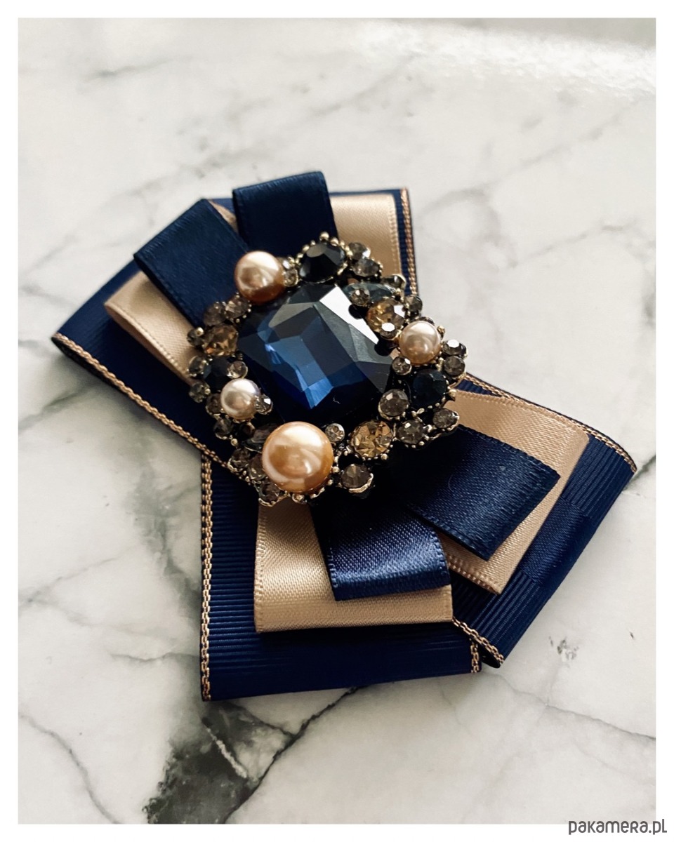 Broszka wykonana z wysokiej jakości taśm i dodatków.