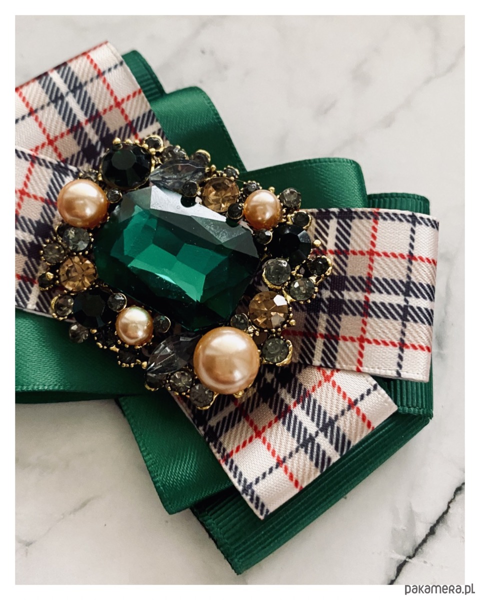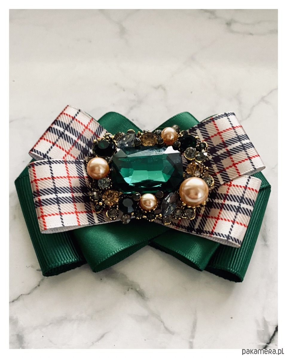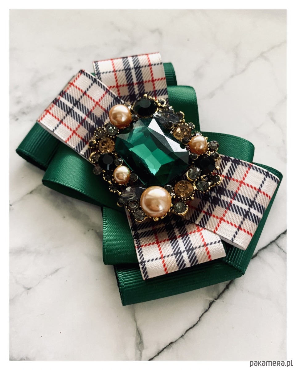 Broszka wykonana z wysokiej jakości taśm i dodatków.