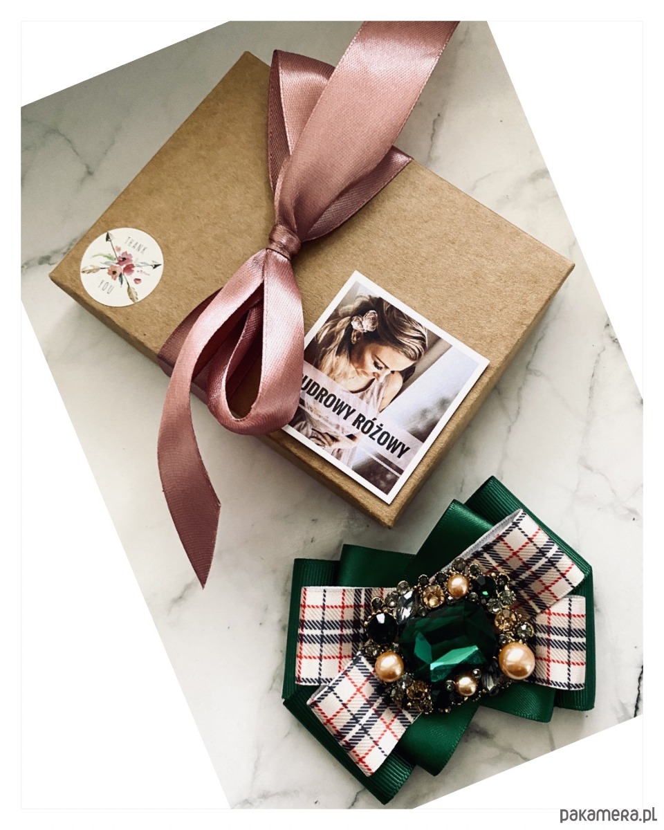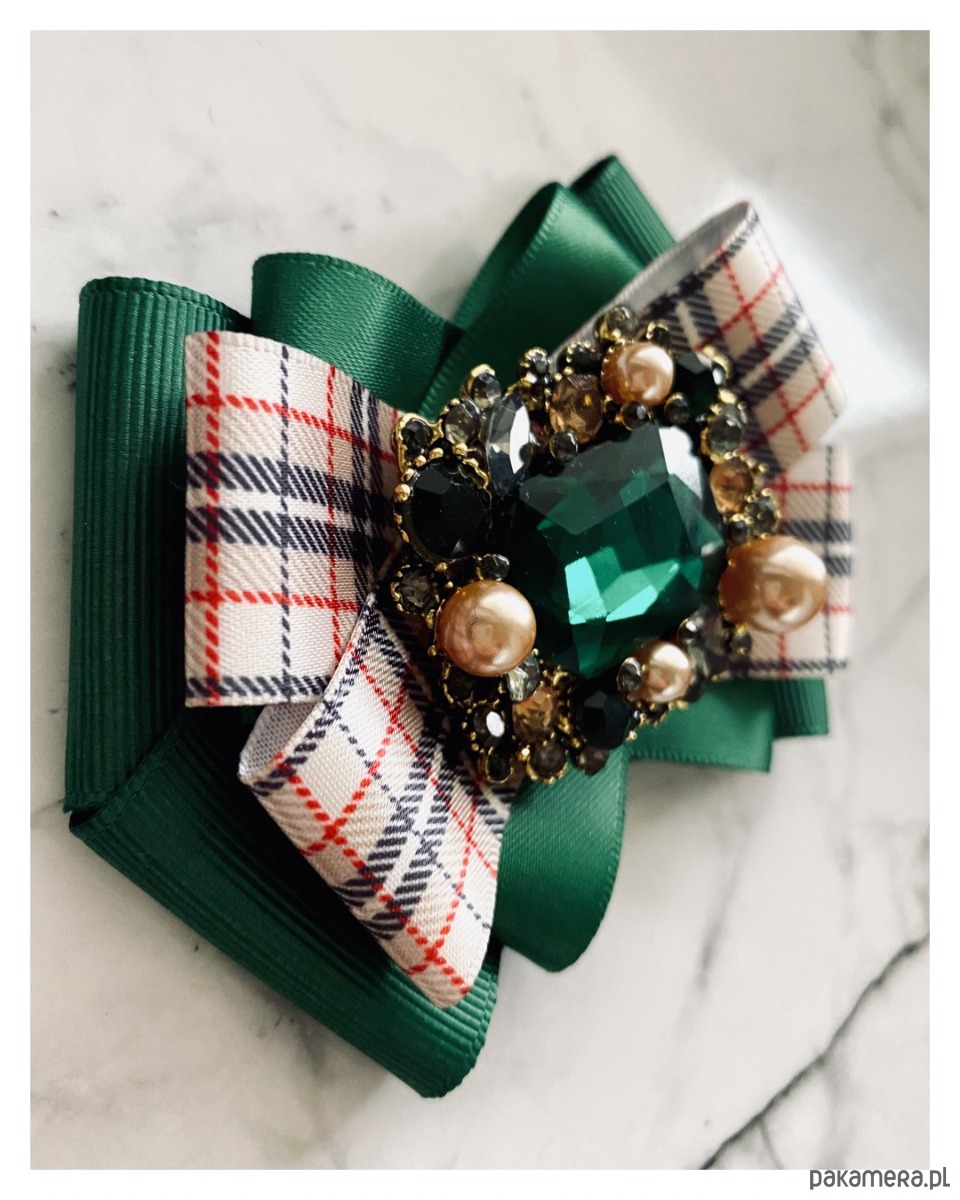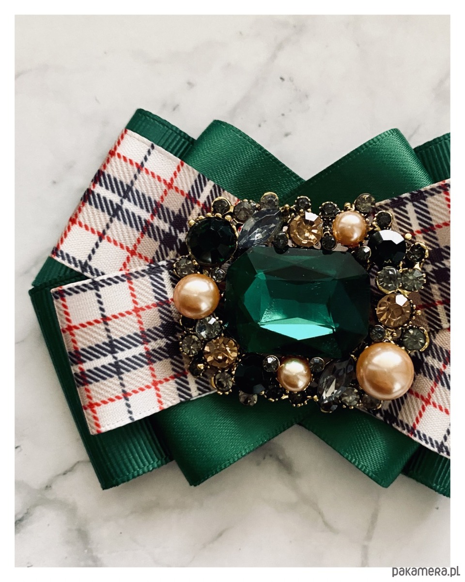 Broszka wykonana z wysokiej jakości taśm i dodatków.