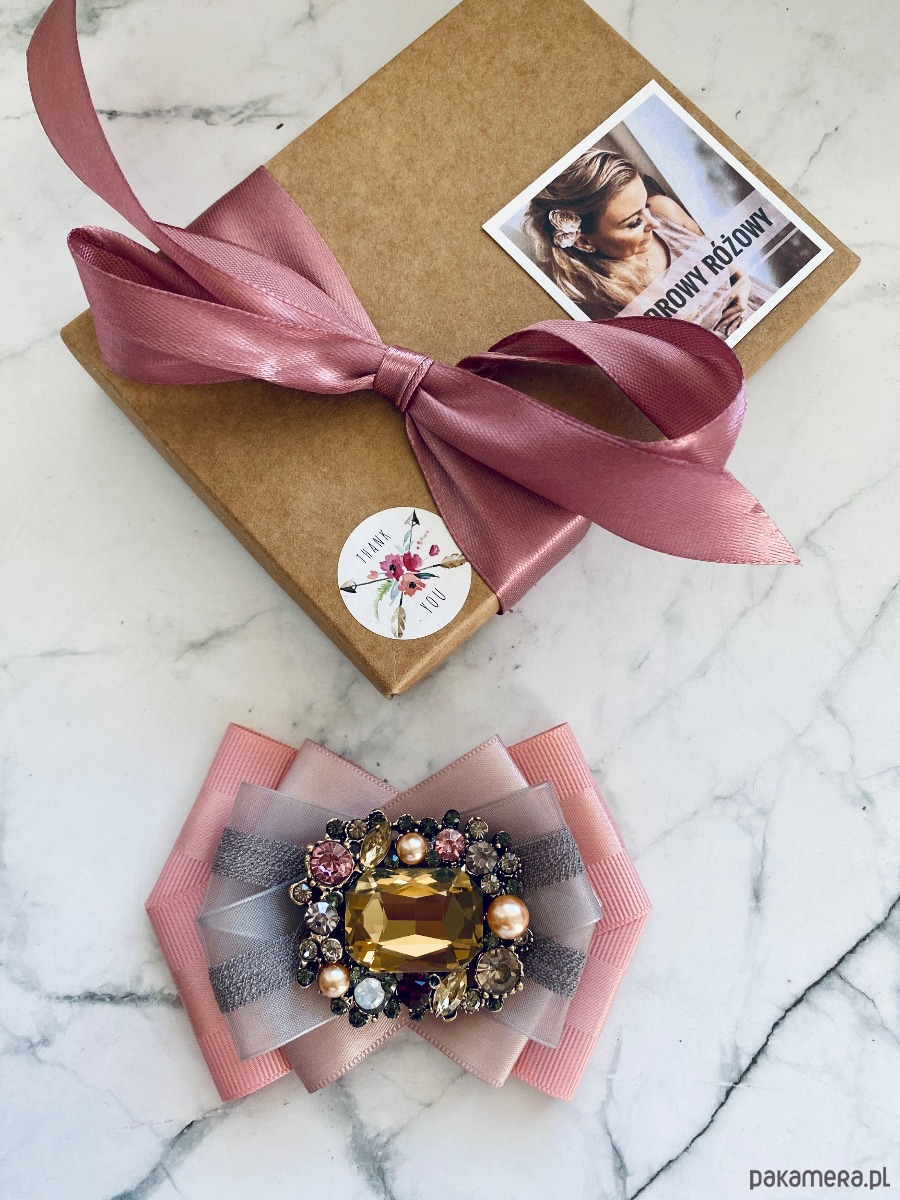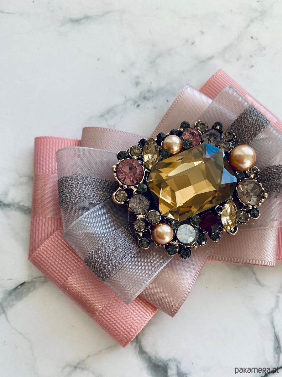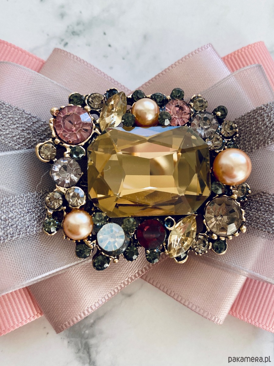 Broszka wykonana z wysokiej jakości taśm i dodatków.