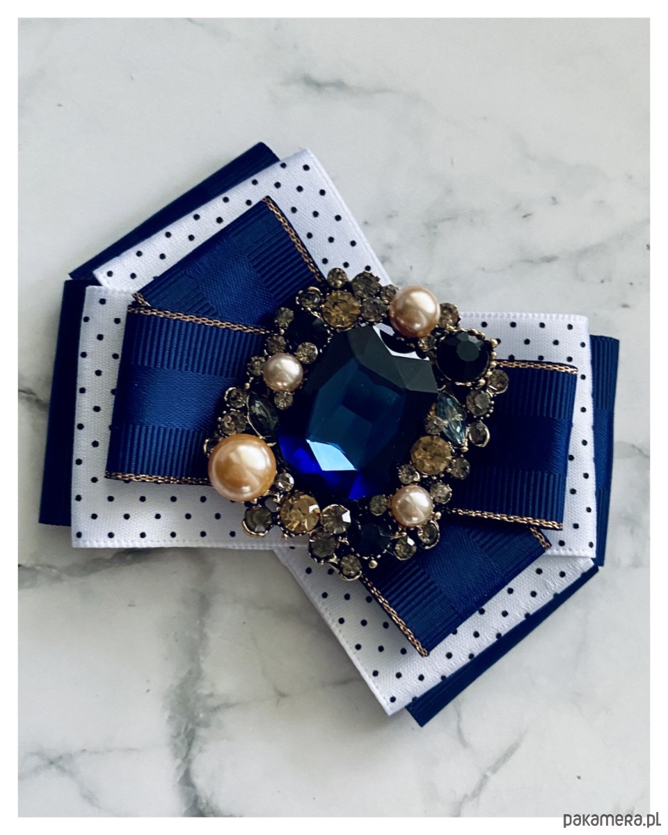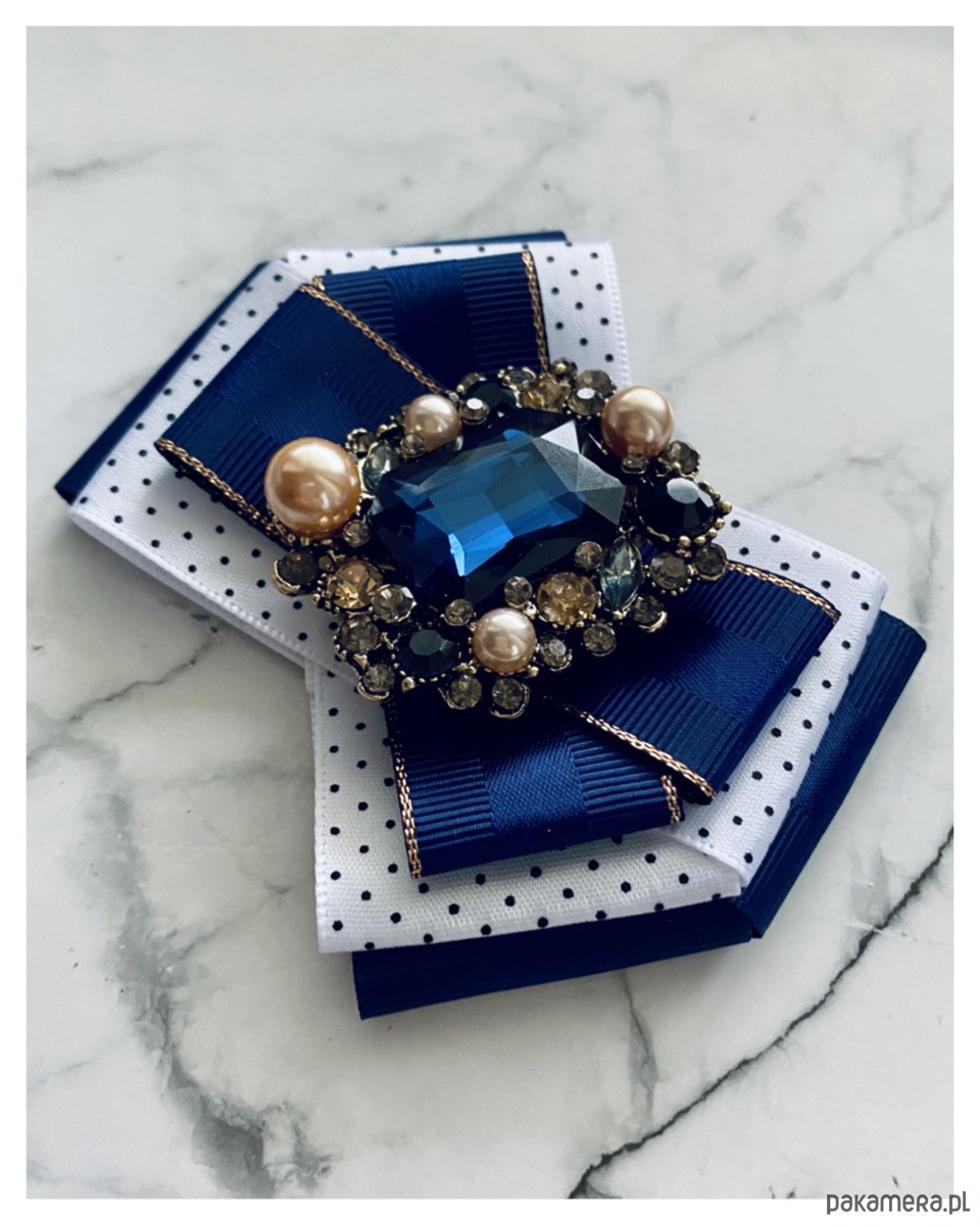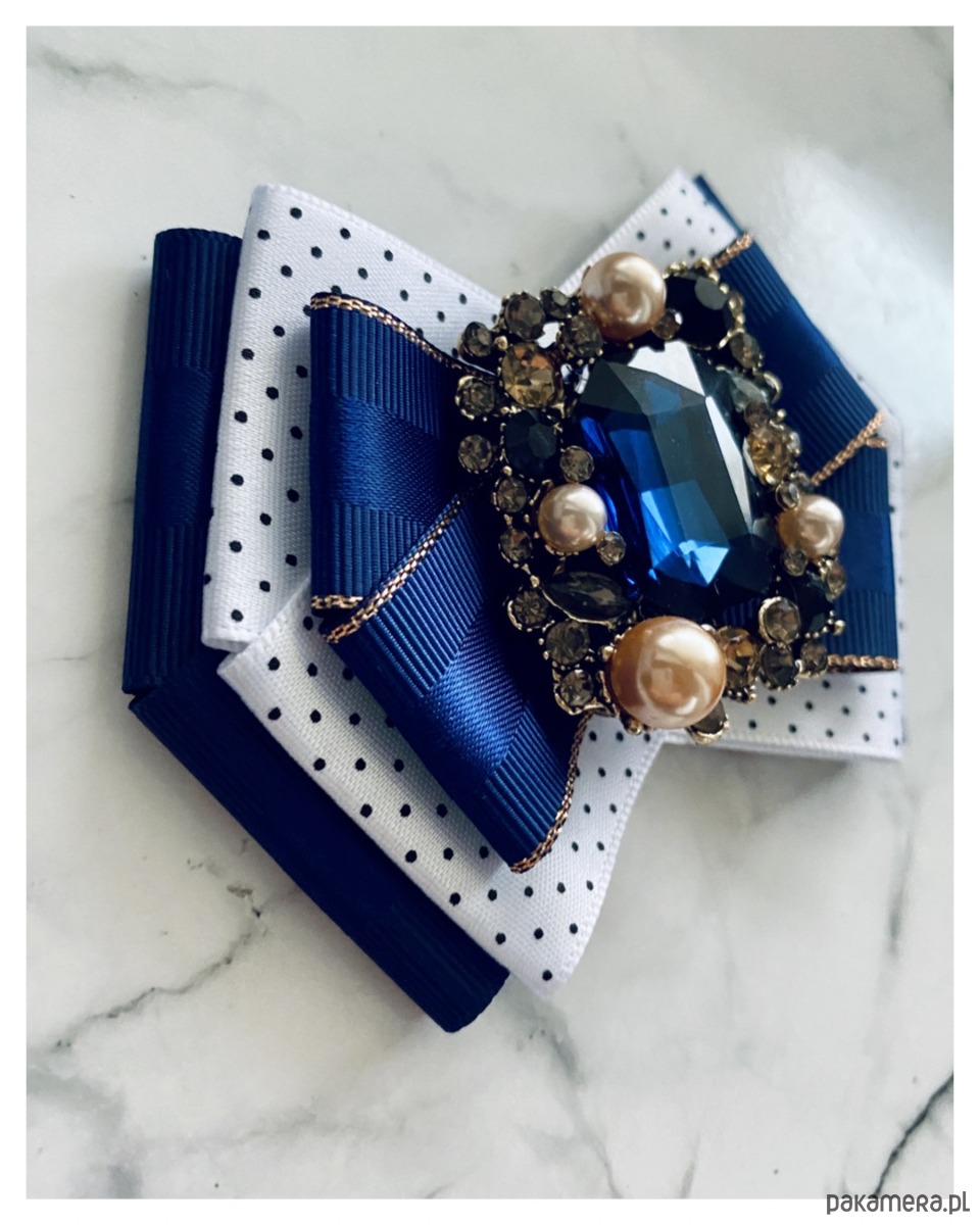 Broszka wykonana z wysokiej jakości taśm i dodatków.