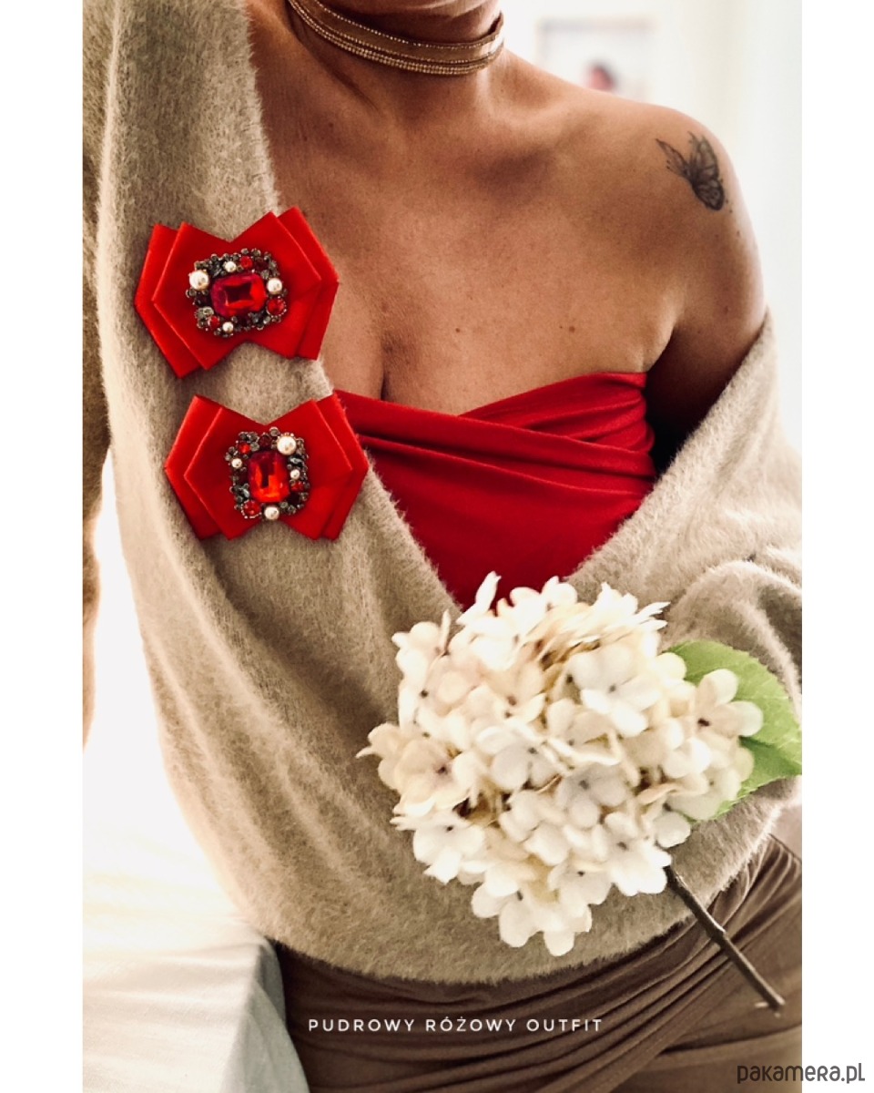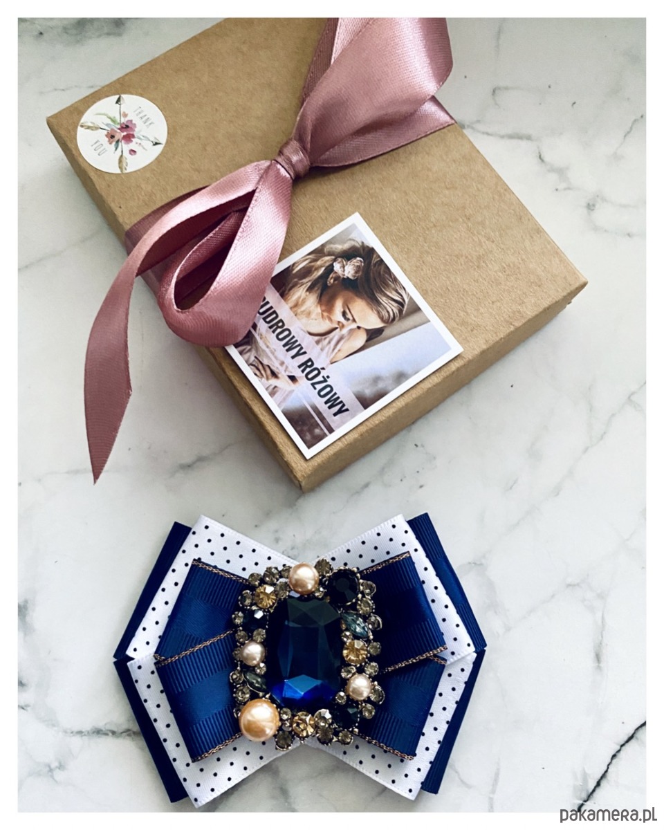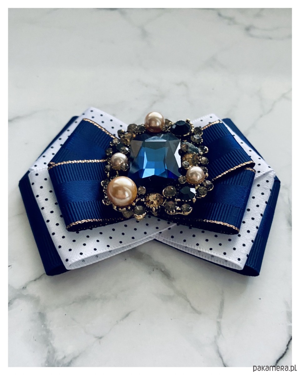 Broszka wykonana z wysokiej jakości taśm i dodatków.
