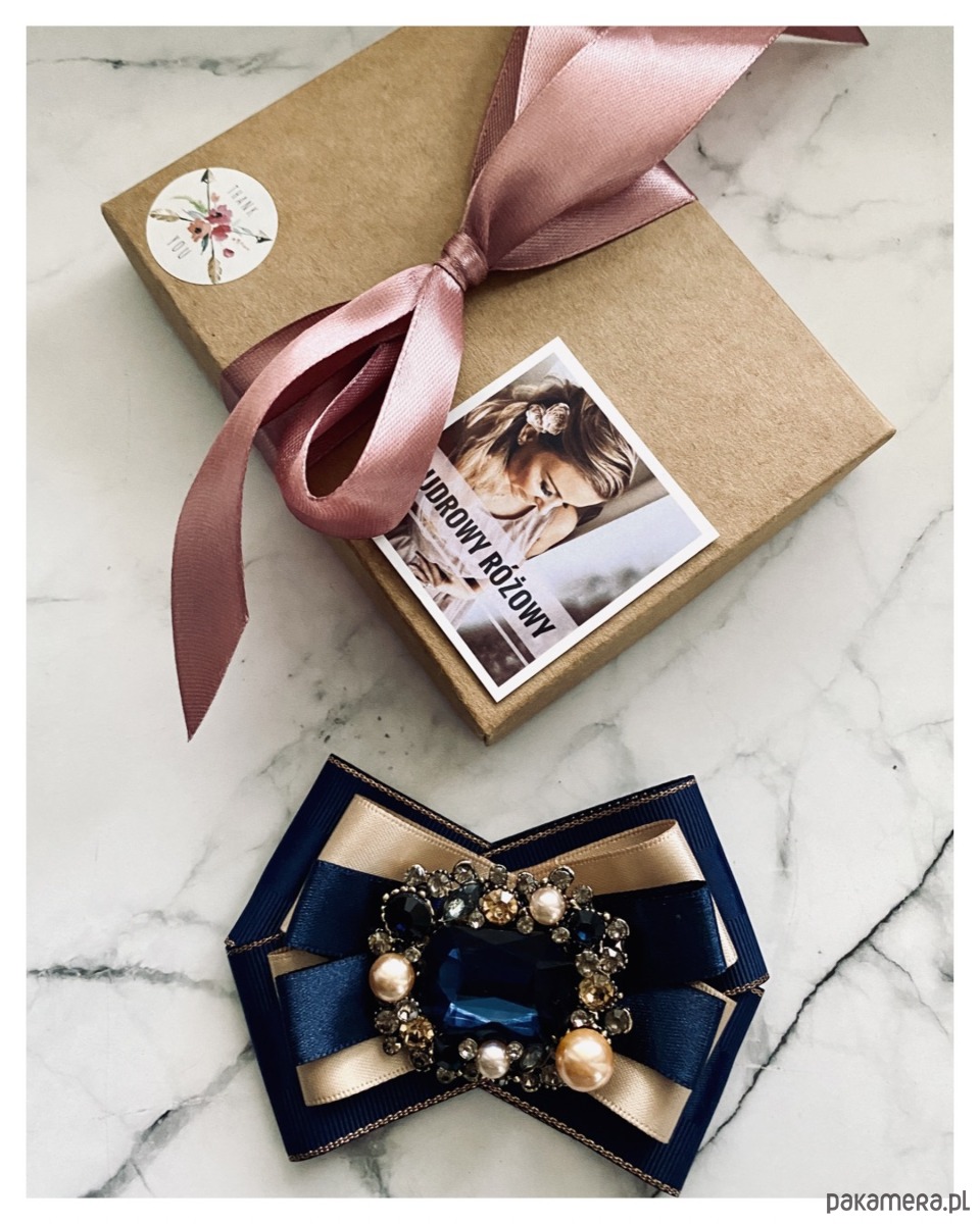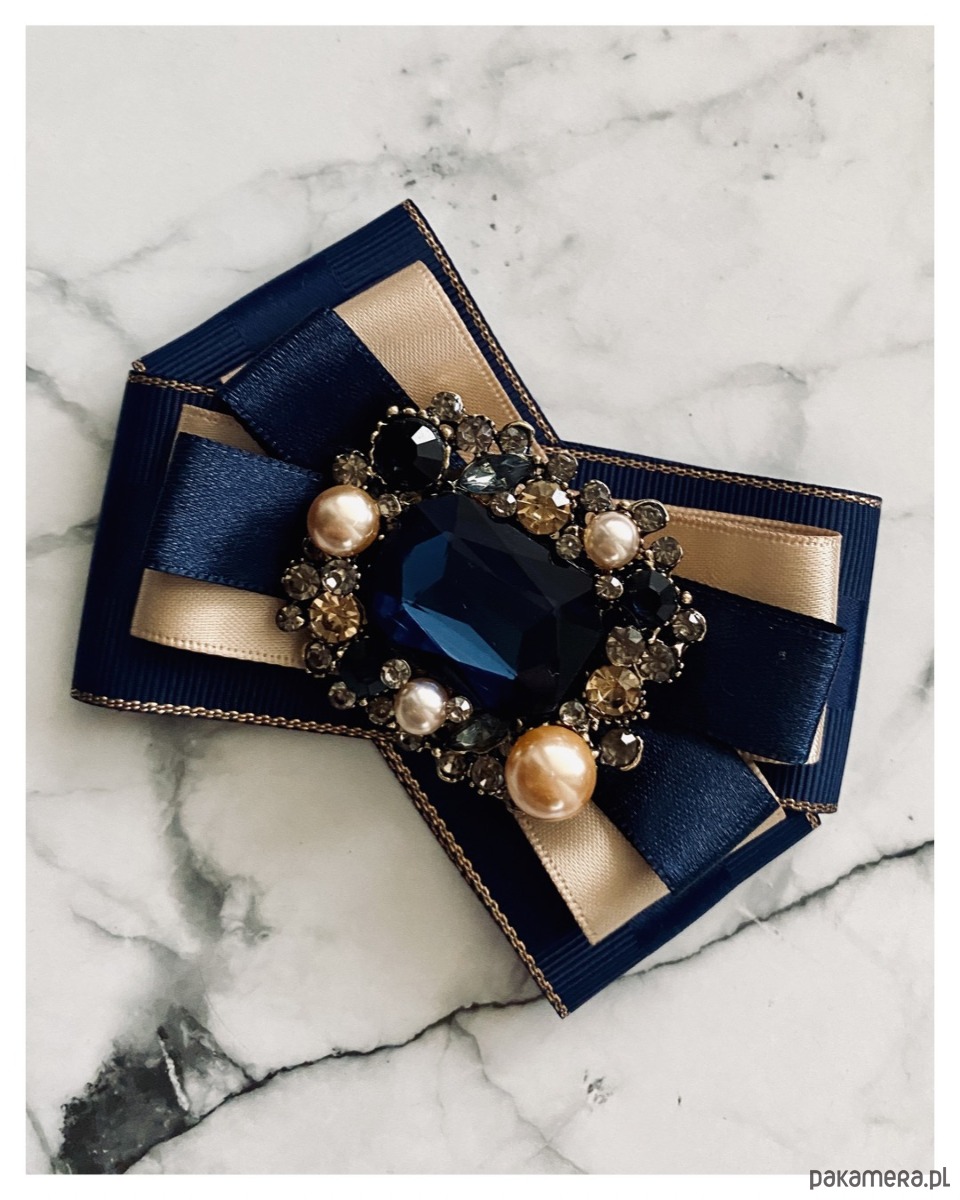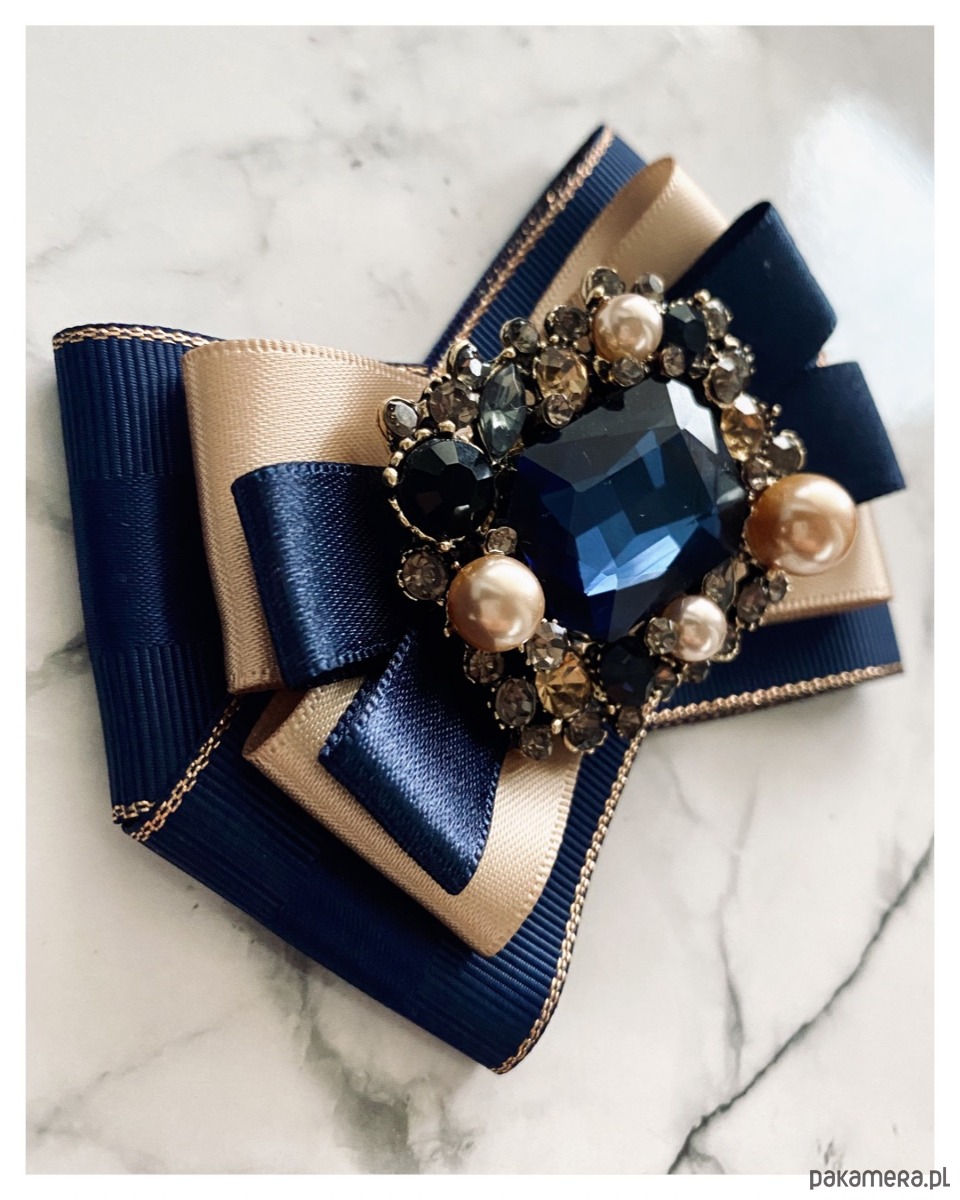 Broszka wykonana z wysokiej jakości taśm i dodatków.