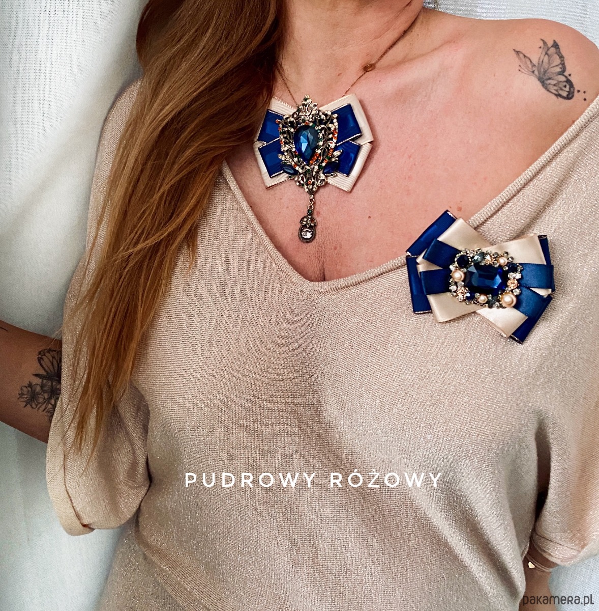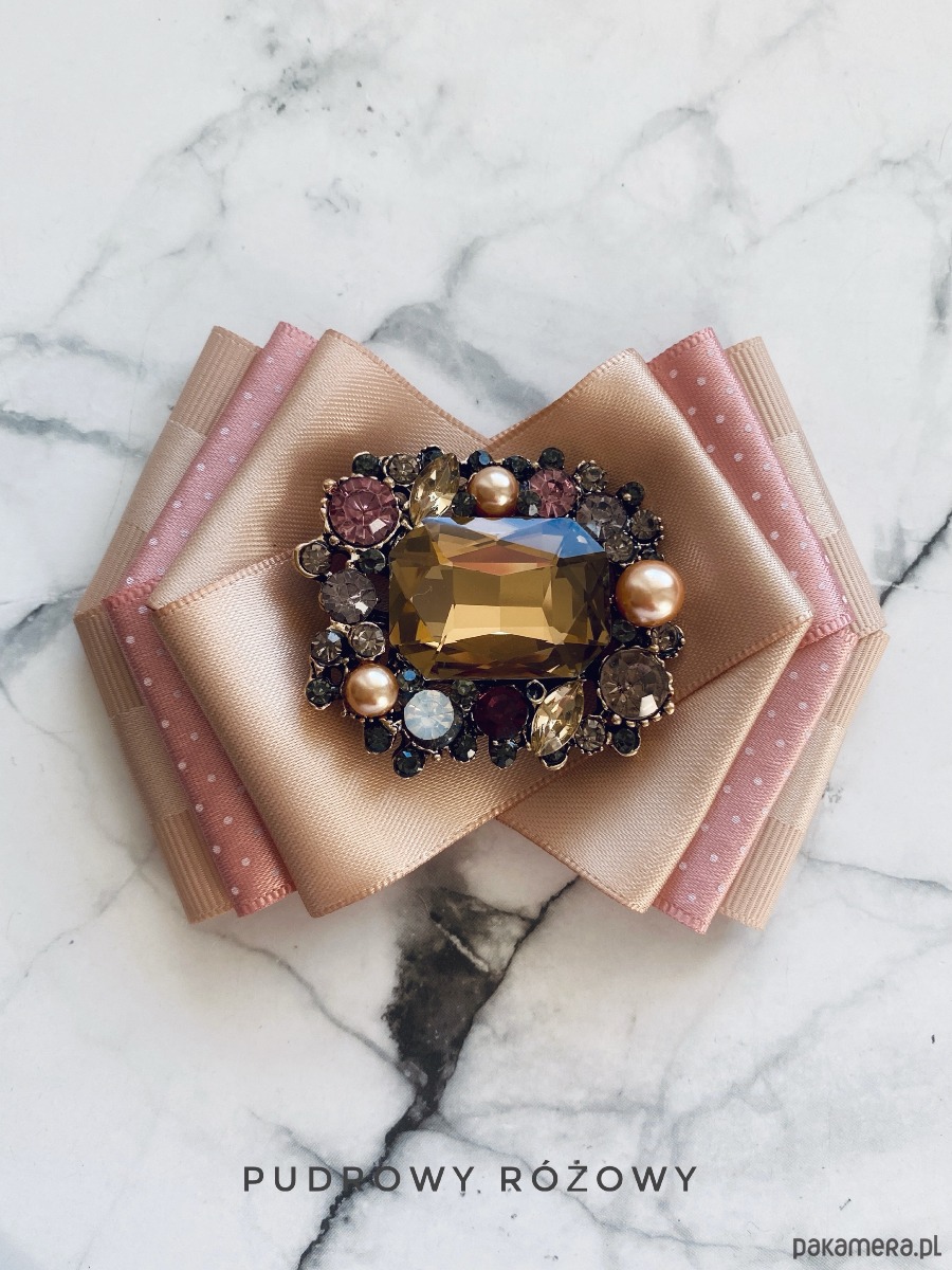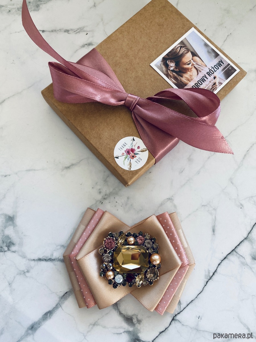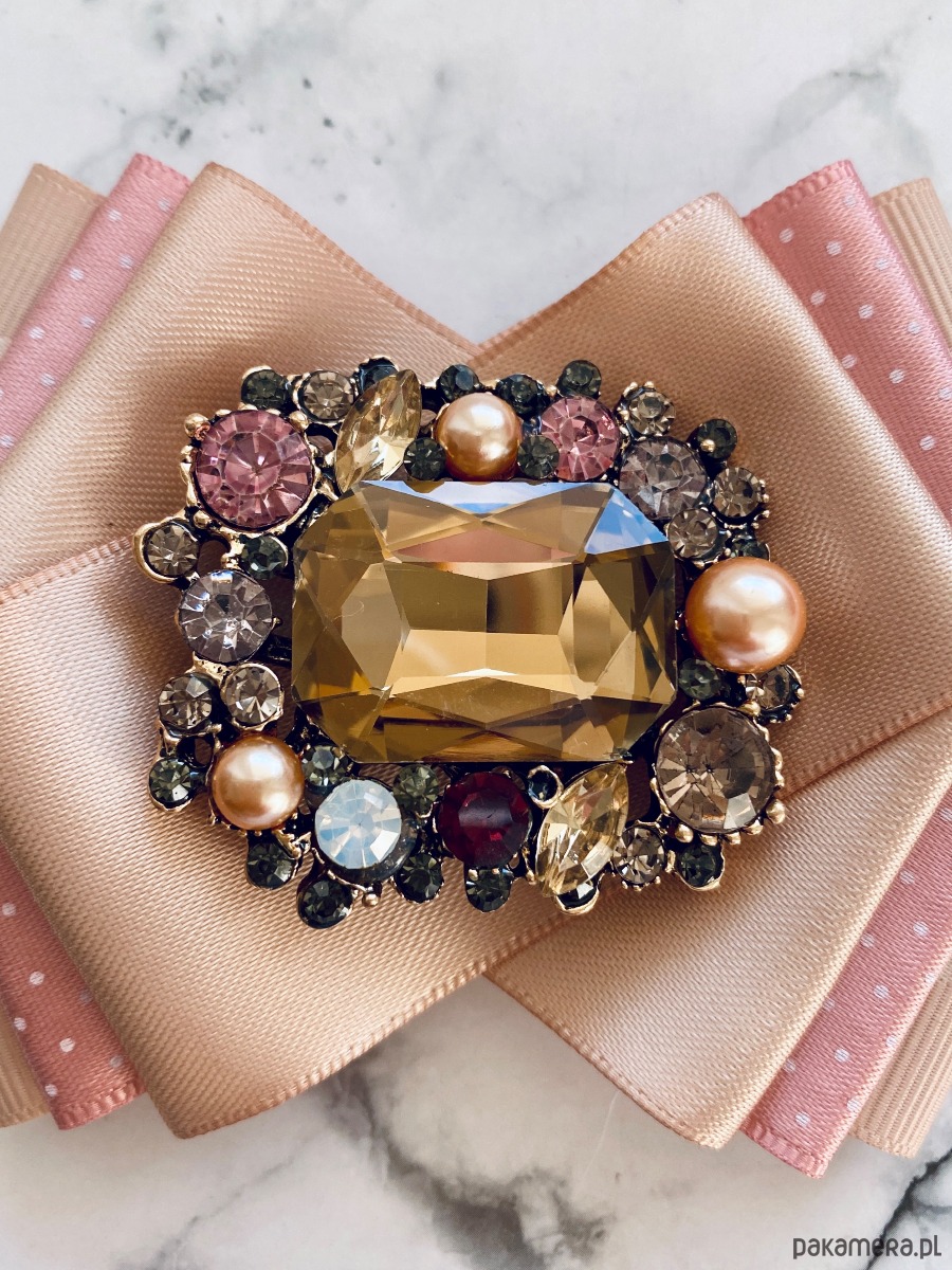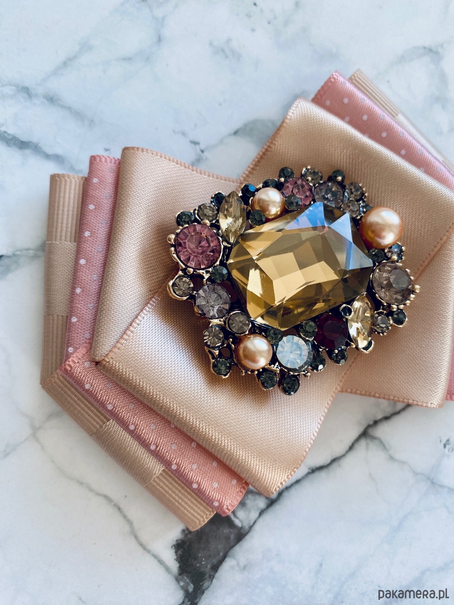 Broszka wykonana z wysokiej jakości taśm i dodatków.