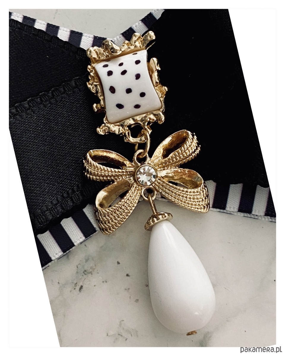 Broszka w kolorze czerni i bieli.