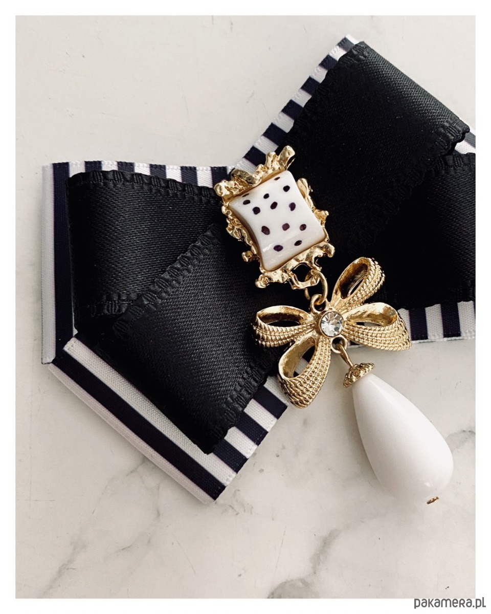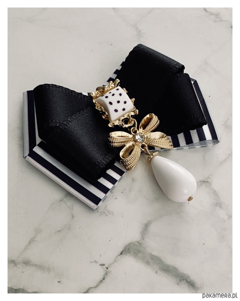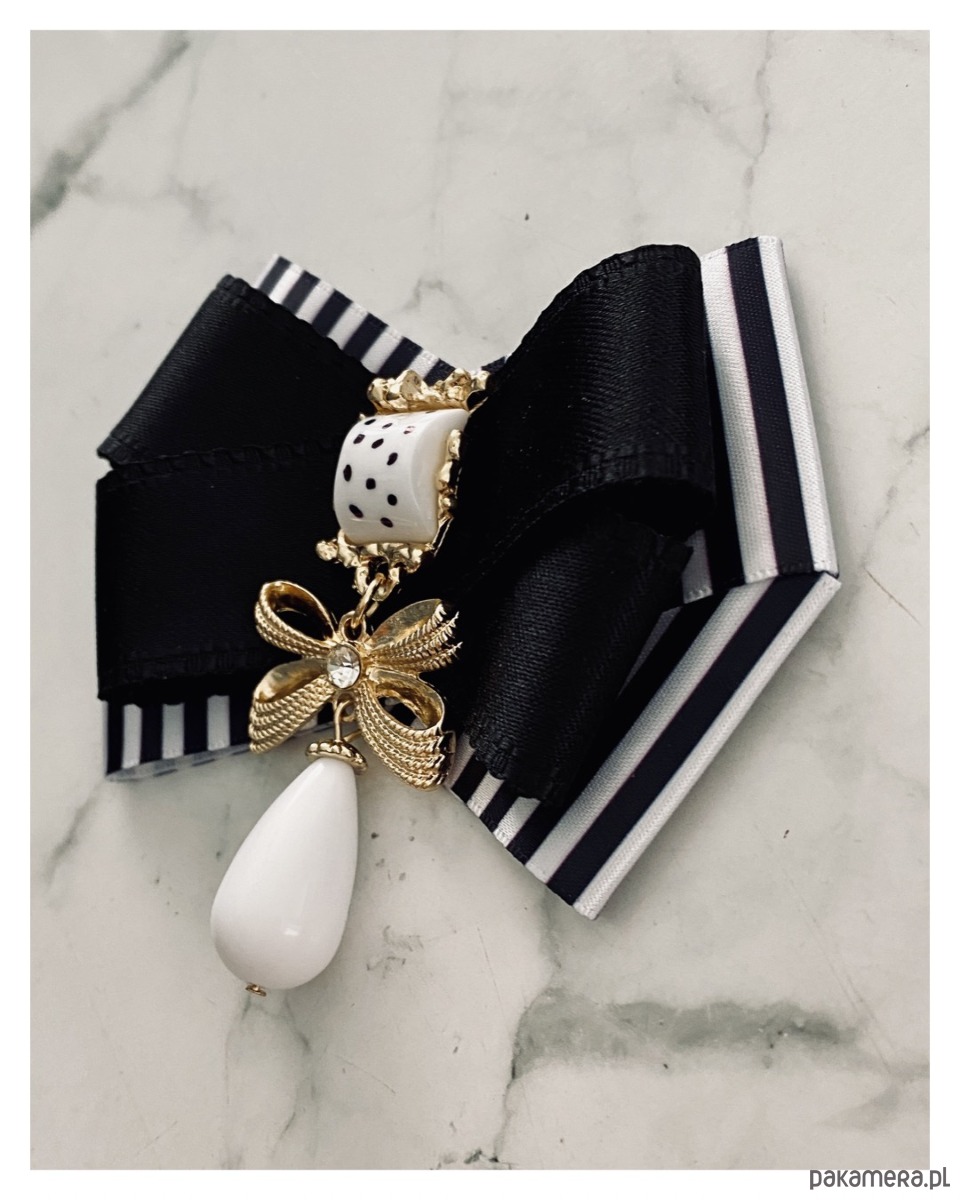Broszka w kolorze czerni i bieli.