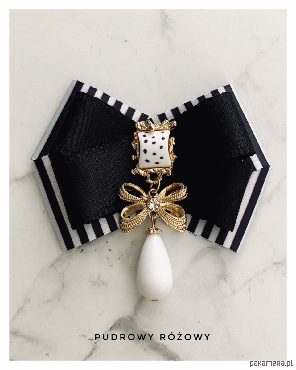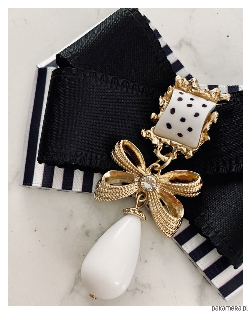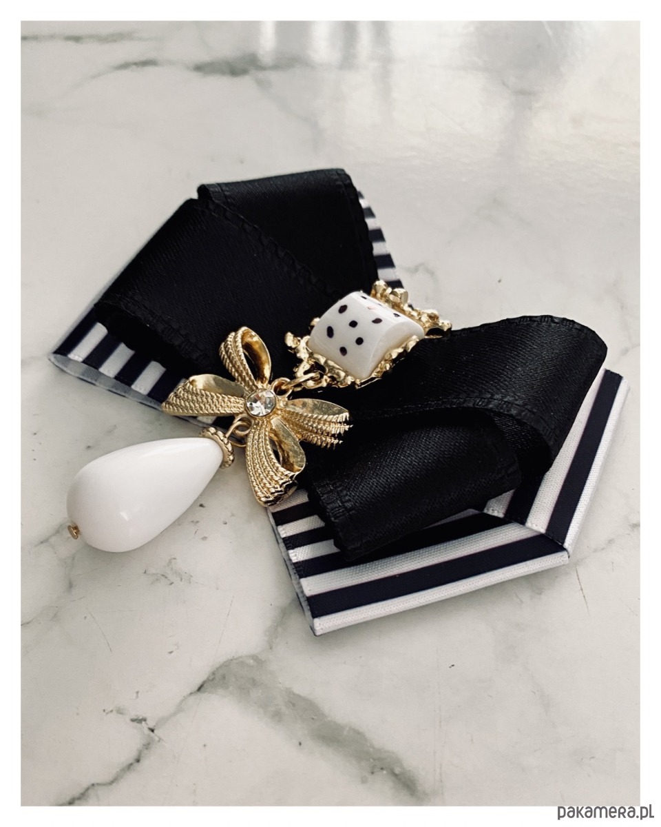 Broszka w kolorze czerni i bieli.