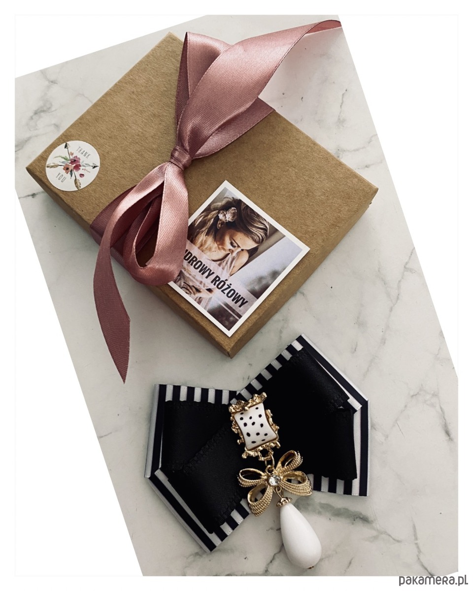 Broszka wykonana z wysokiej jakości taśm i dodatków.
