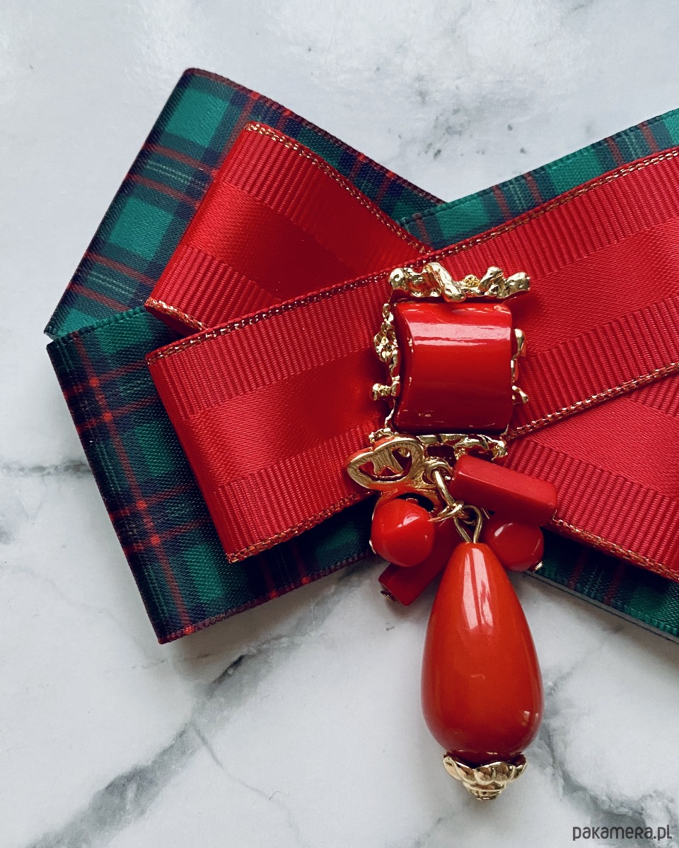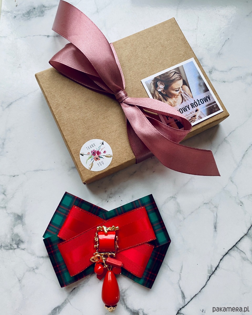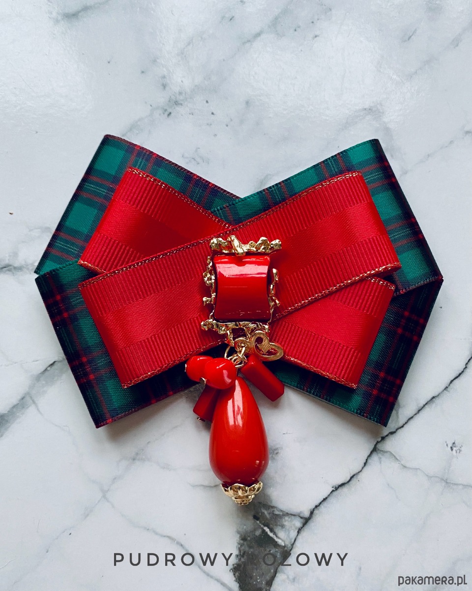 Broszka wykonana z wysokiej jakości taśm i dodatków.