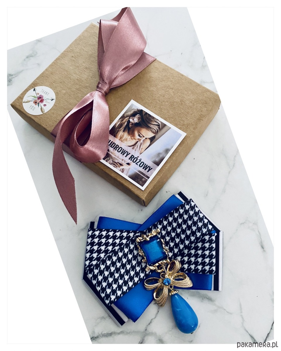 Broszka wykonana z wysokiej jakości taśm i dodatków.