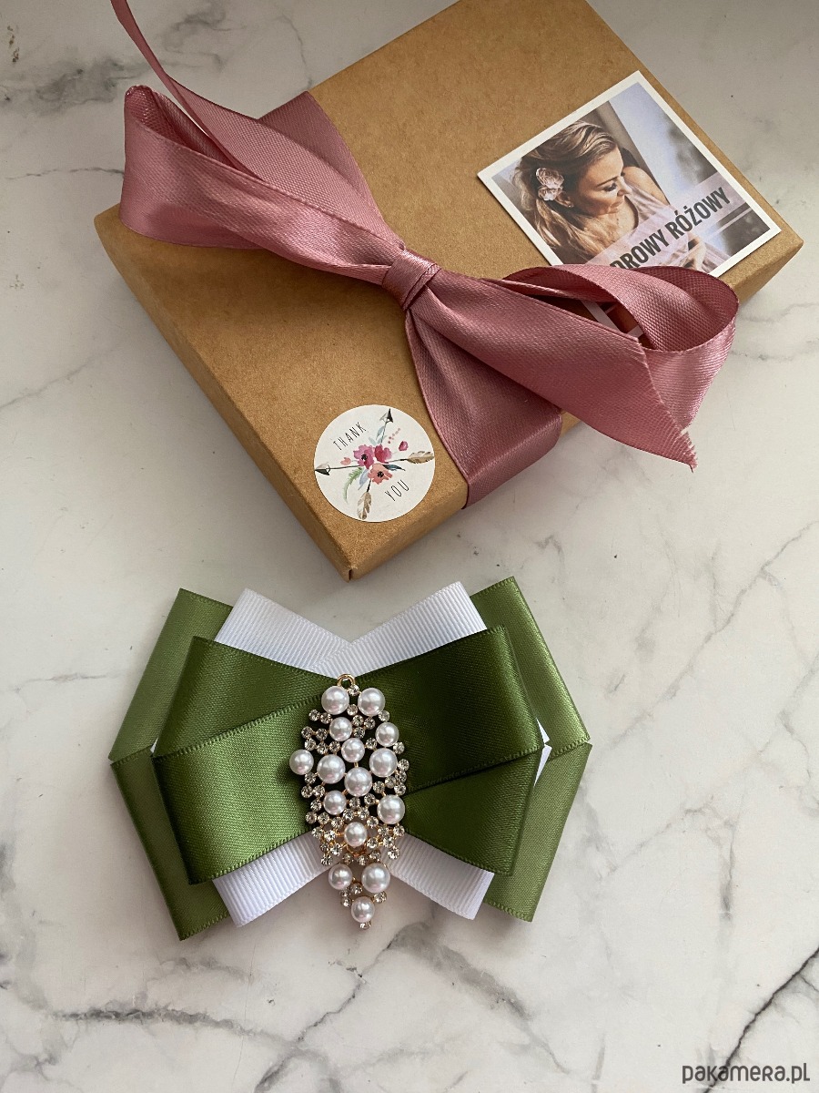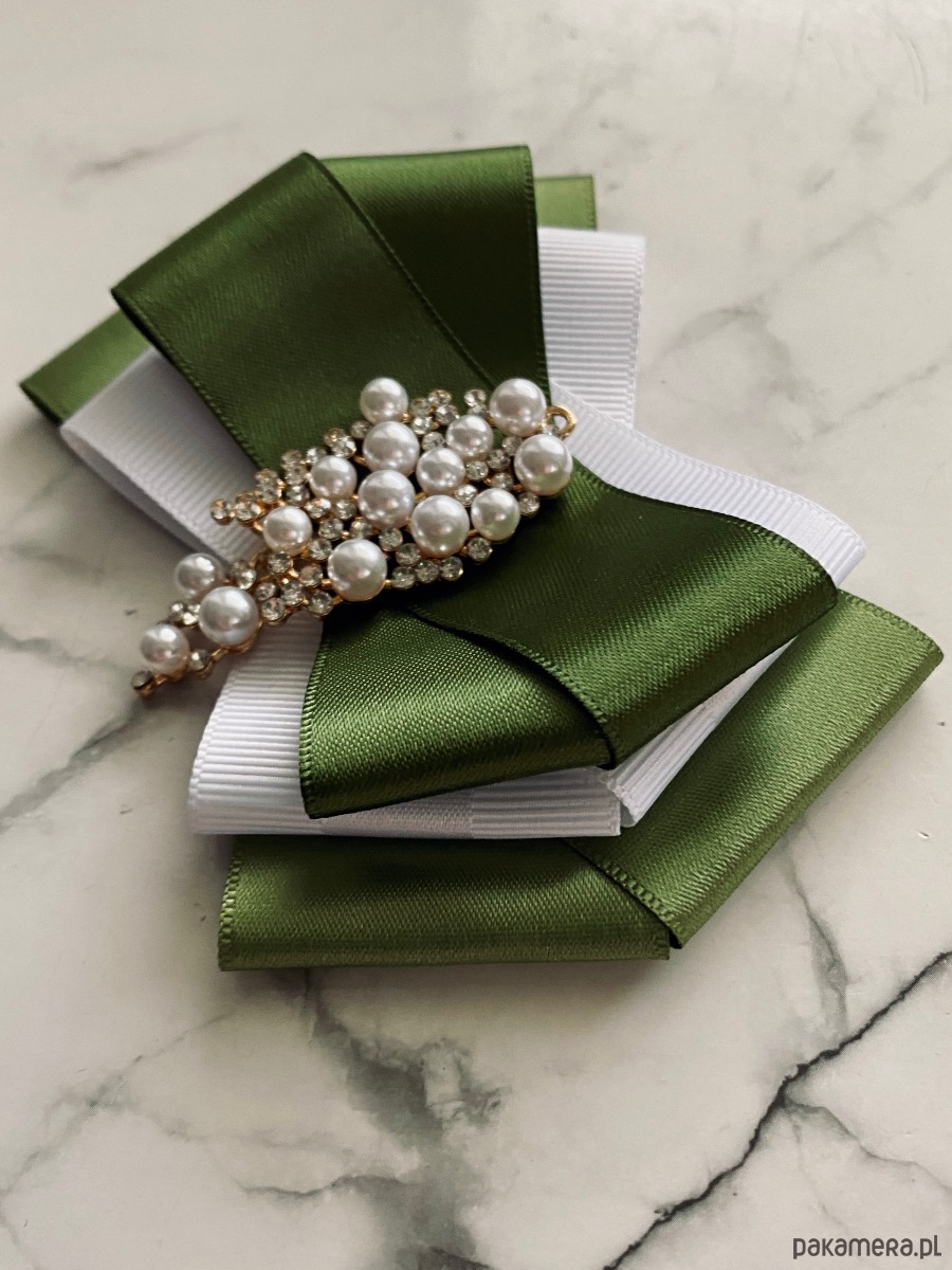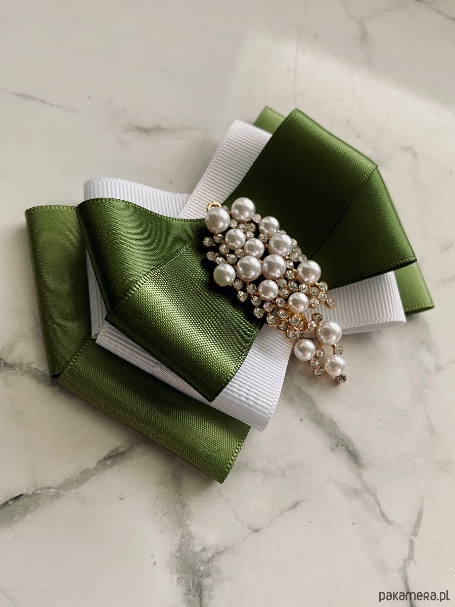 Broszka wykonana z wysokiej jakości taśm i dodatków.