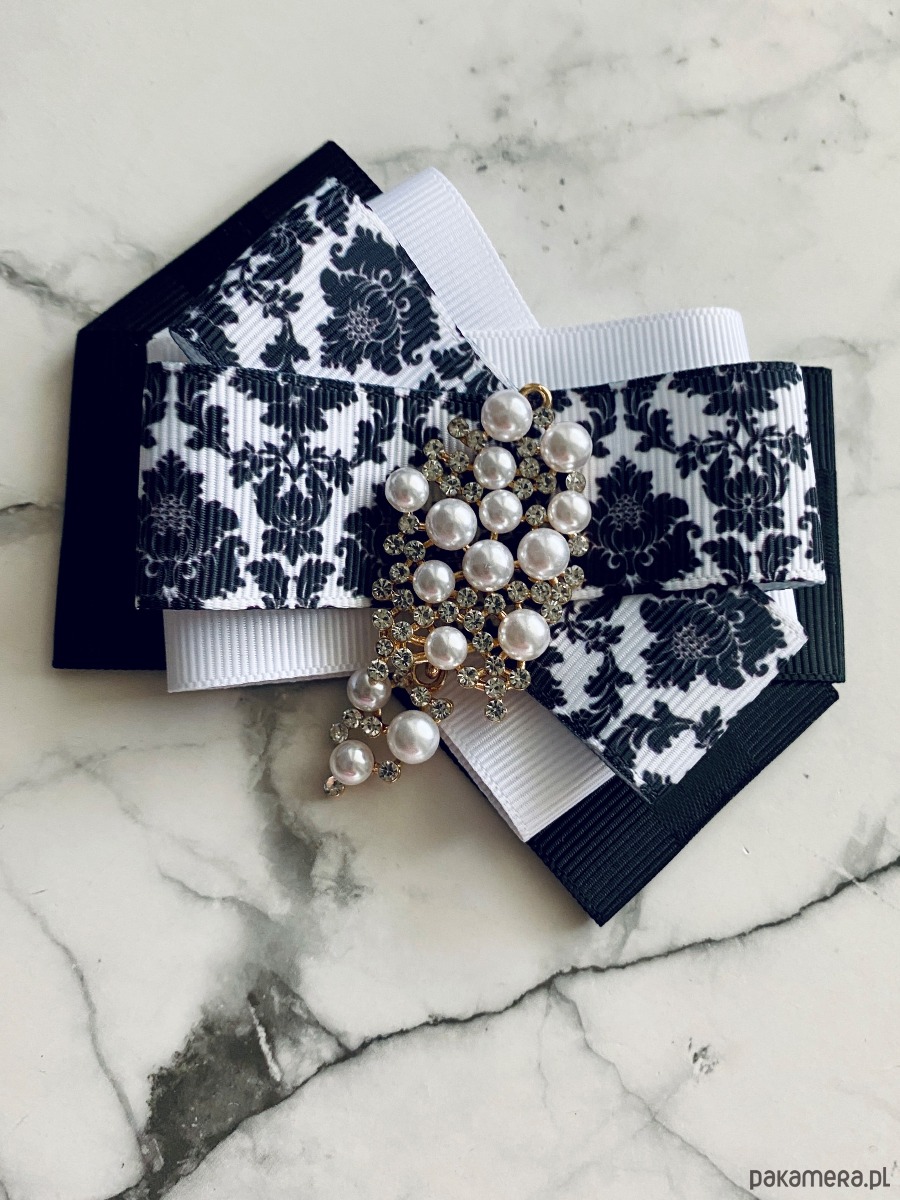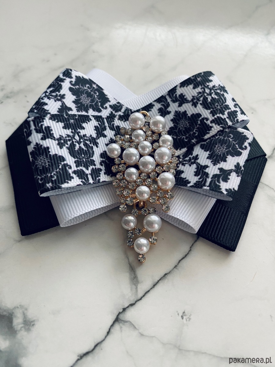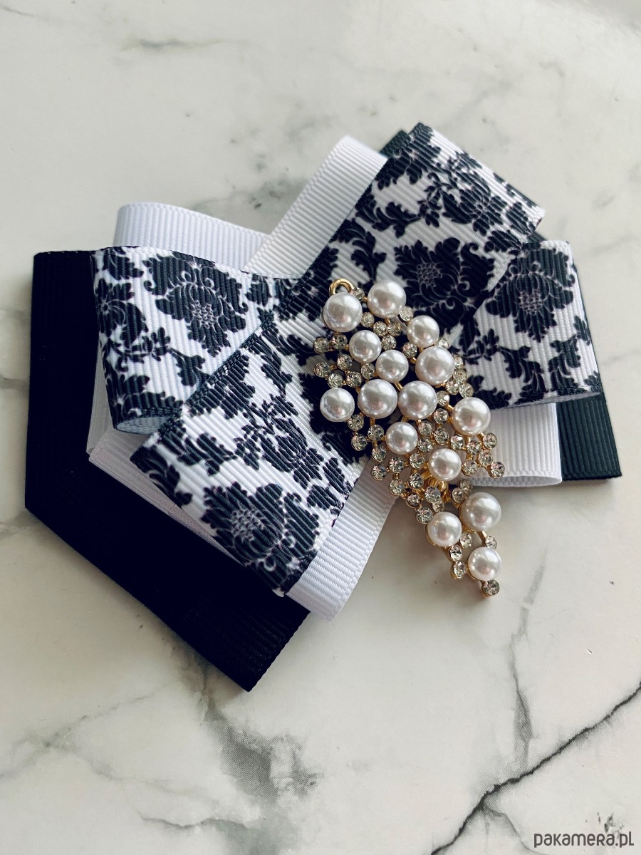 Broszka wykonana z wysokiej jakości taśm i dodatków.