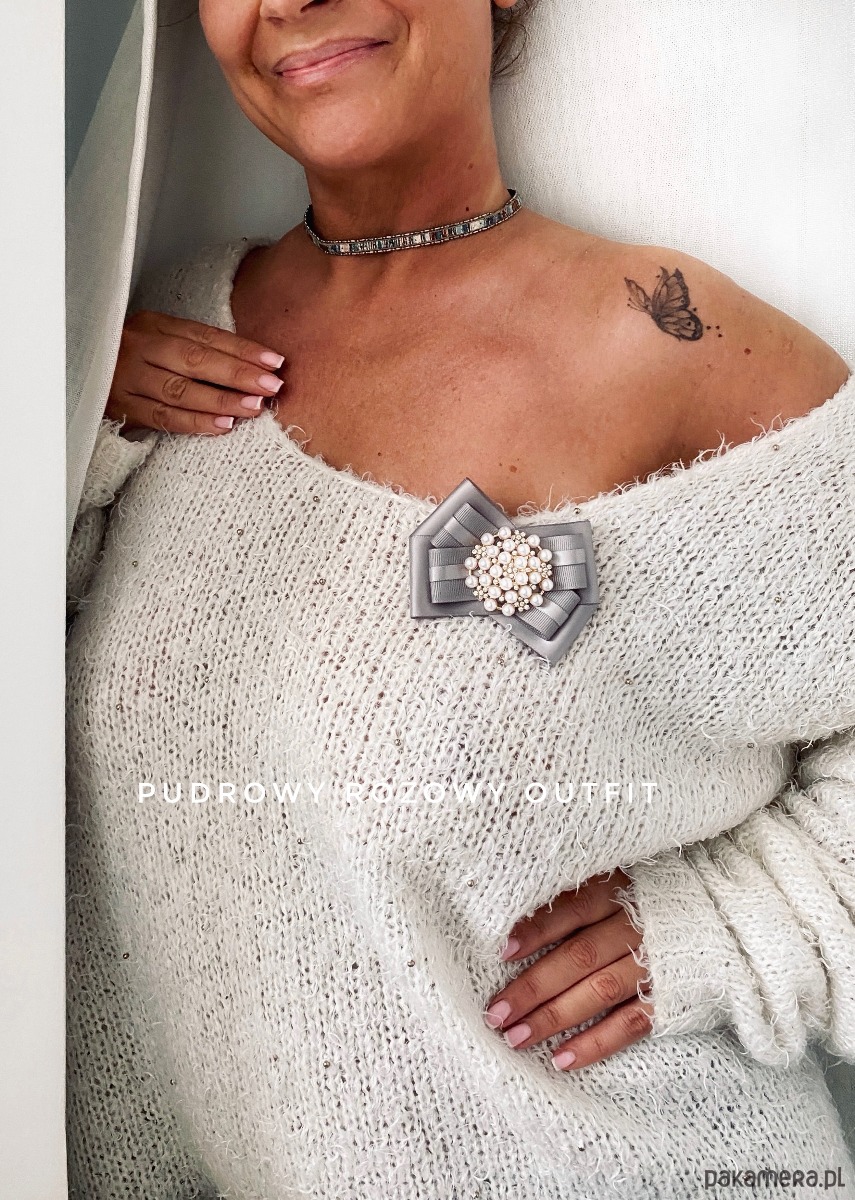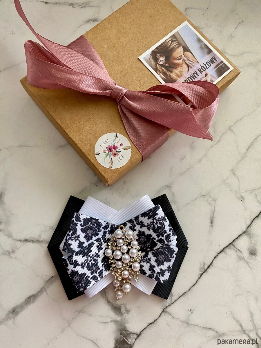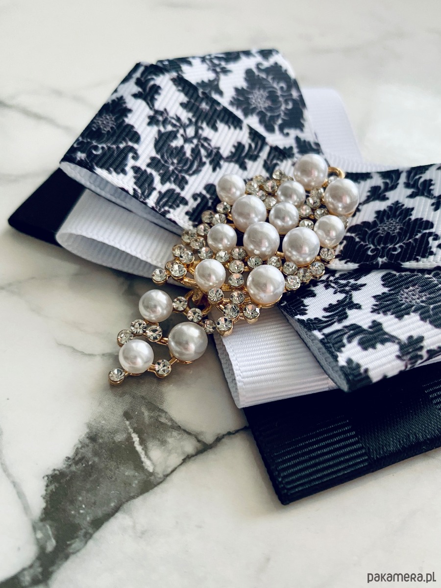 Broszka wykonana z wysokiej jakości taśm i dodatków.