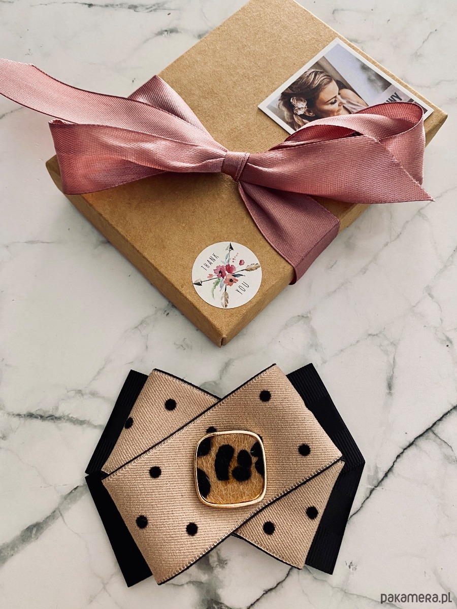 Broszka wykonana z wysokiej jakości taśm i dodatków.