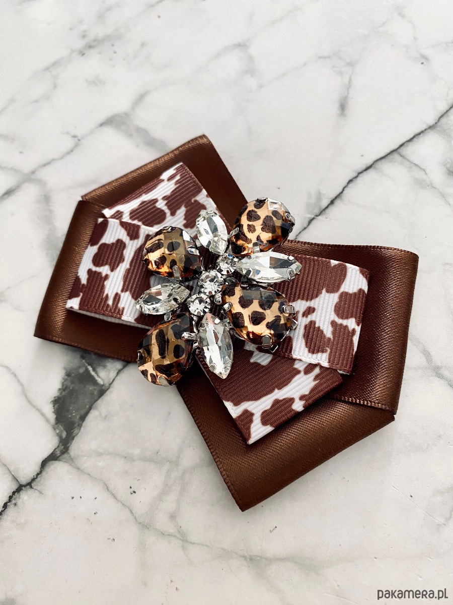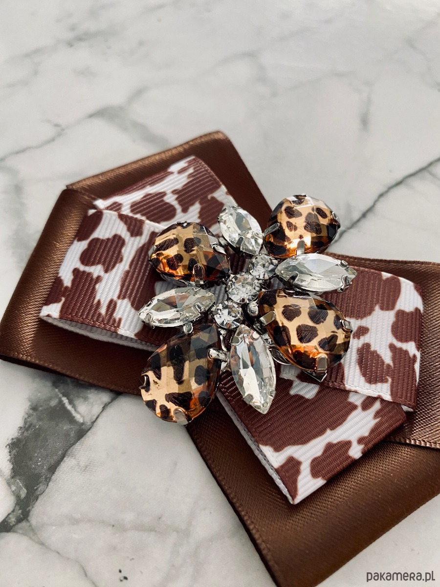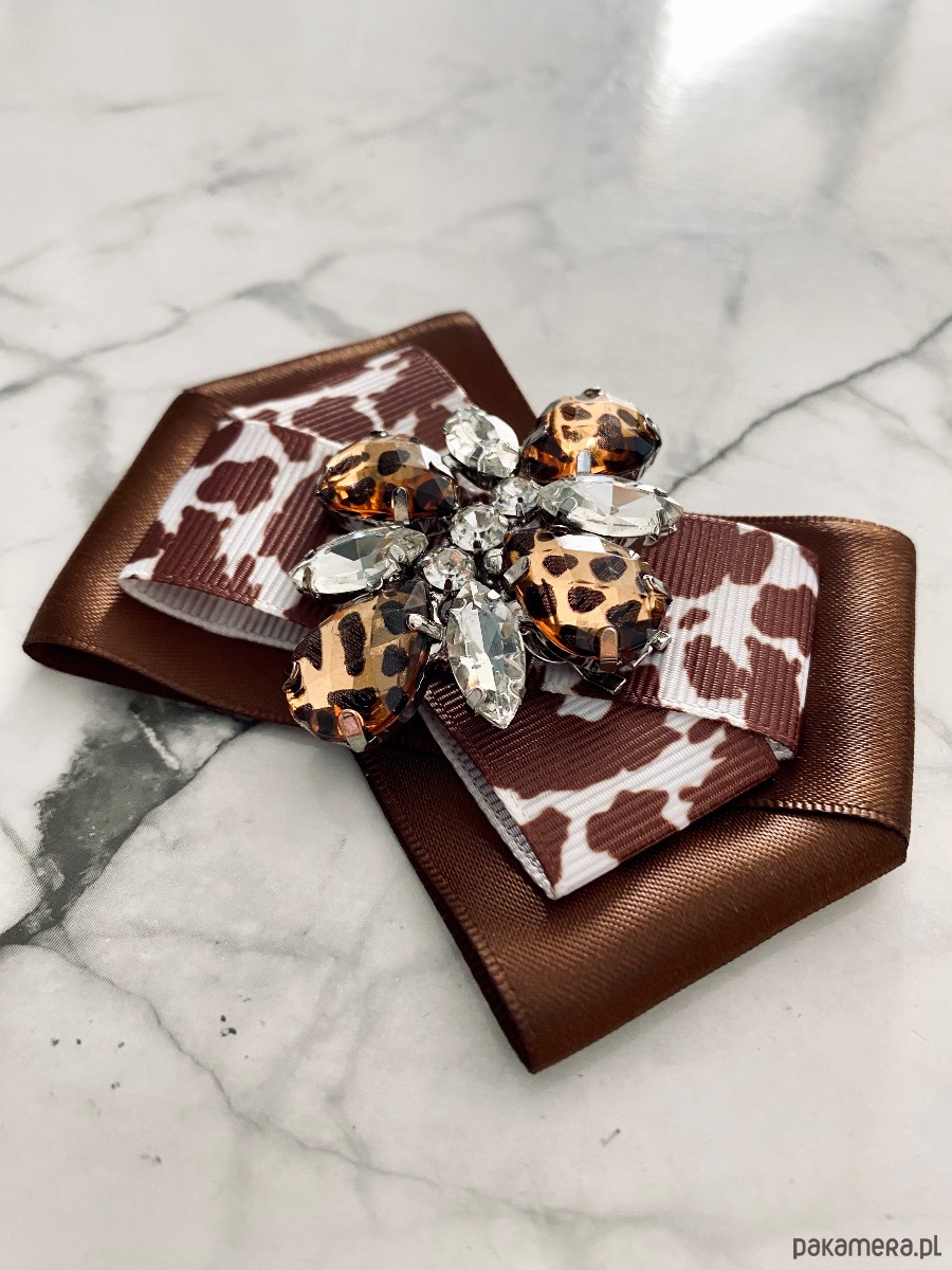 Broszka wykonana z wysokiej jakości taśm i dodatków.