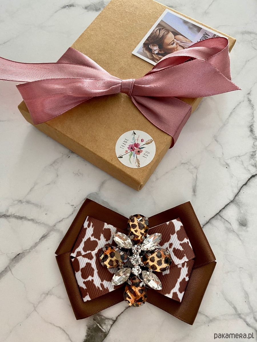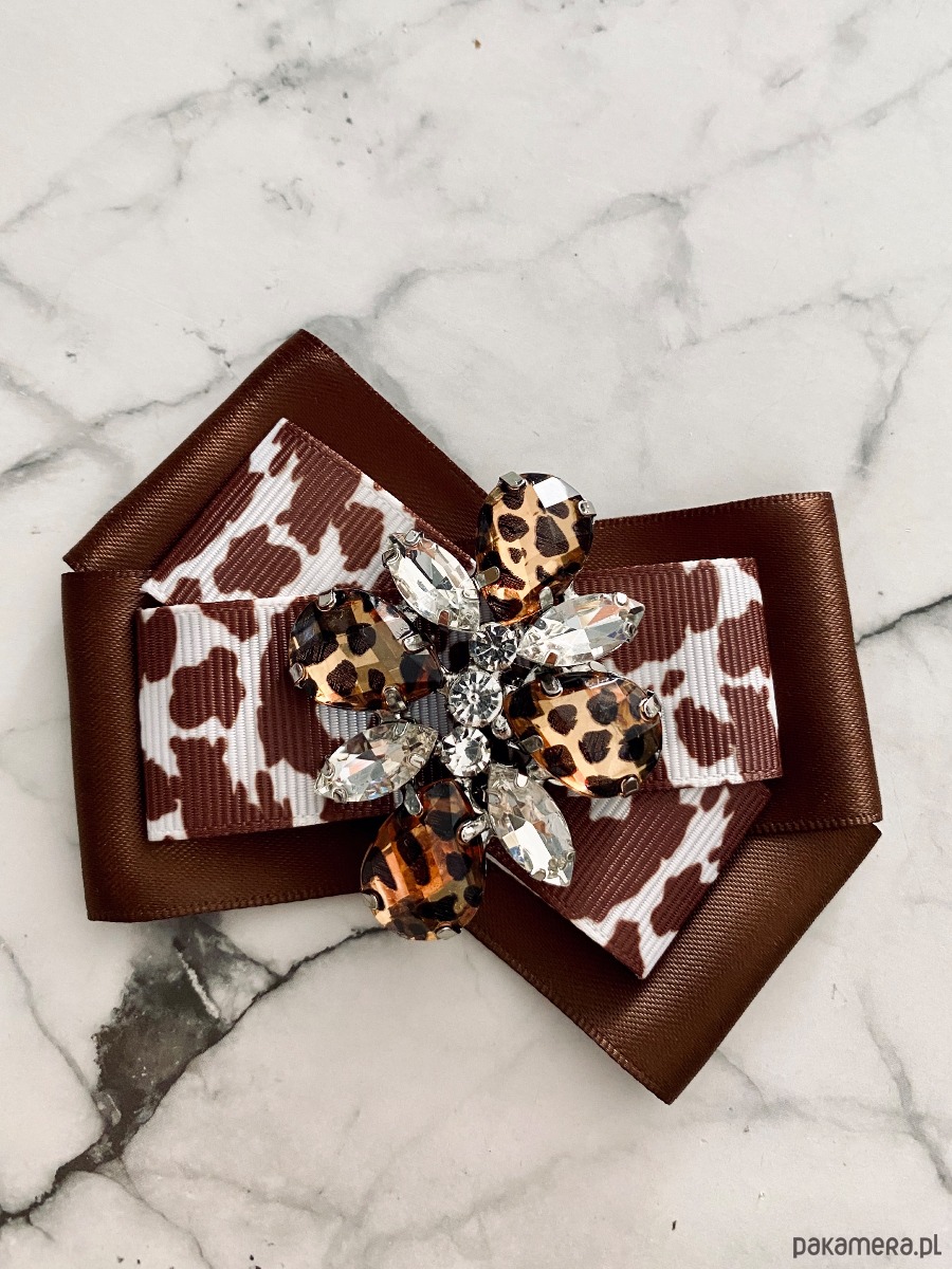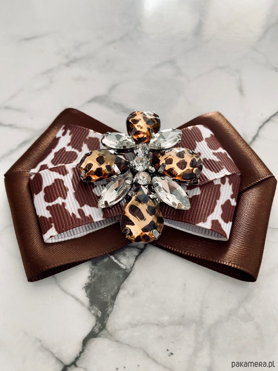 Broszka wykonana z wysokiej jakości taśm i dodatków.