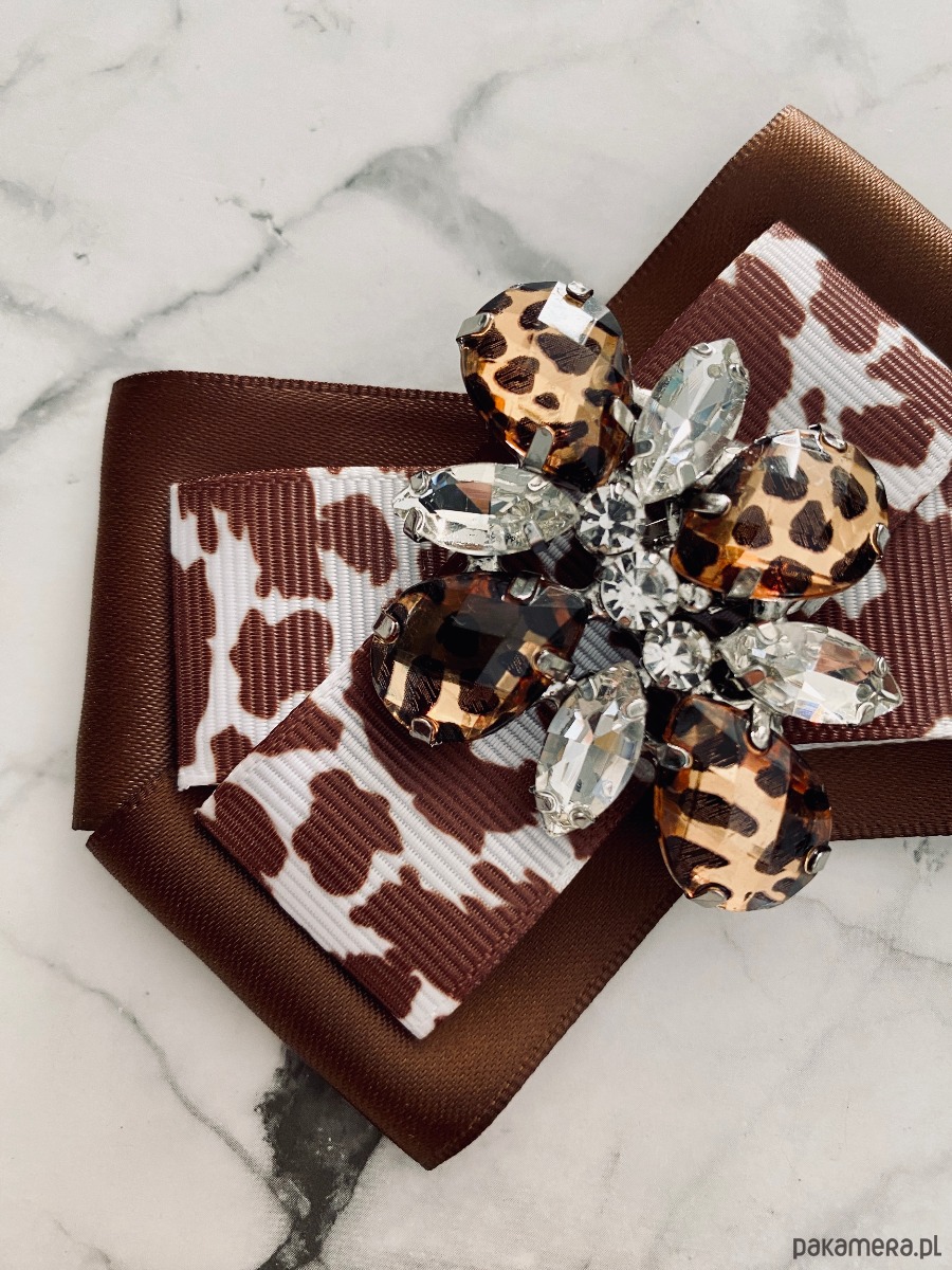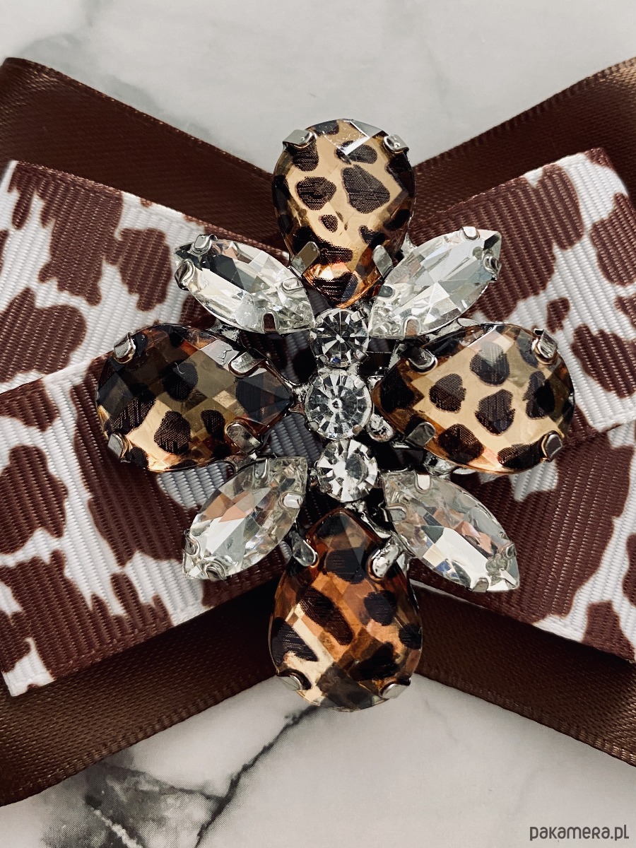 Piękna okazala ozdoba na środku kryształy z motywem panterki.
