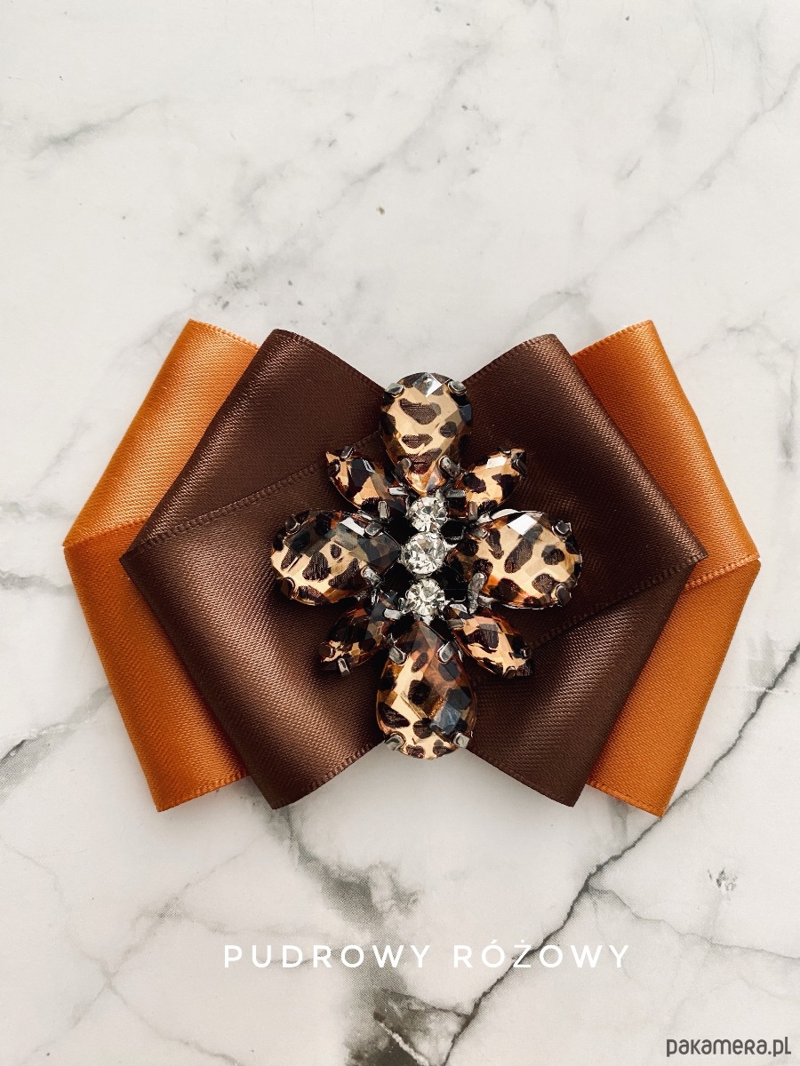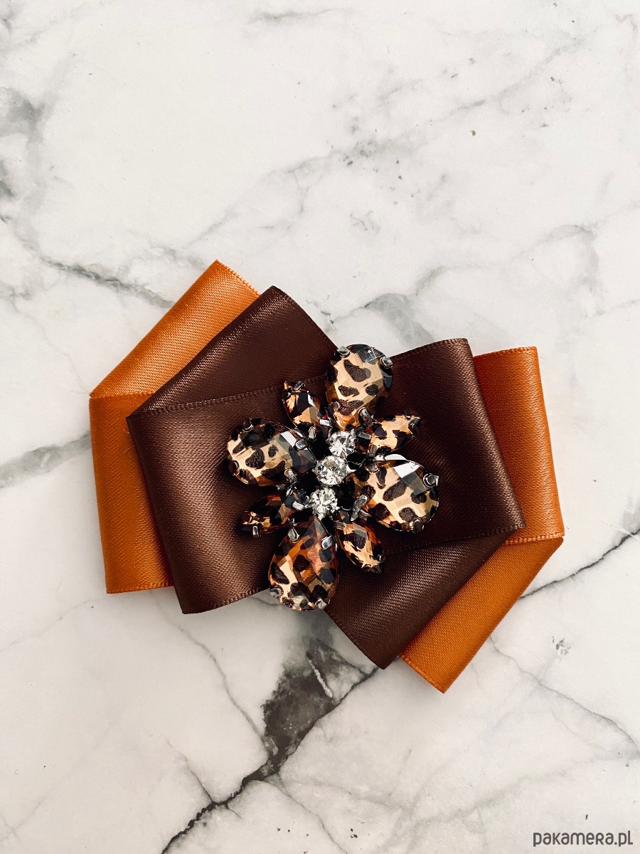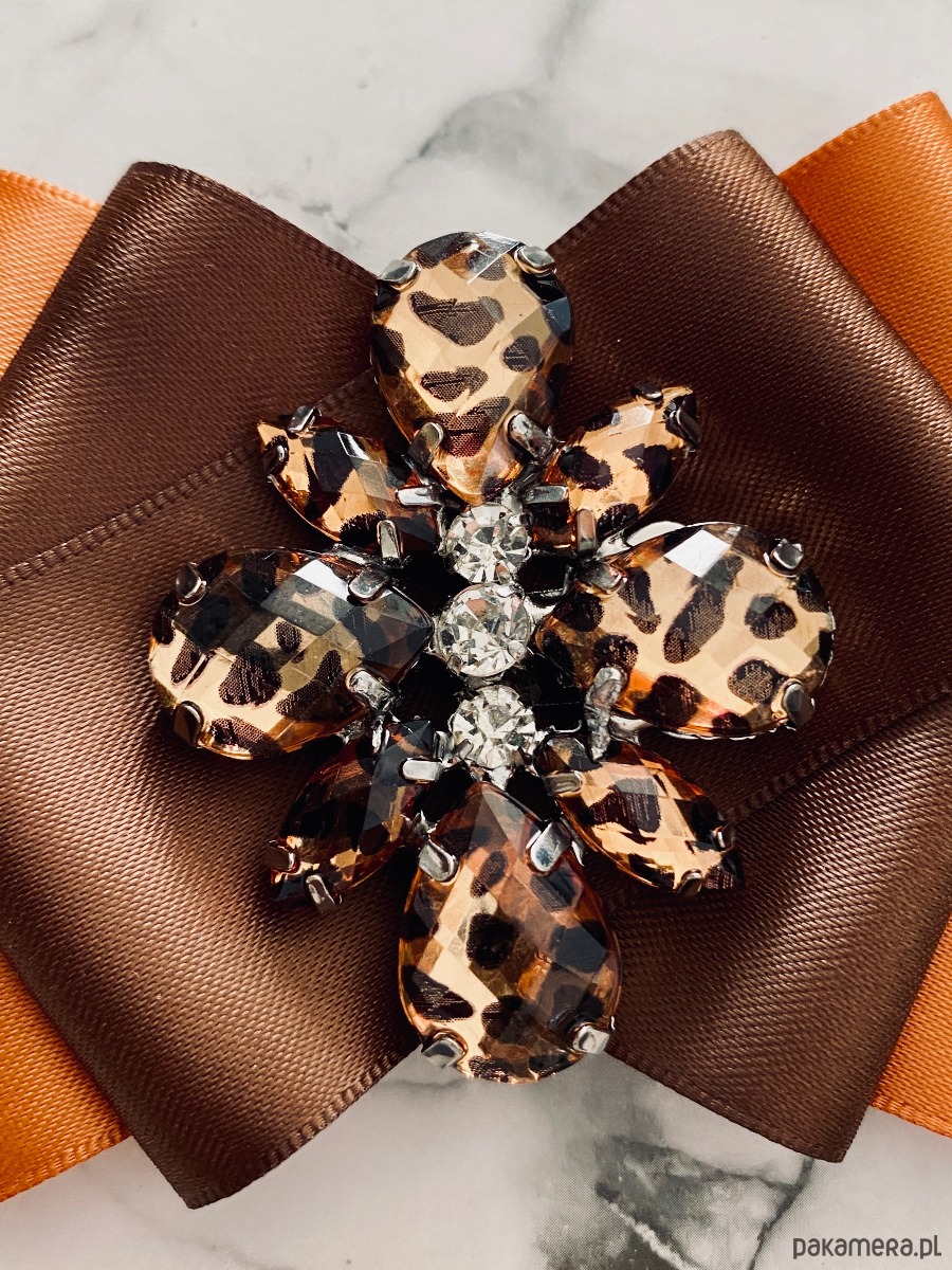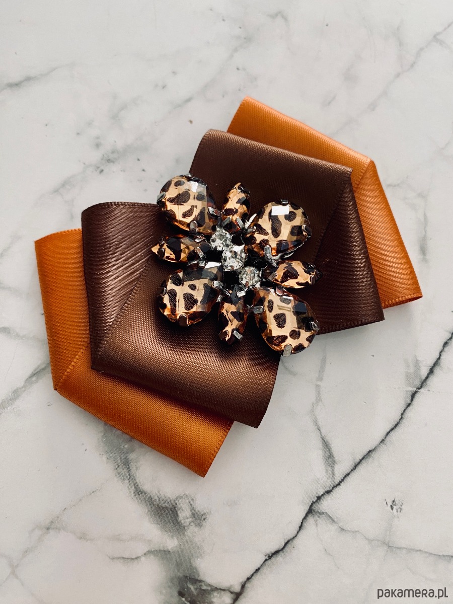 Broszka wykonana z wysokiej jakości taśm i dodatków.