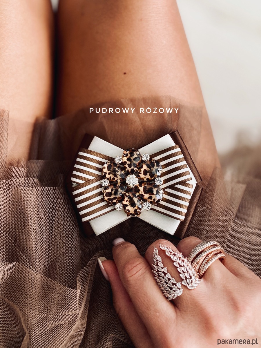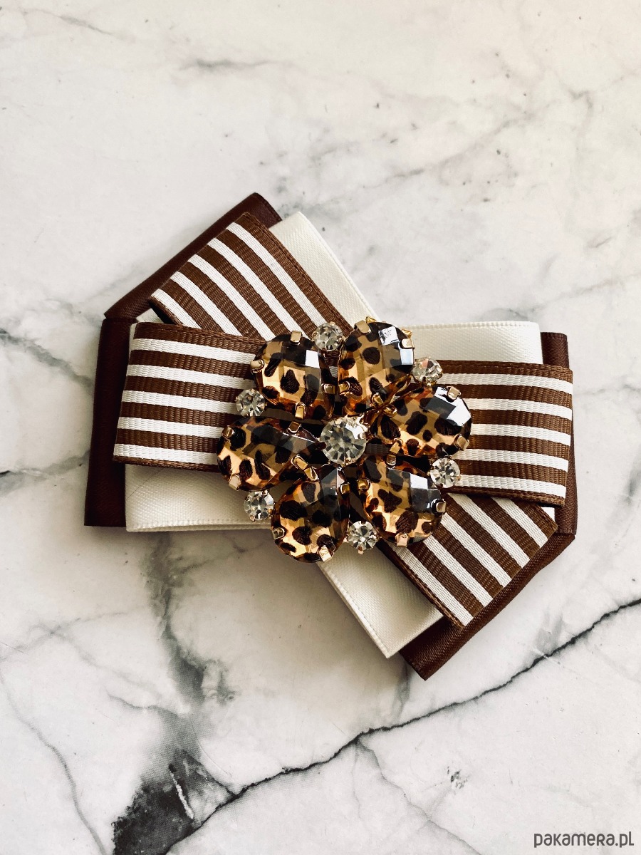 Broszka wykonana z wysokiej jakości taśm i dodatków.