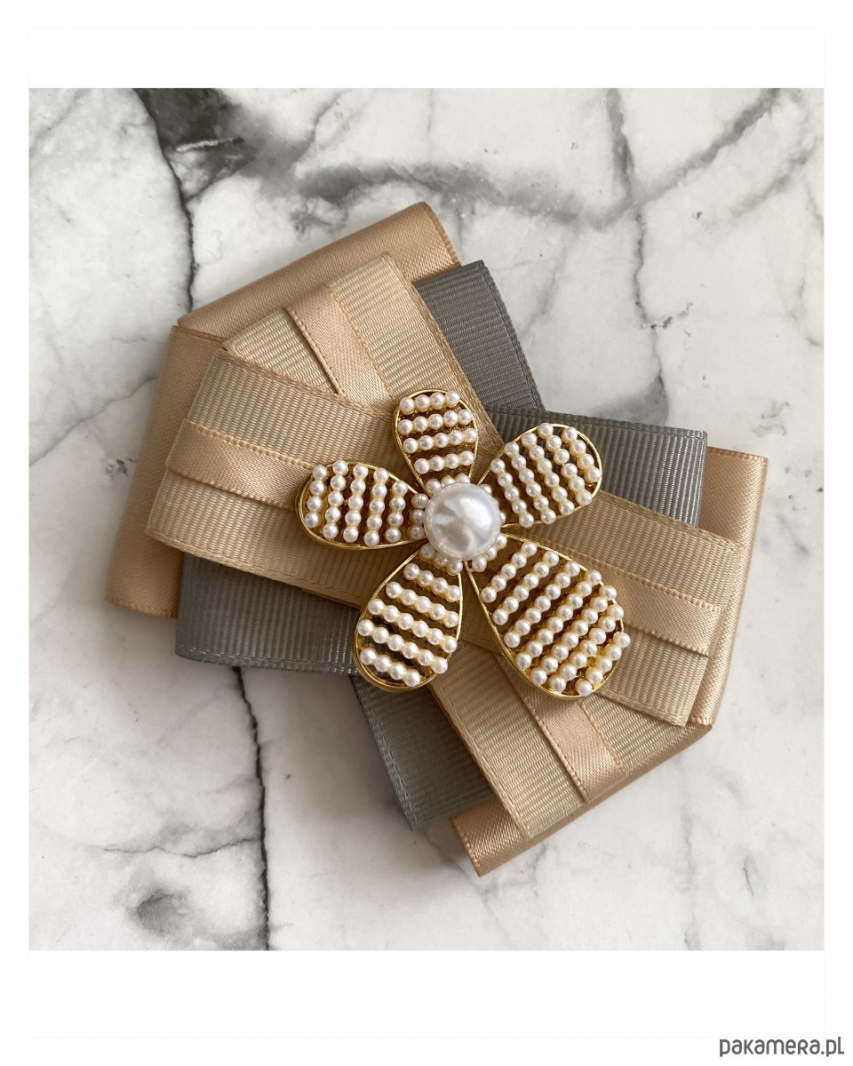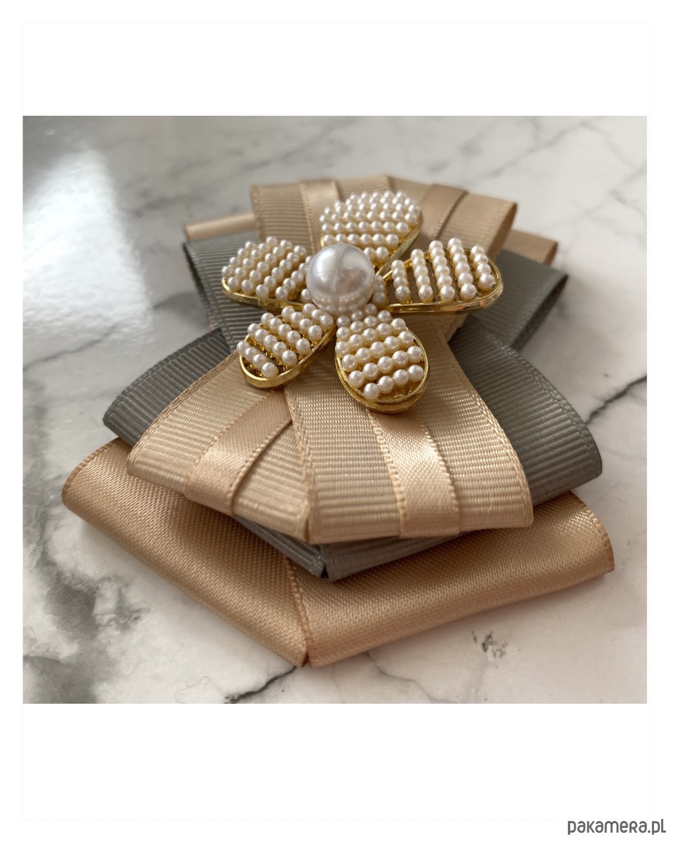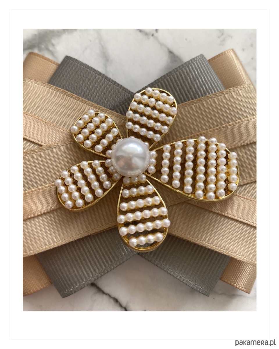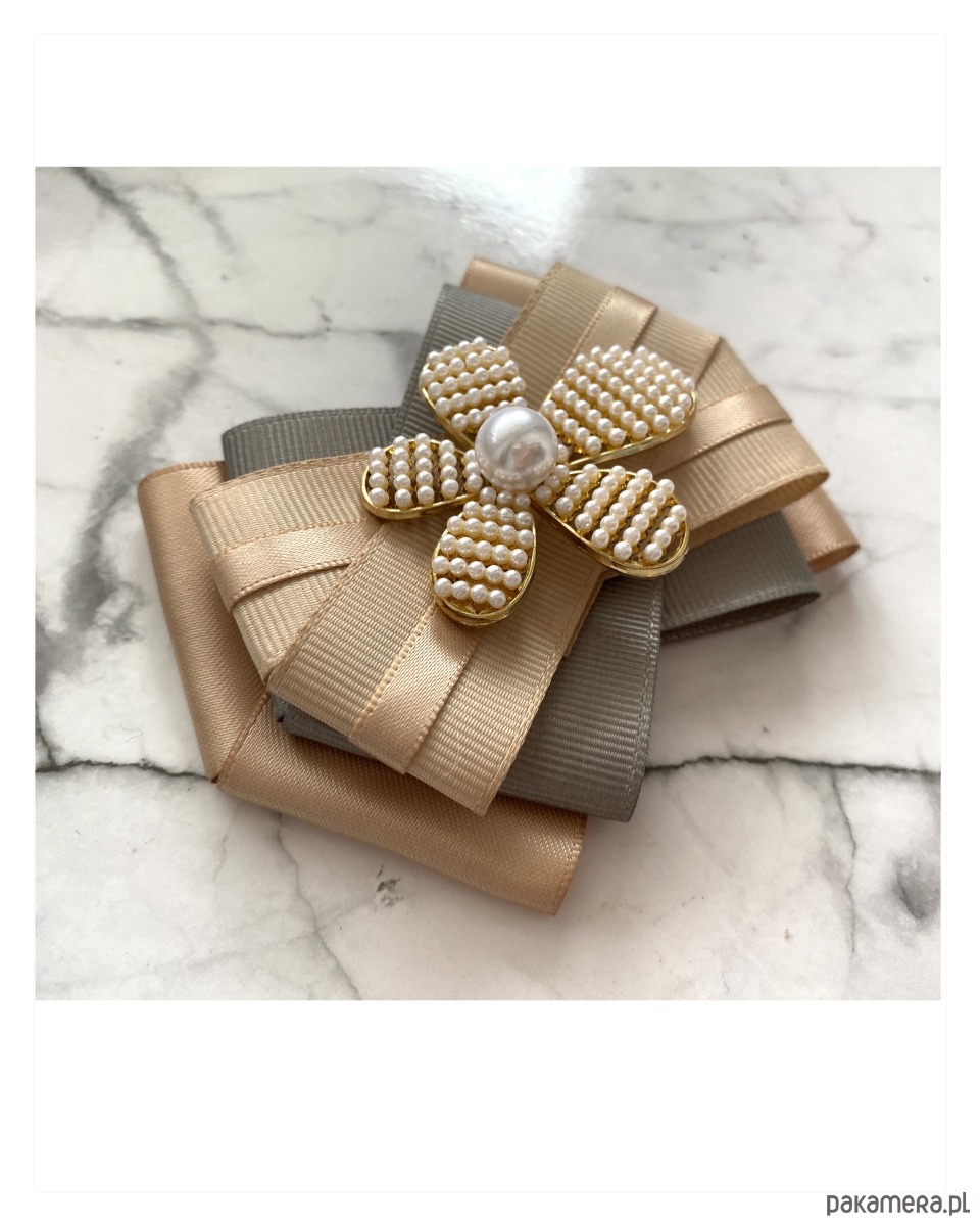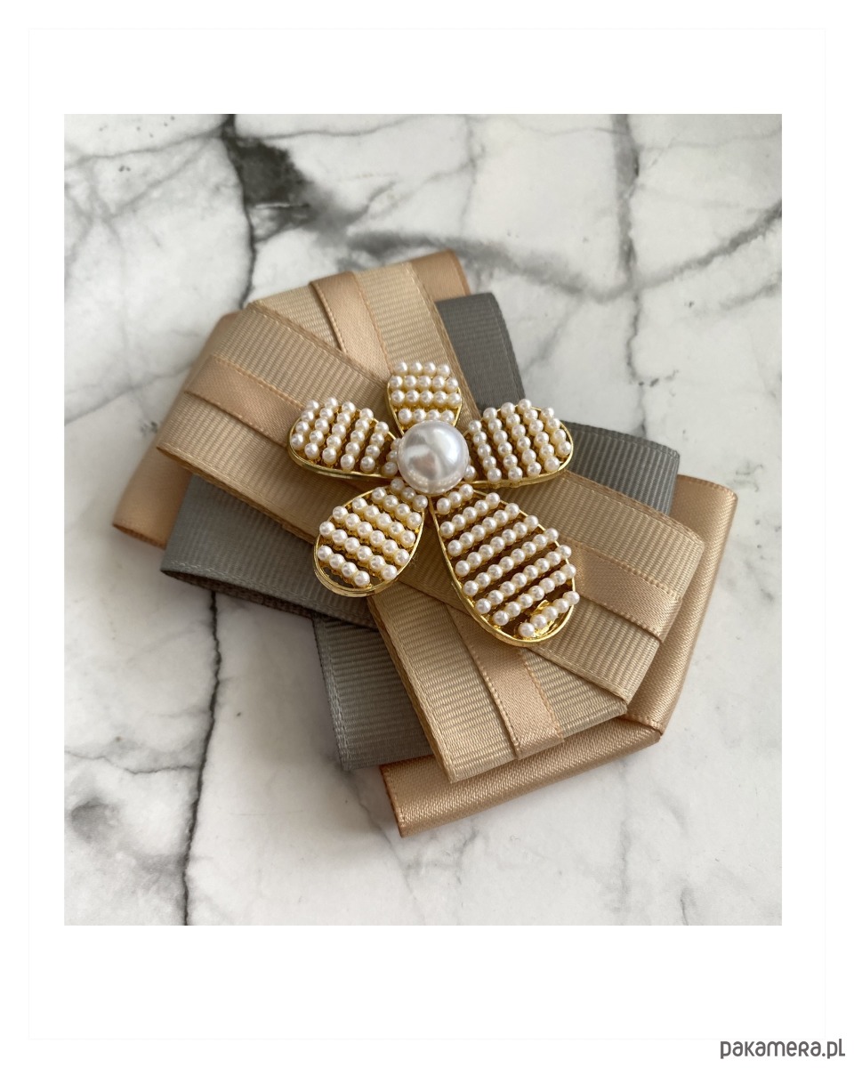 Broszka wykonana z wysokiej jakości taśm i dodatków.