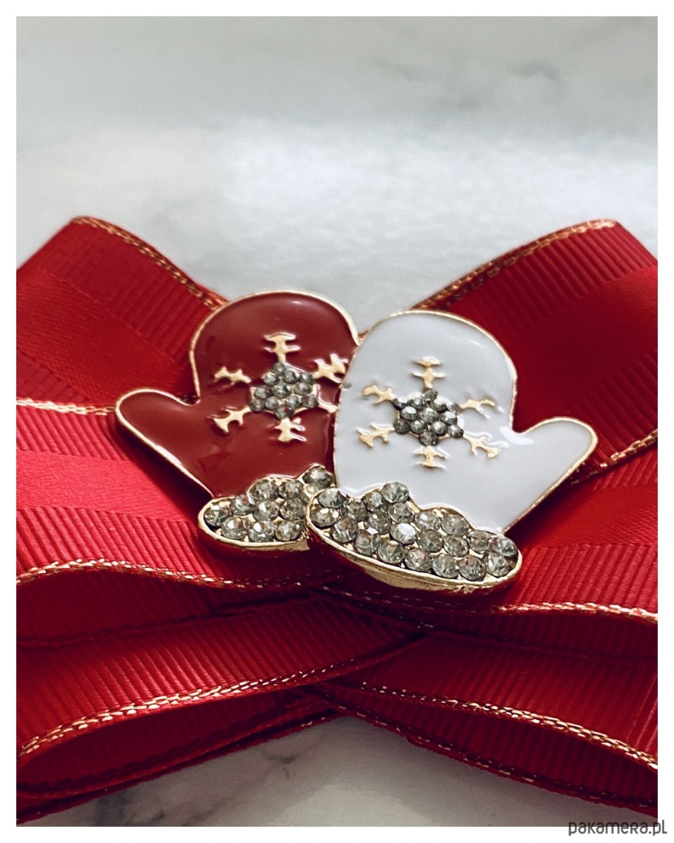 Brosza z Rękawiczkami z kryształków Mikołajki Święta