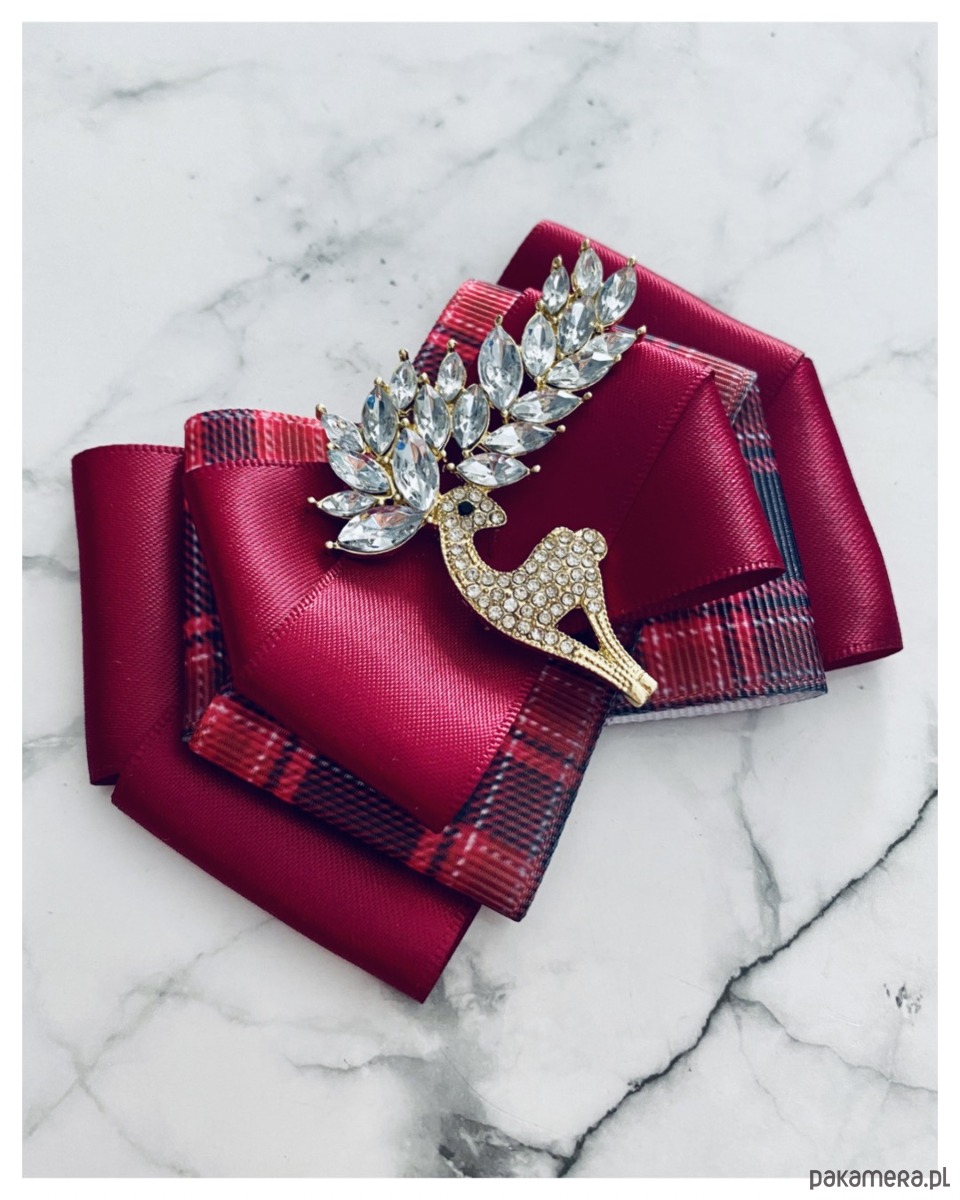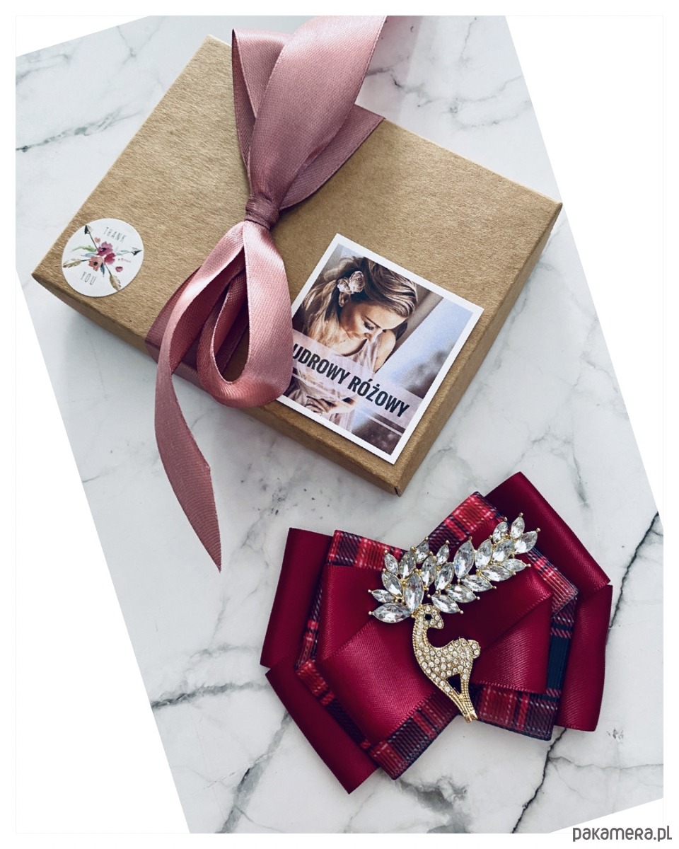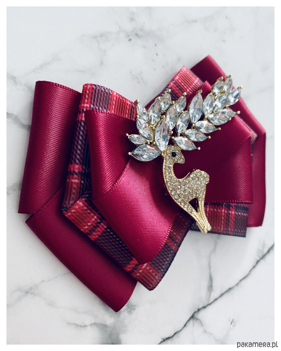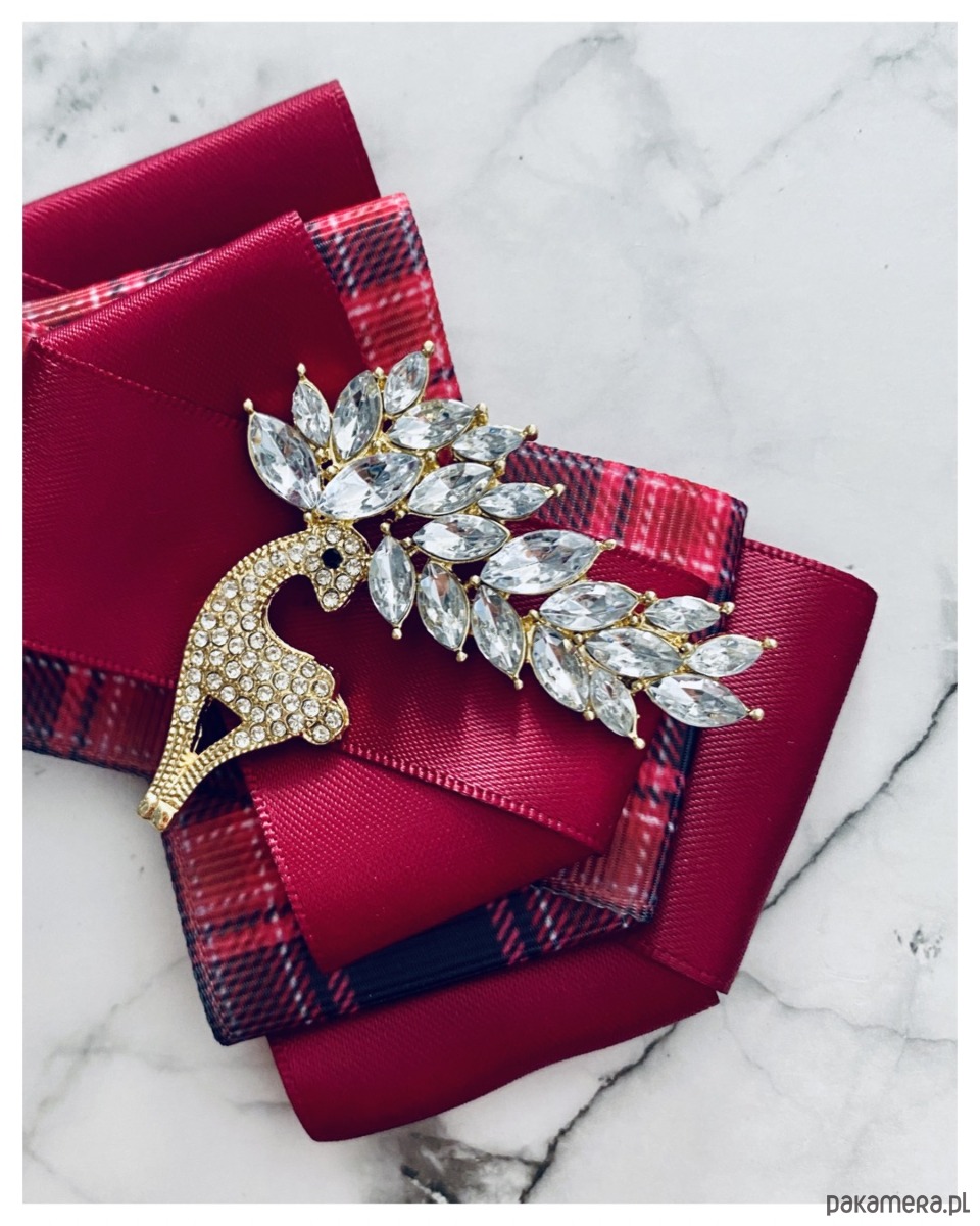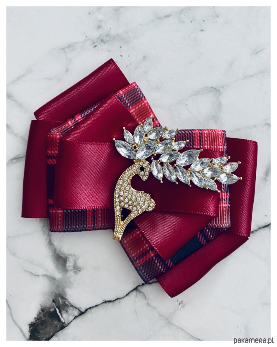 Broszka wykonana z wysokiej jakości taśm i dodatków.