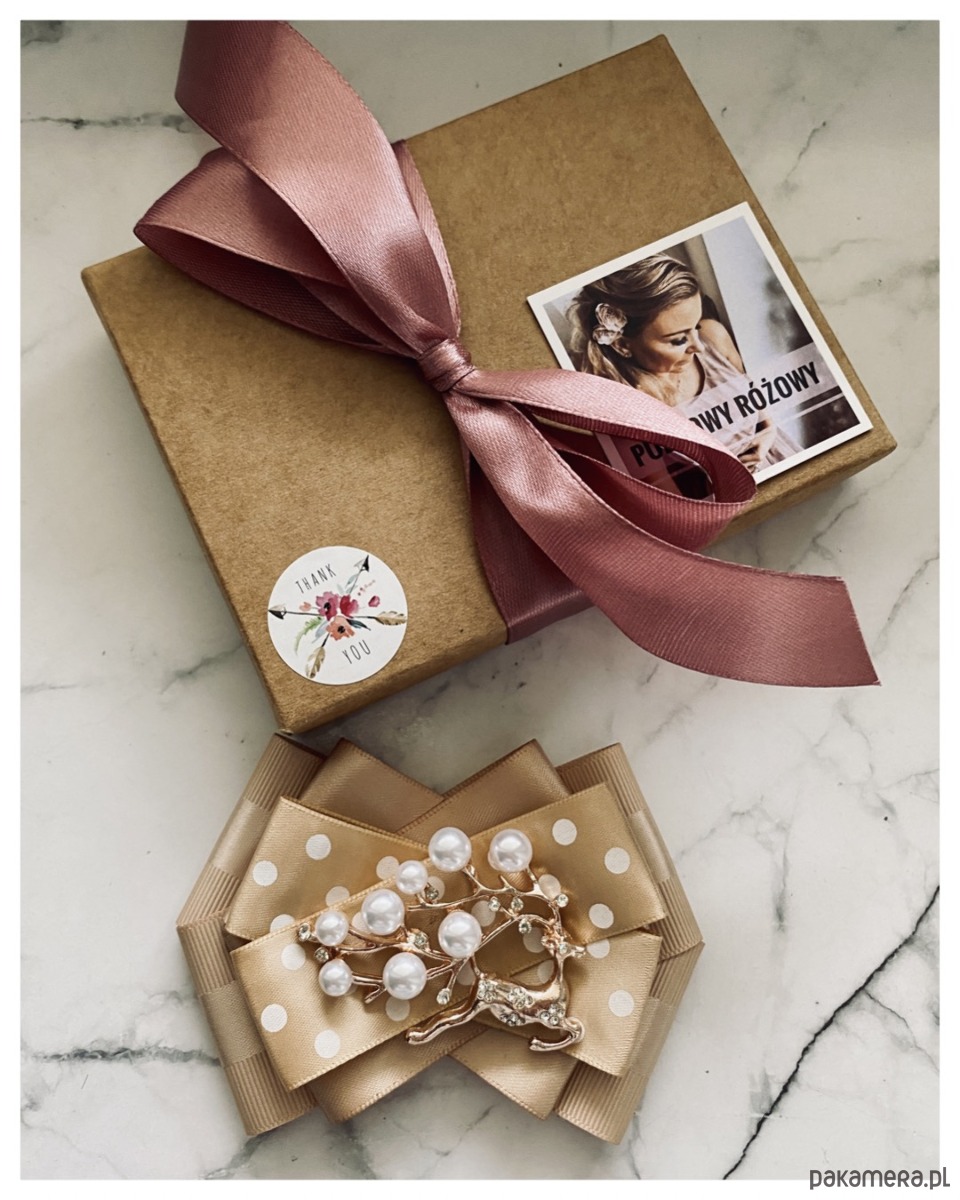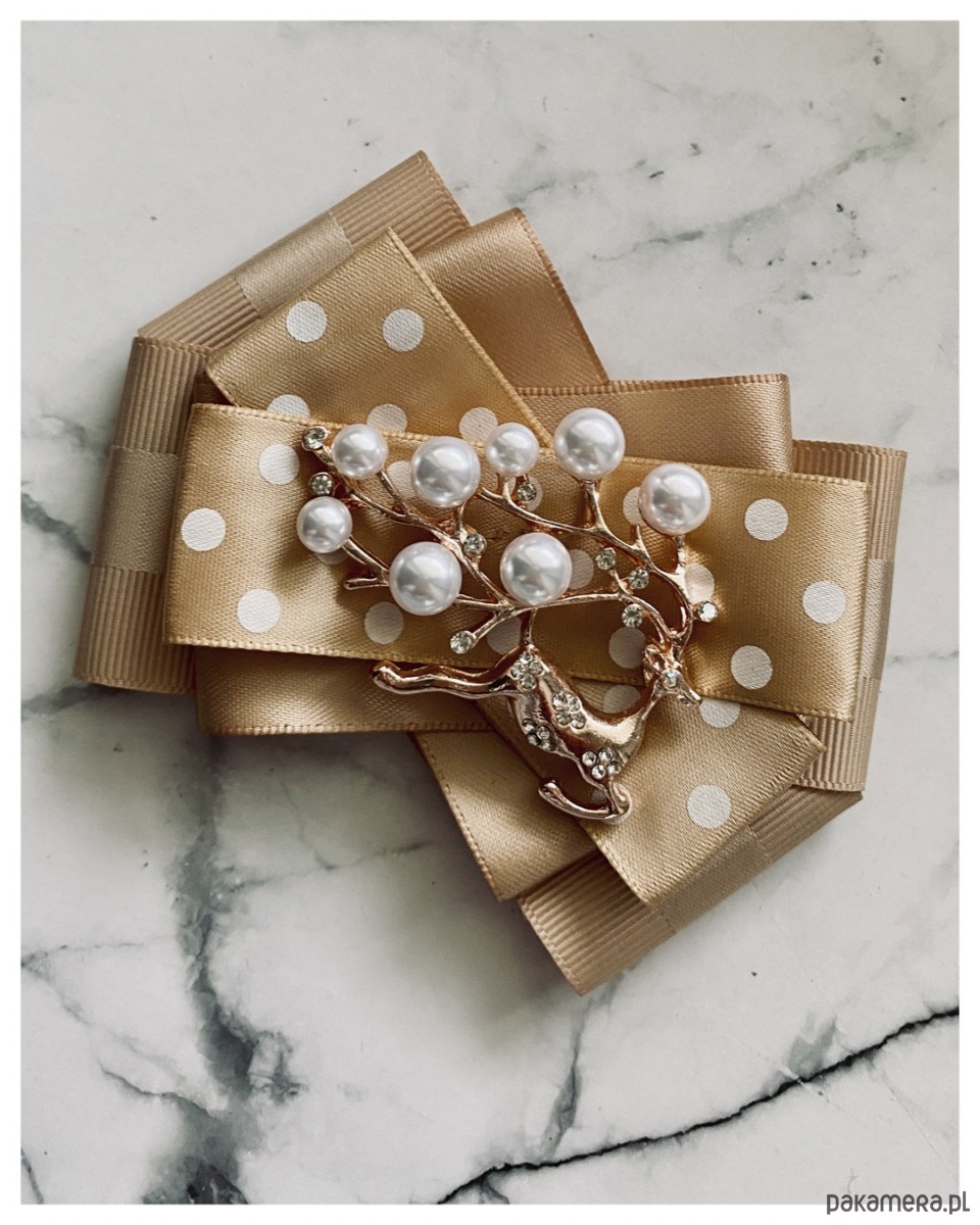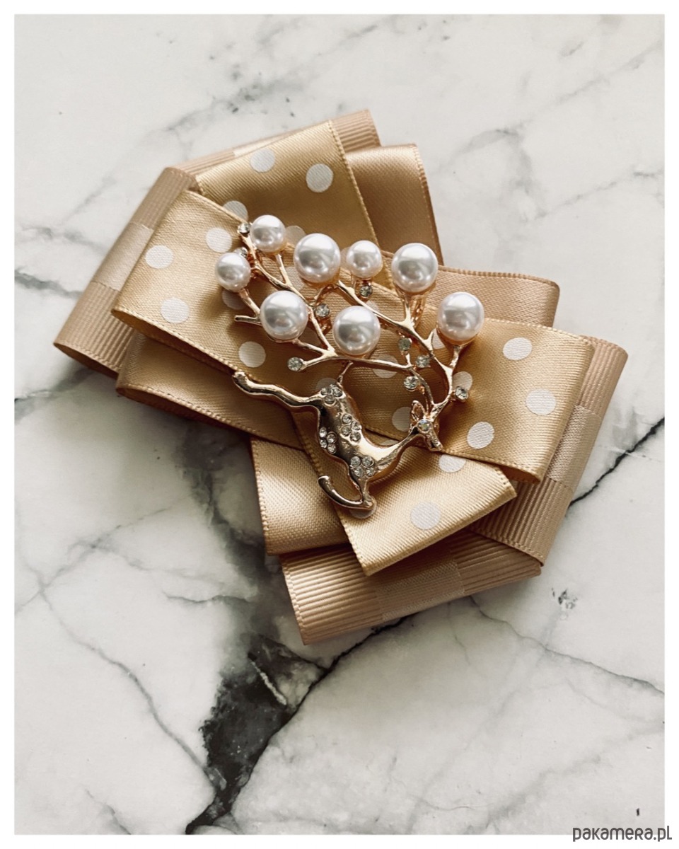 Broszka wykonana z wysokiej jakości taśm i dodatków.