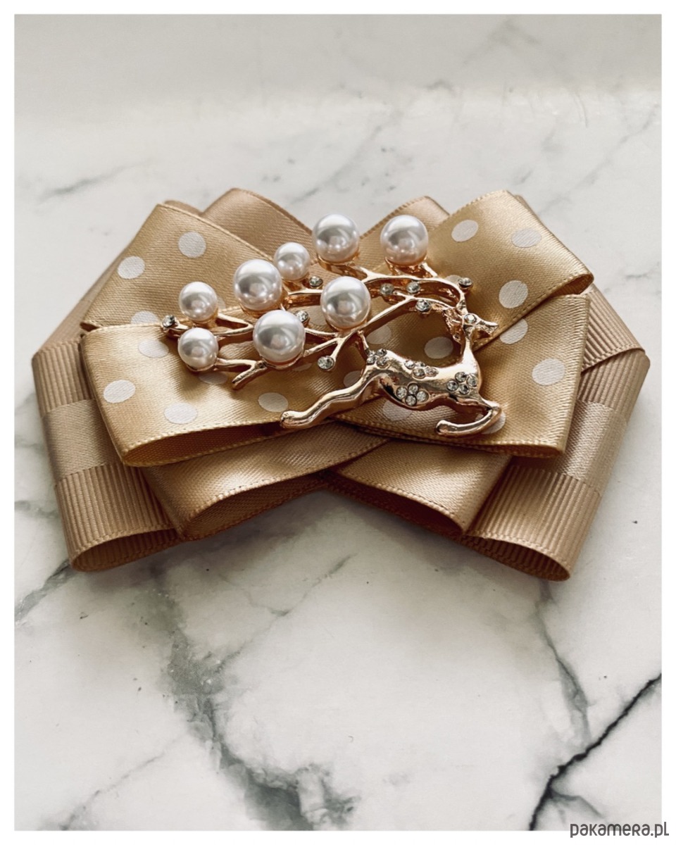 Piękny Renifer w kolorze złotym wysadzany drobnymi cyrkoniami i perełkami.