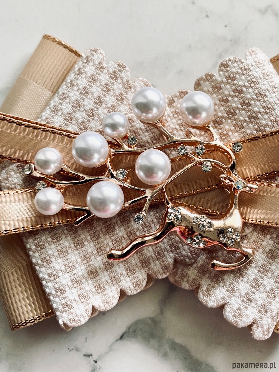 Piękny Renifer w kolorze złotym wysadzany drobnymi cyrkoniami i perełkami.