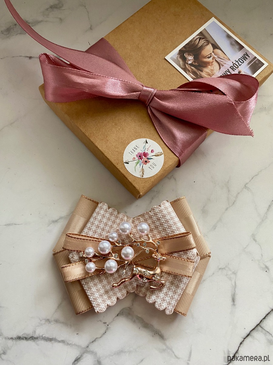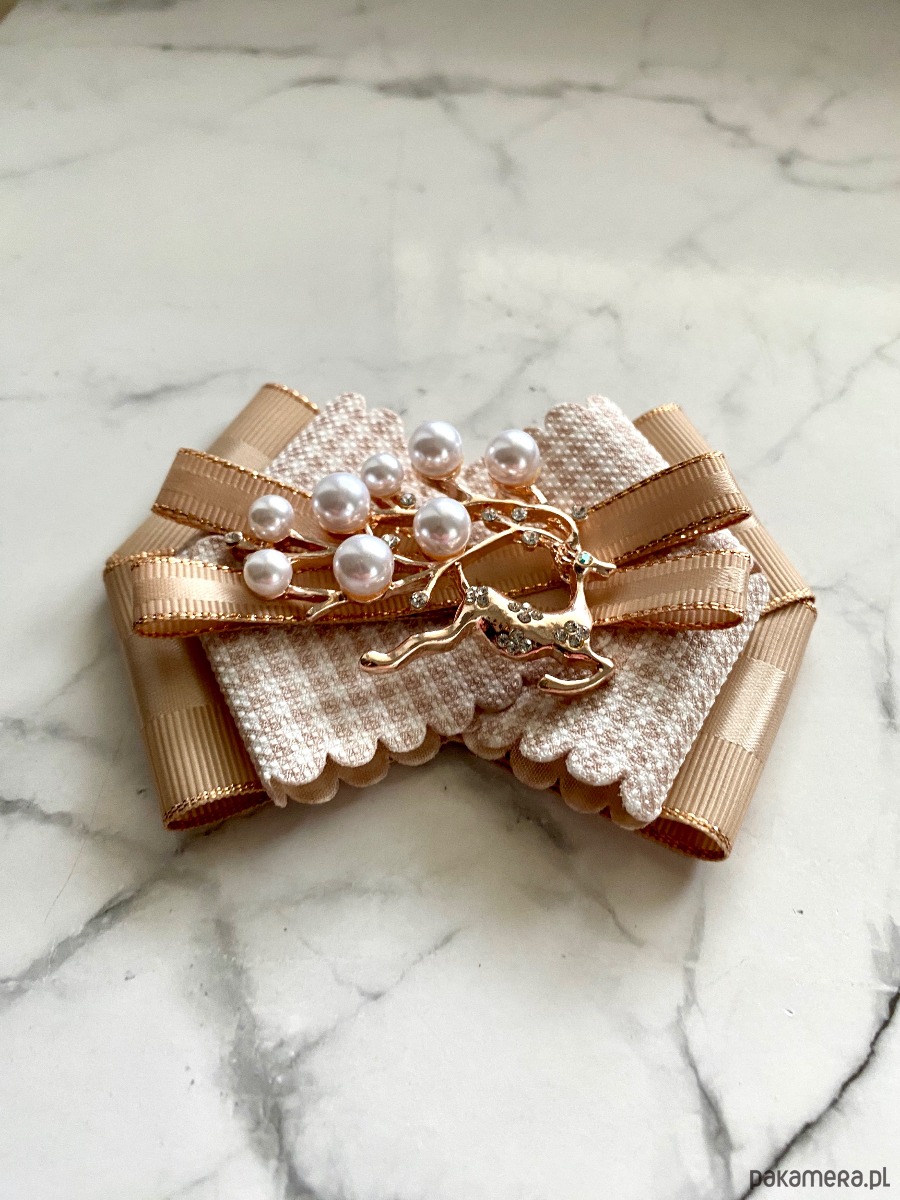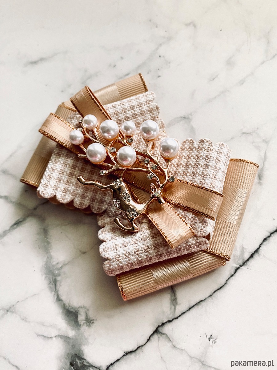 Broszka wykonana z wysokiej jakości taśm i dodatków.