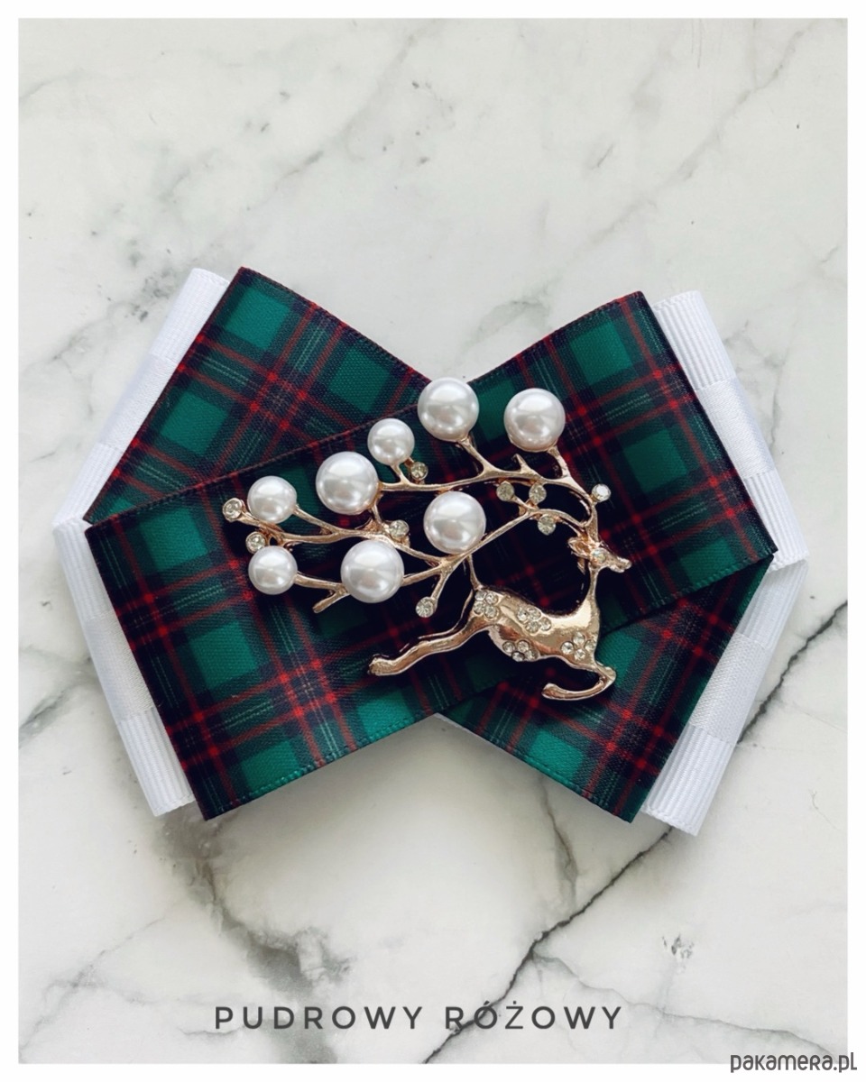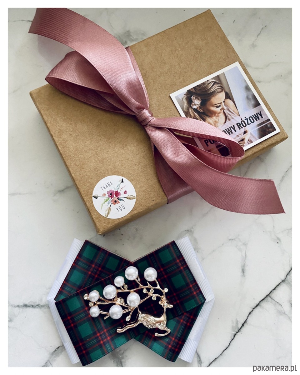 Broszka wykonana z wysokiej jakości taśm i dodatków.