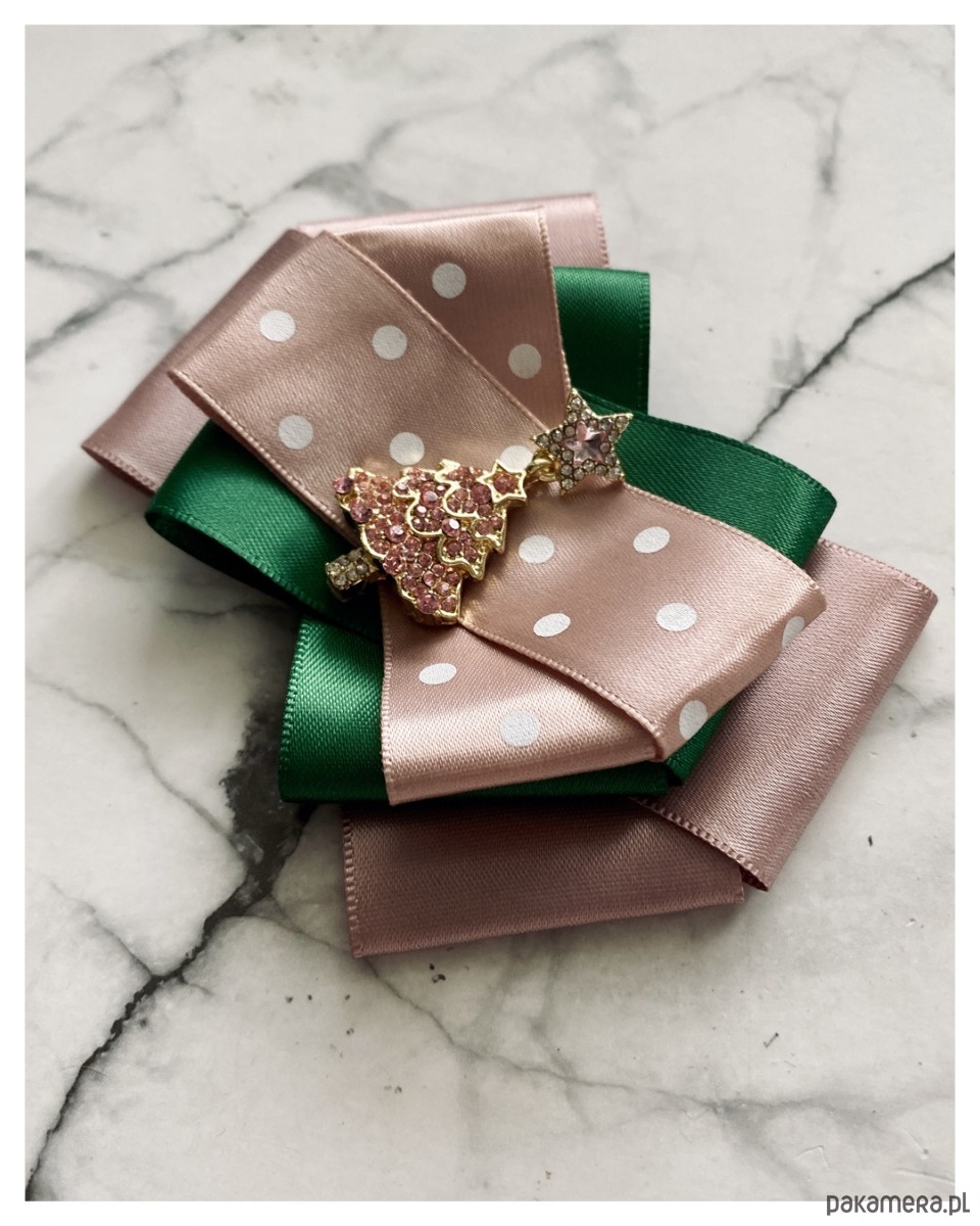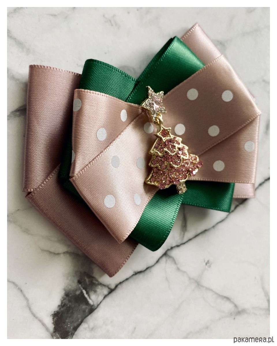 Brosza z różową Choinką z kryształków Mikołajki Święta