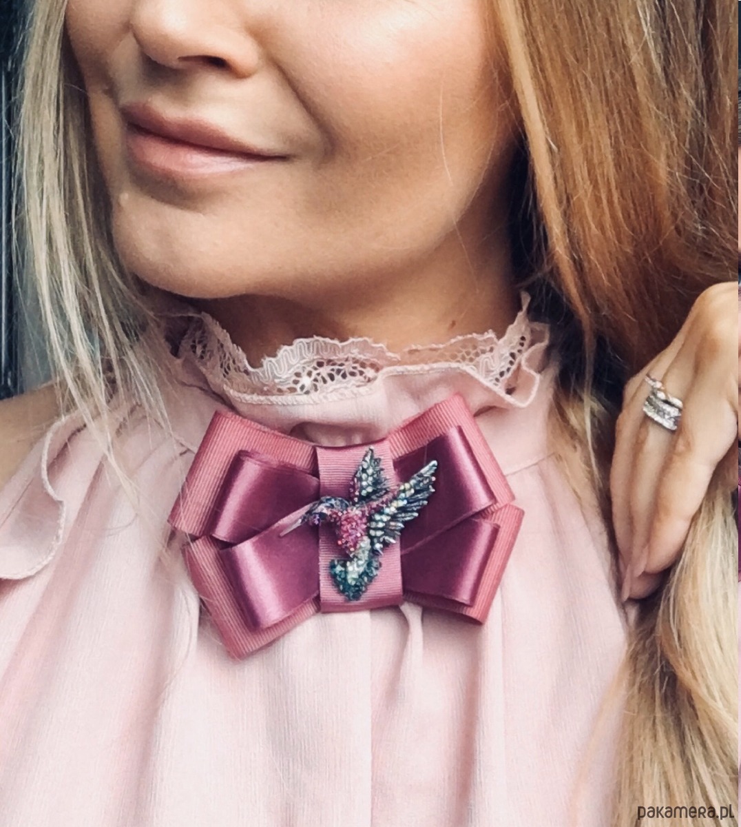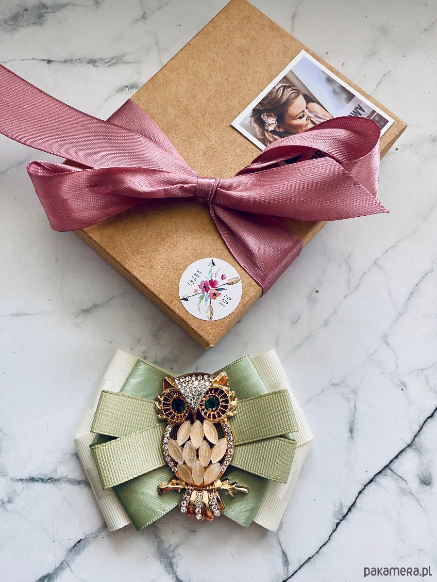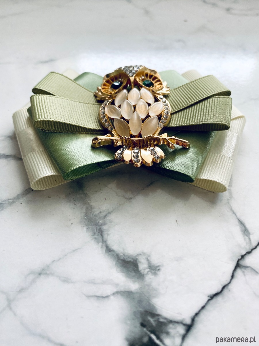 Broszka wykonana z wysokiej jakości taśm i dodatków.