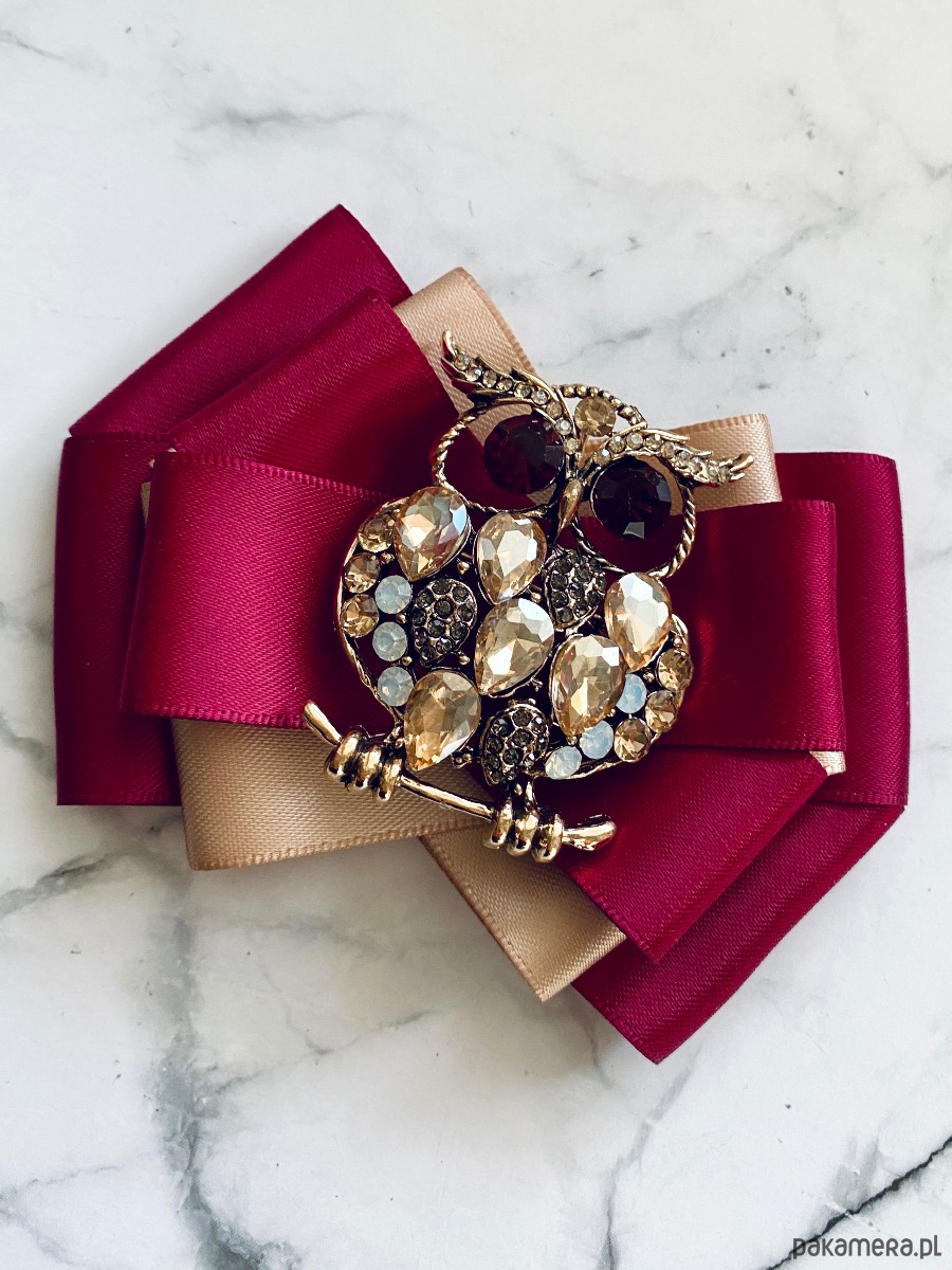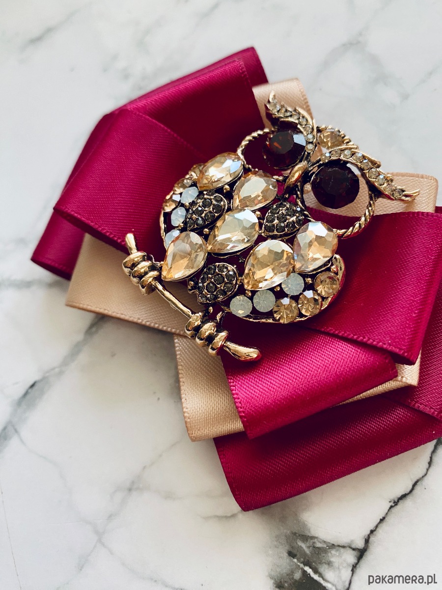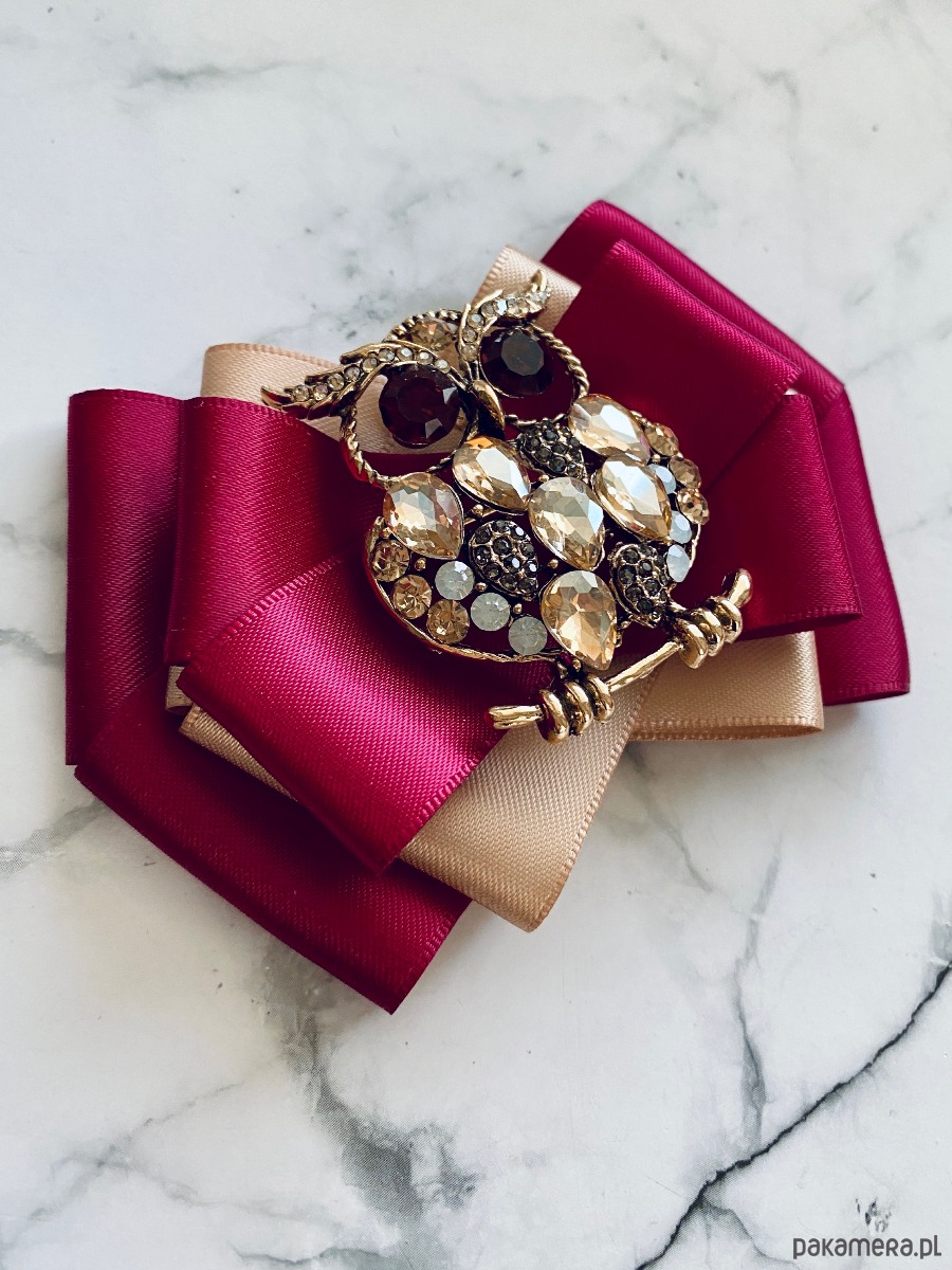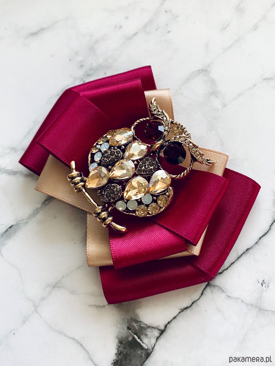 Broszka wykonana z wysokiej jakości taśm i dodatków.