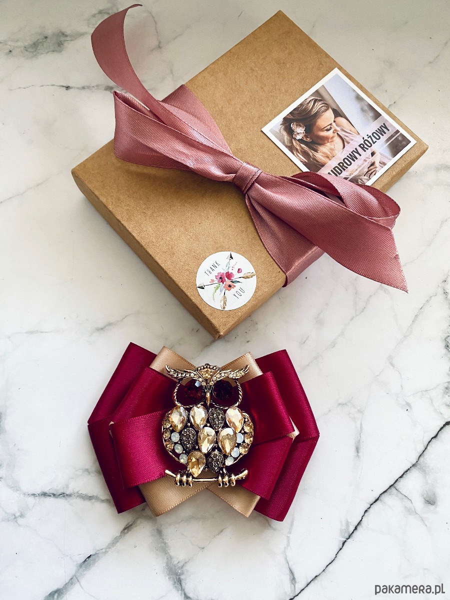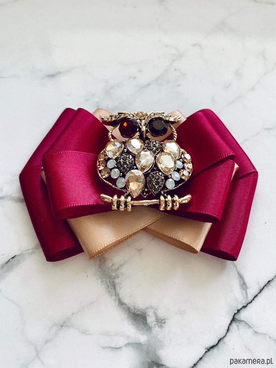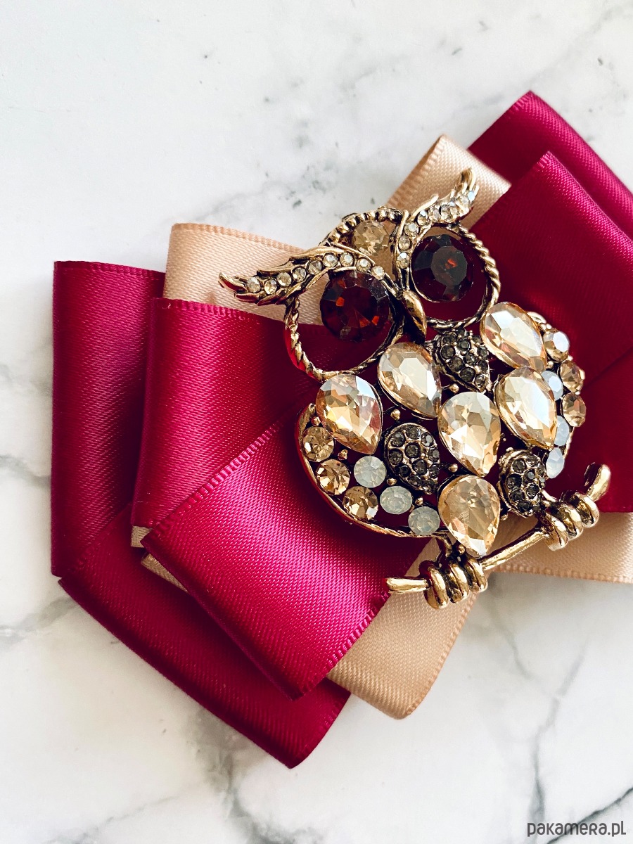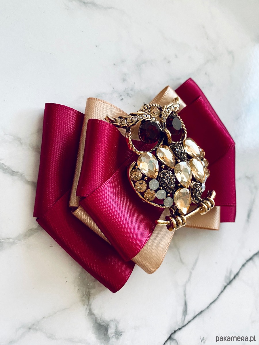 Broszka wykonana z wysokiej jakości taśm i dodatków.