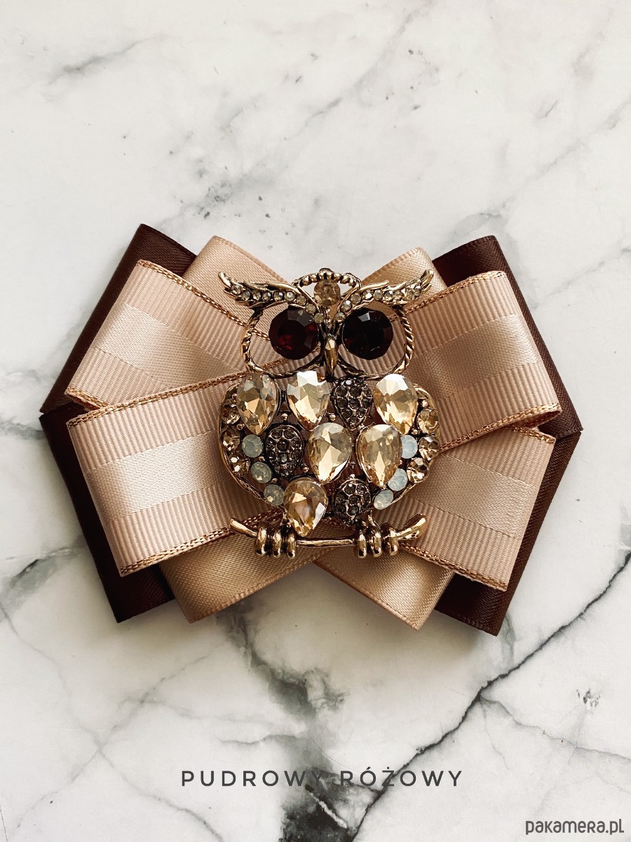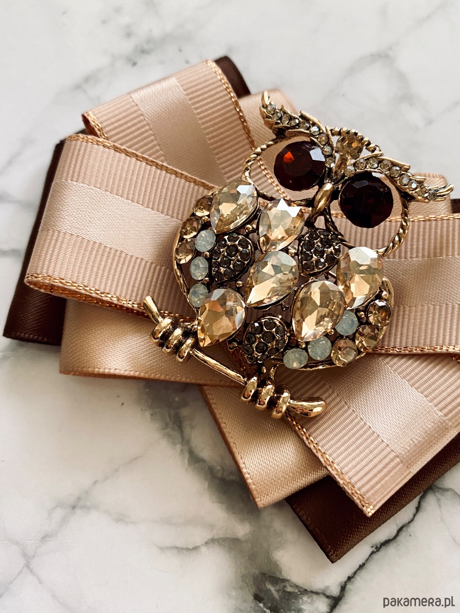Piękna Sowa wykonana z szampańskich kamieni oraz kryształków.