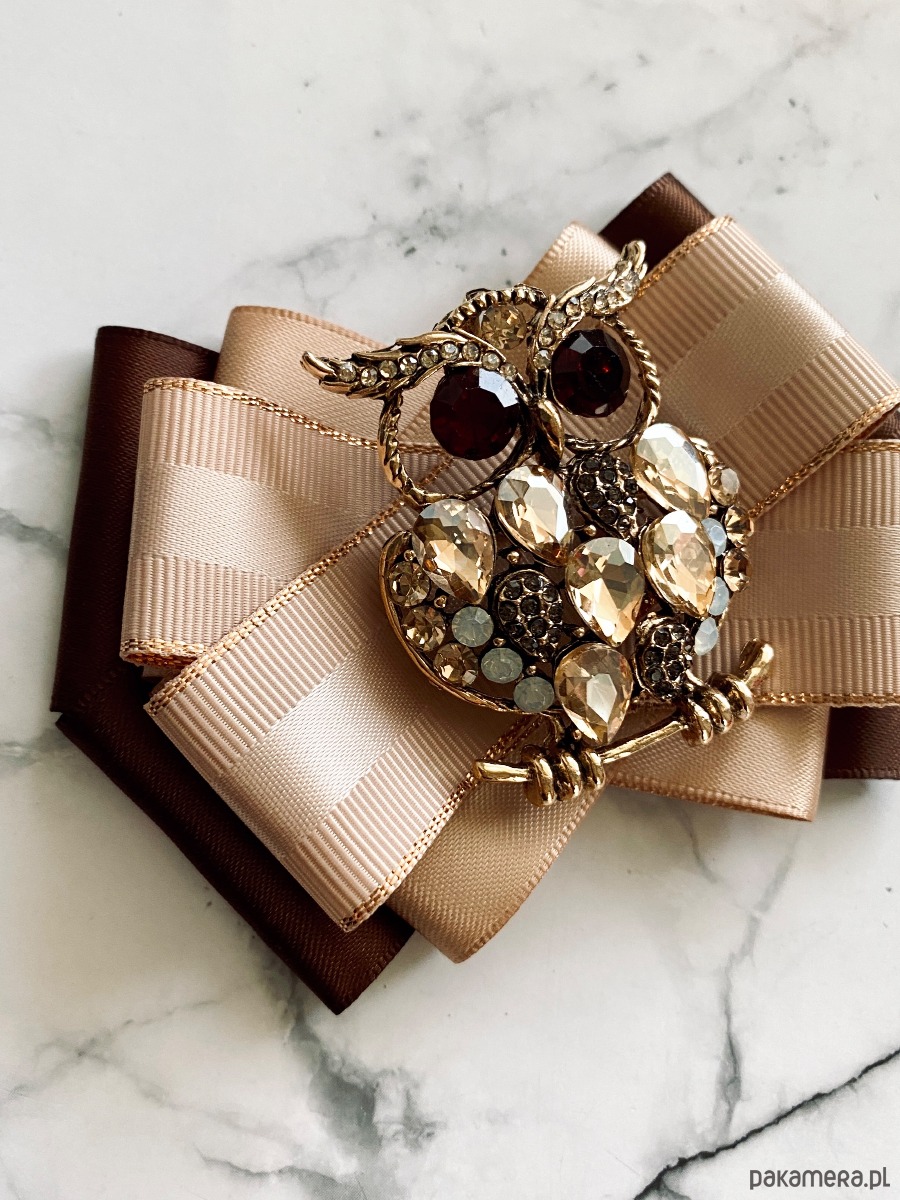 Broszka wykonana z wysokiej jakości taśm i dodatków.