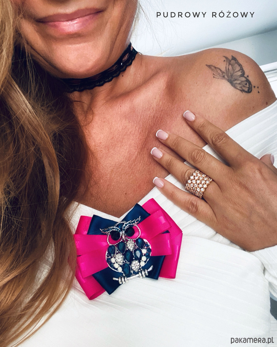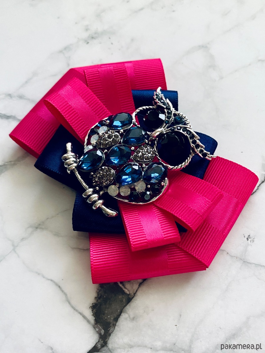 Broszka wykonana z wysokiej jakości taśm i dodatków.