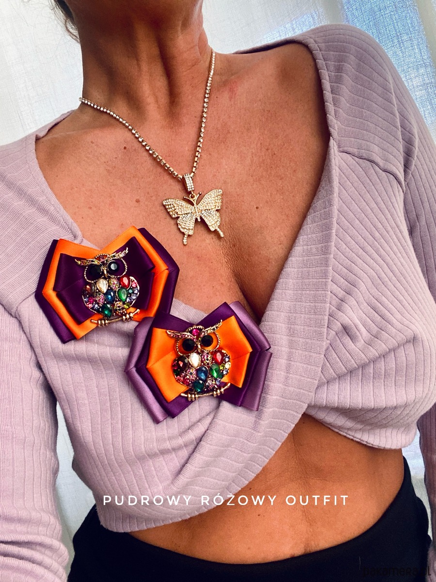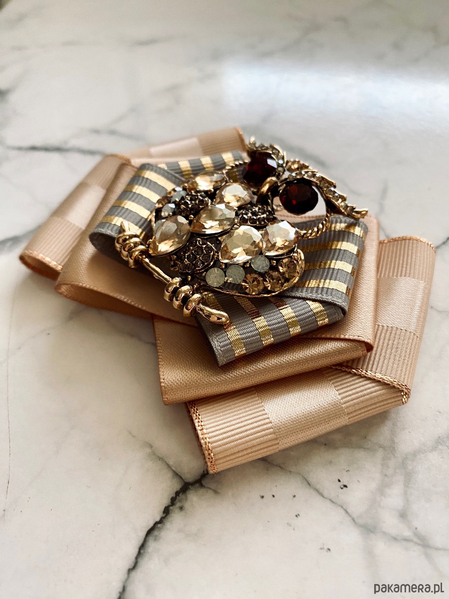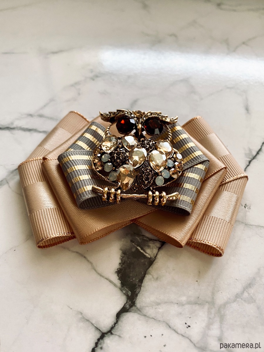 Broszka wykonana z wysokiej jakości taśm i dodatków.