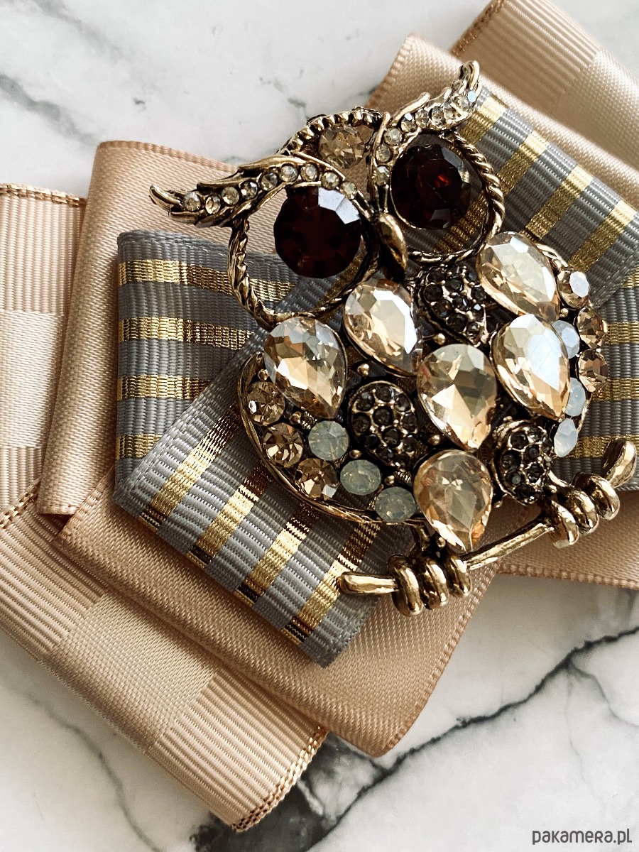 Piękna Sowa wykonana z szampańskich kamieni oraz kryształków.