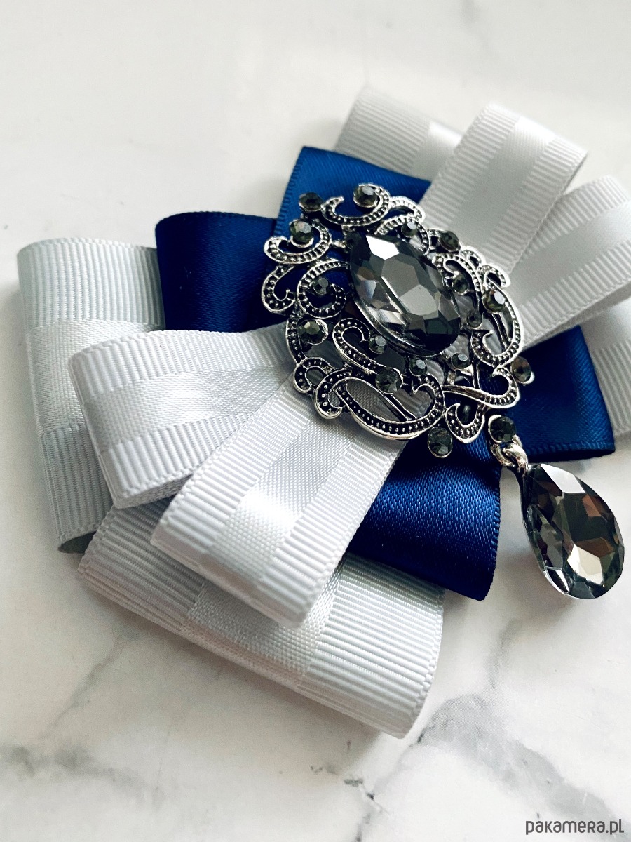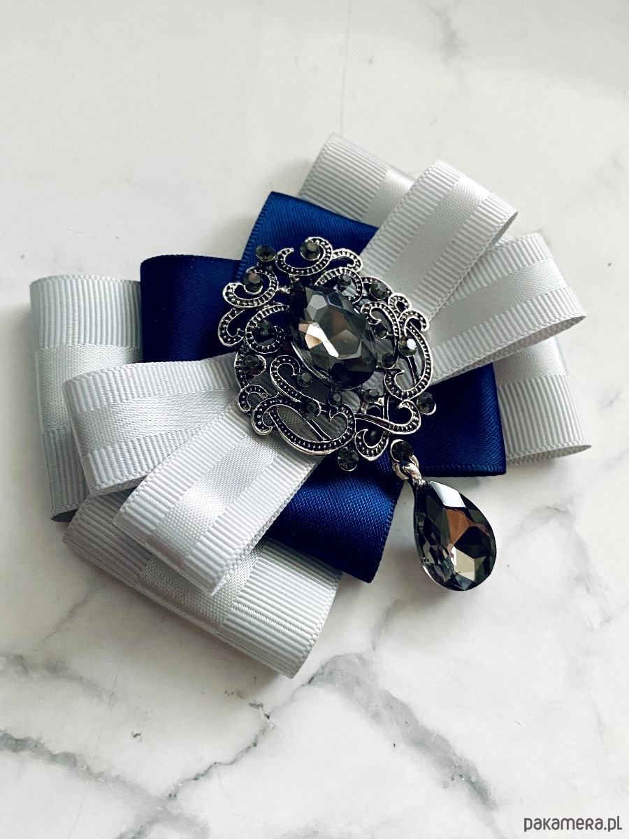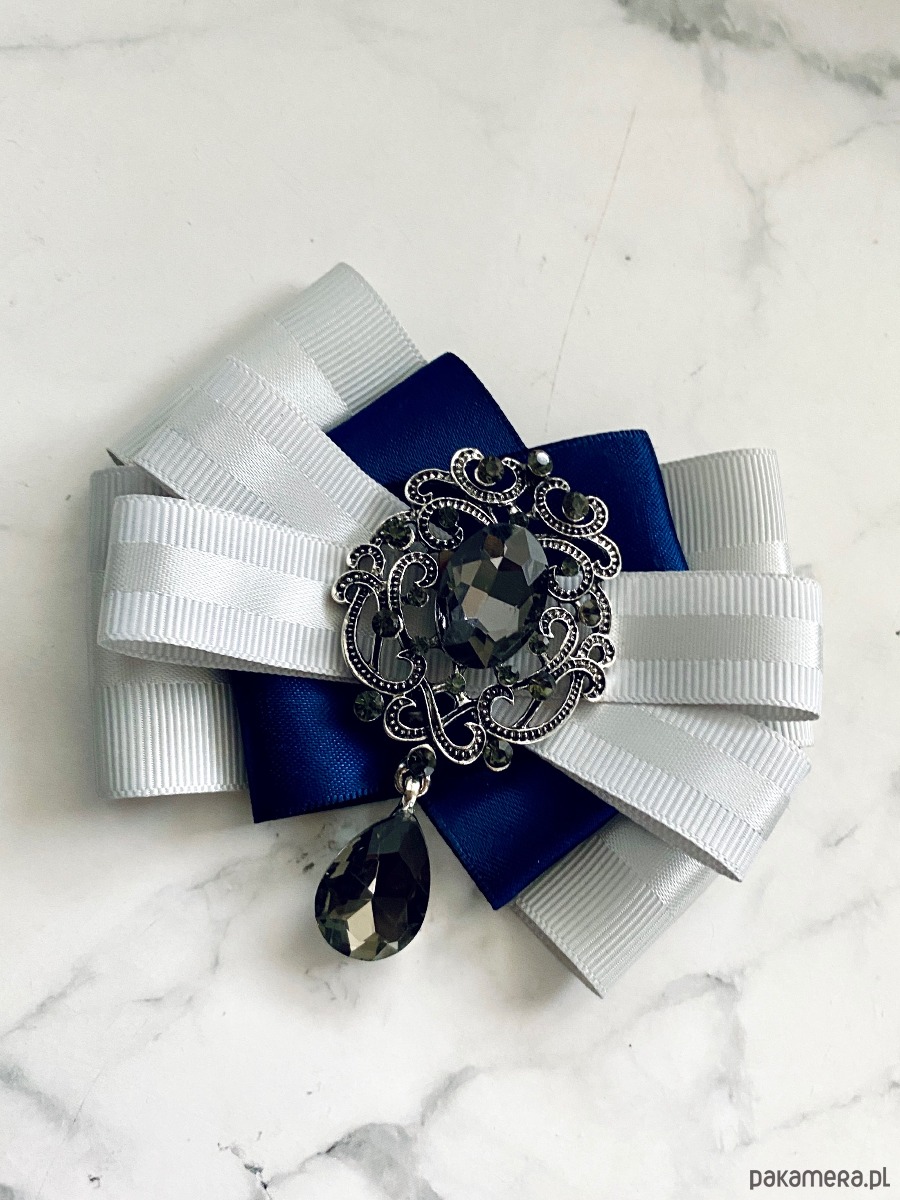 Broszka wykonana z wysokiej jakości taśm i dodatków.