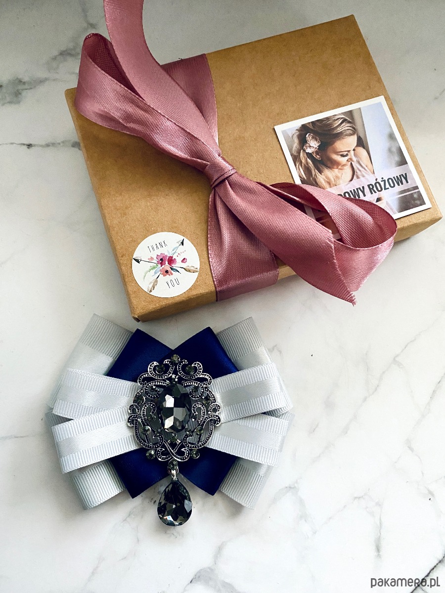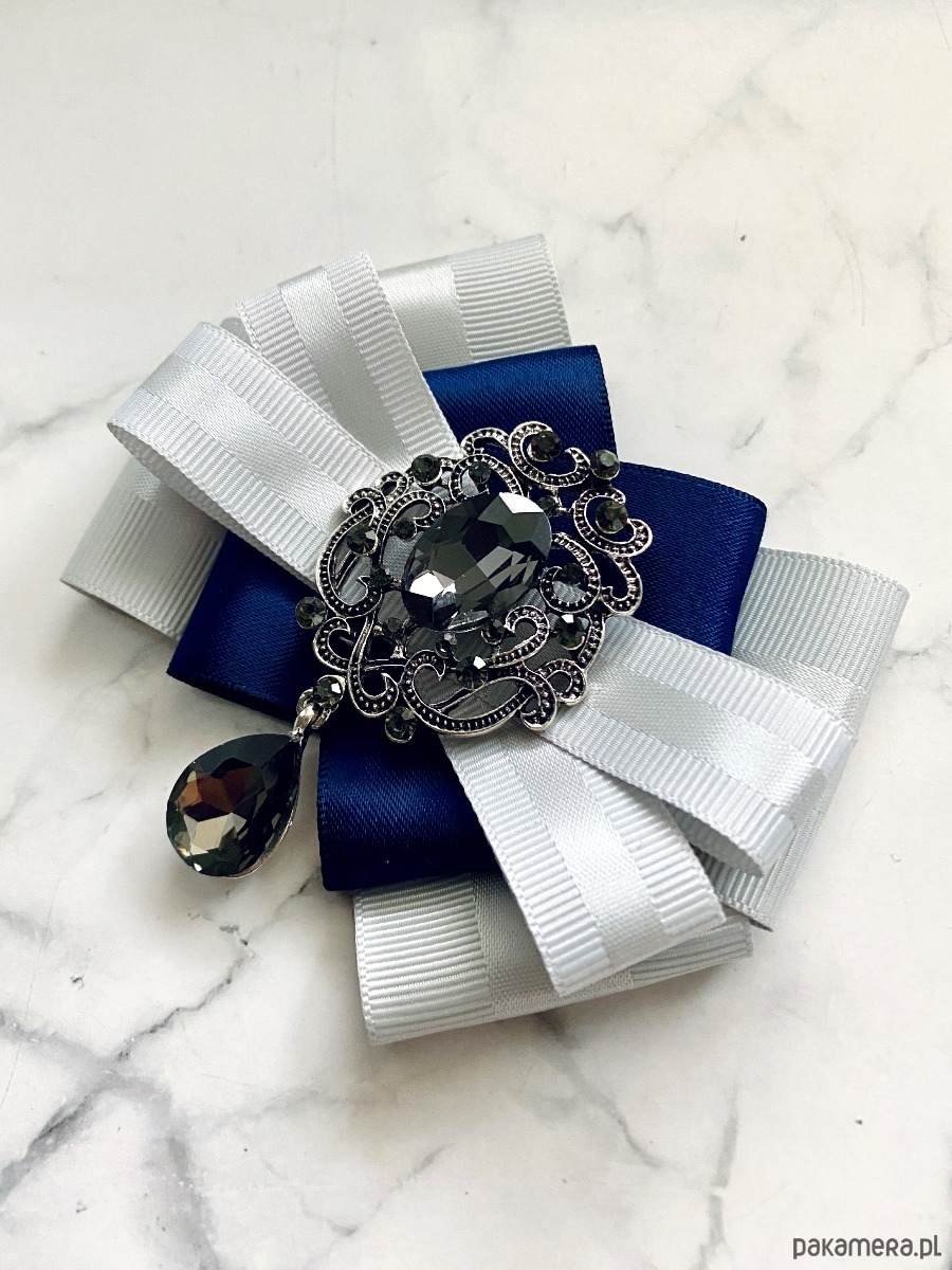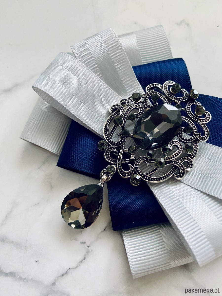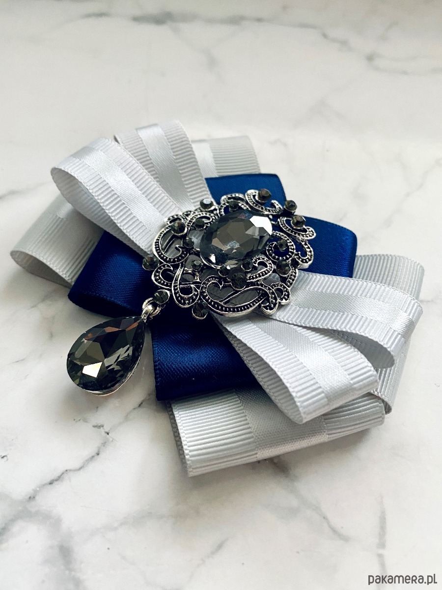 Broszka wykonana z wysokiej jakości taśm i dodatków.