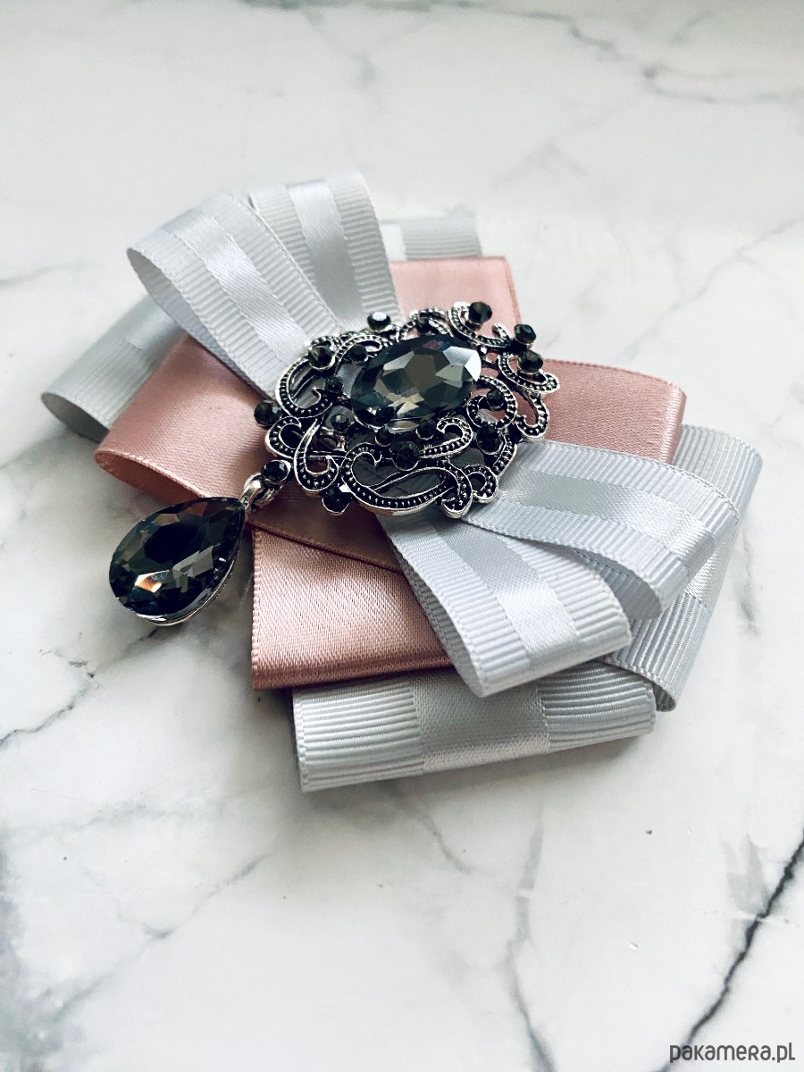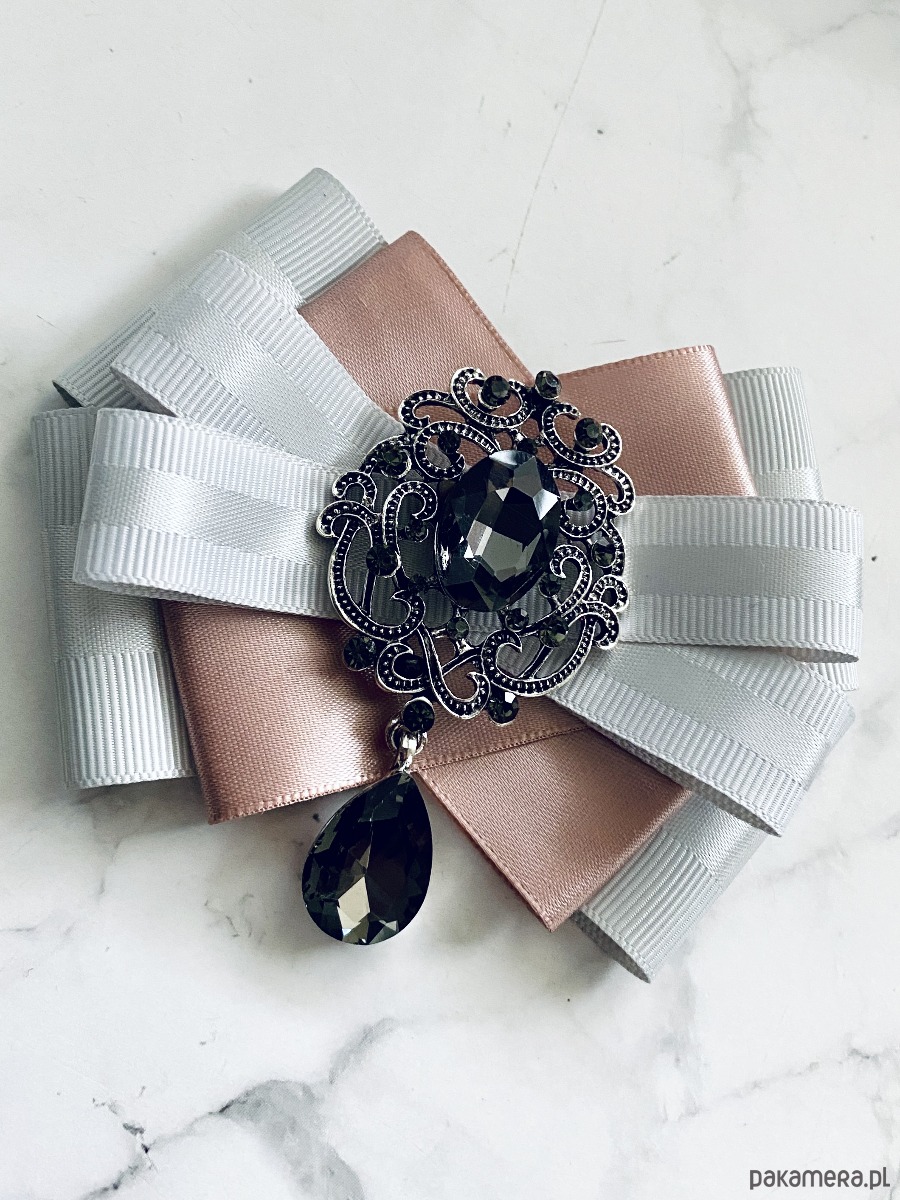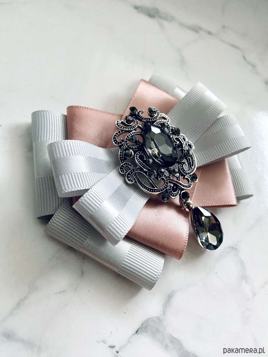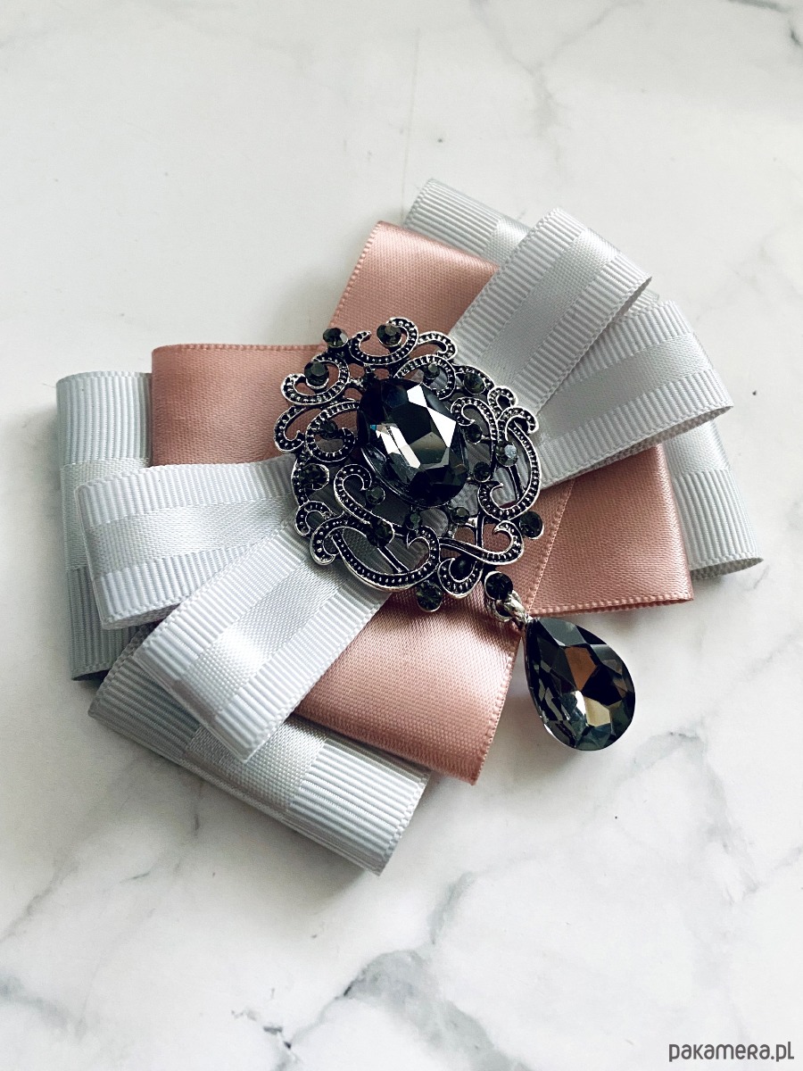 Broszka wykonana z wysokiej jakości taśm i dodatków.