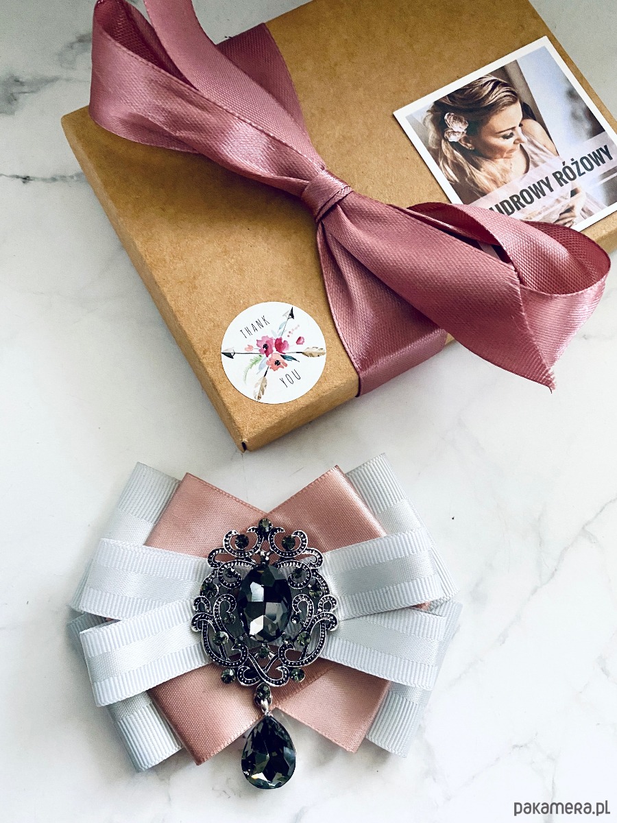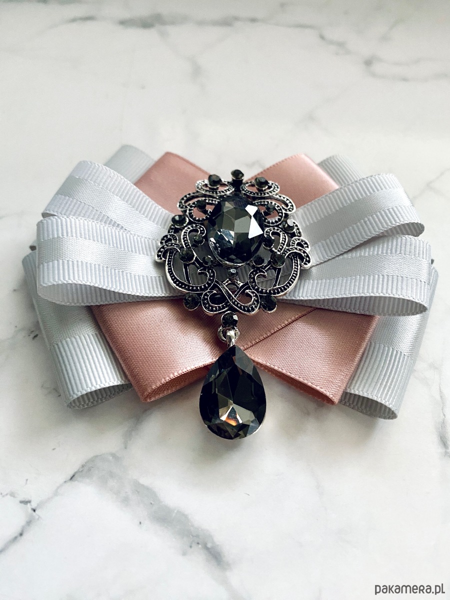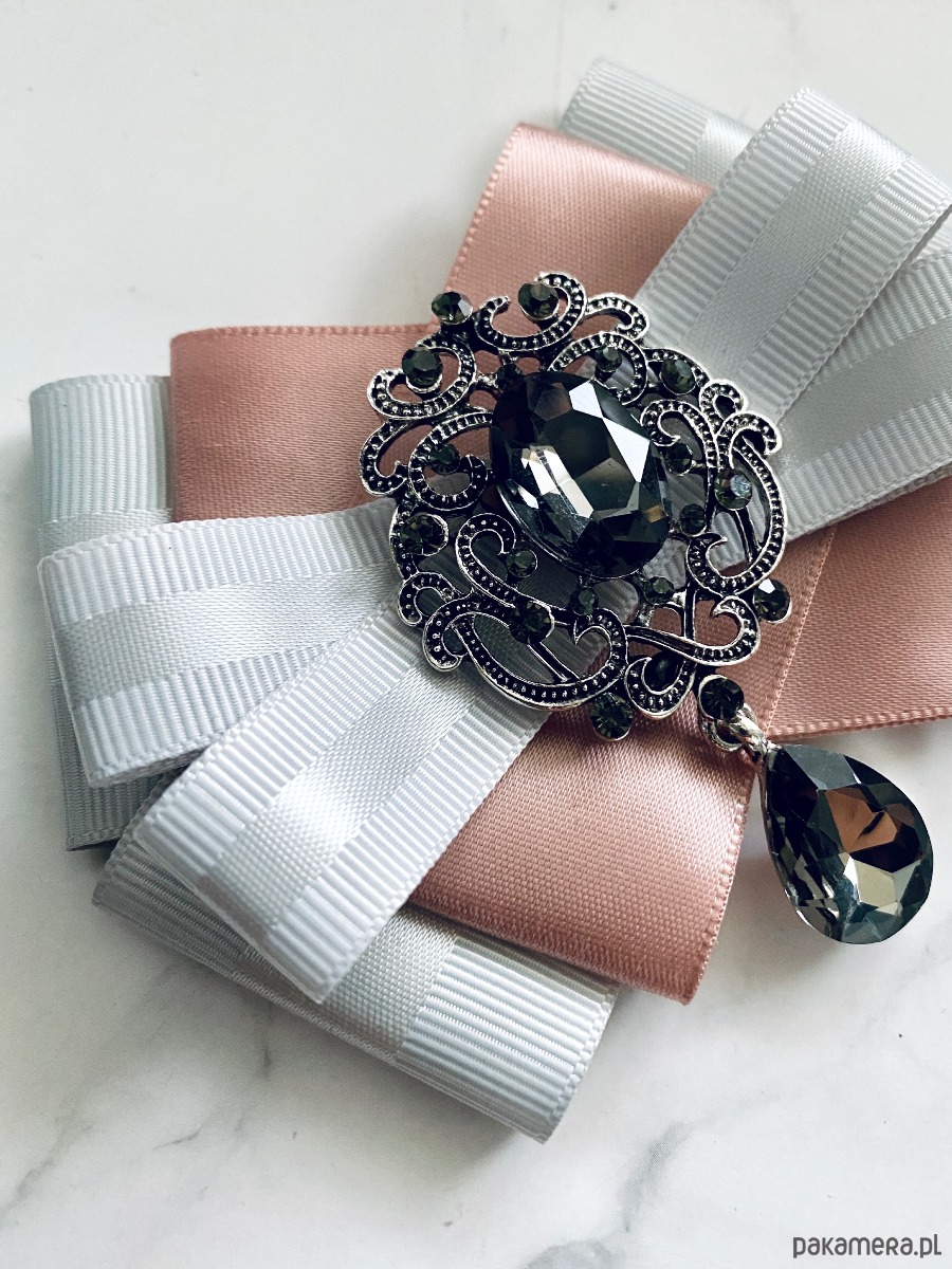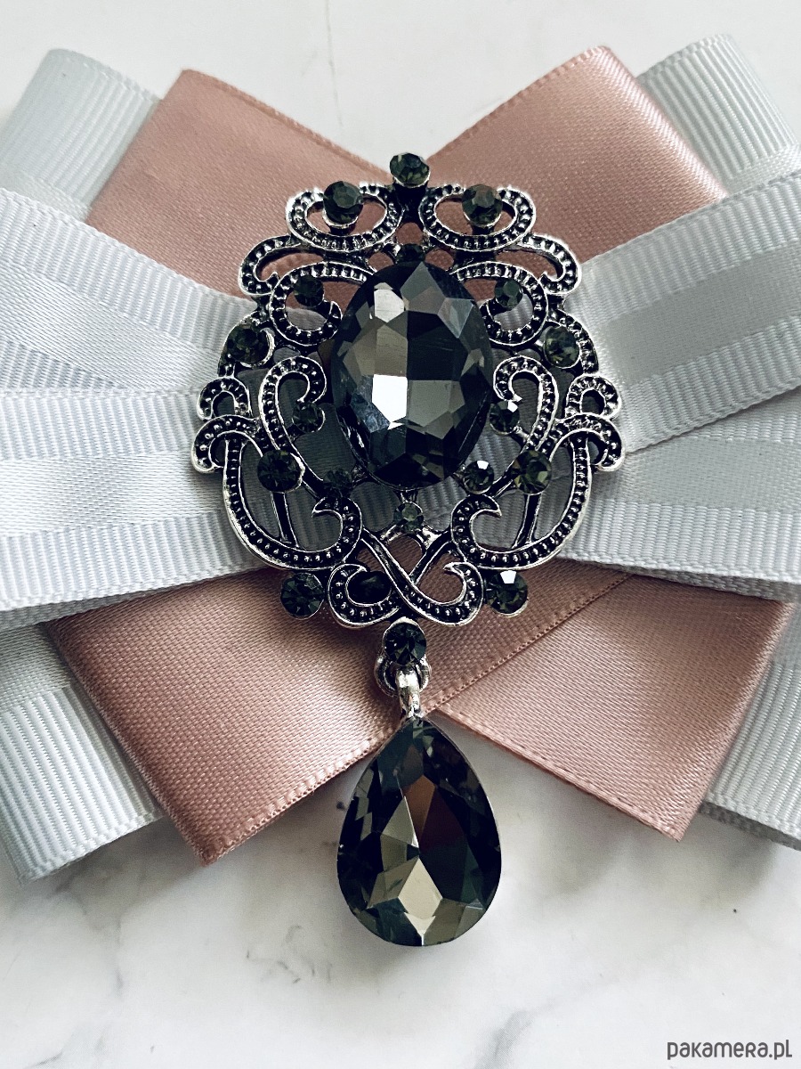 Broszka wykonana z wysokiej jakości taśm i dodatków.