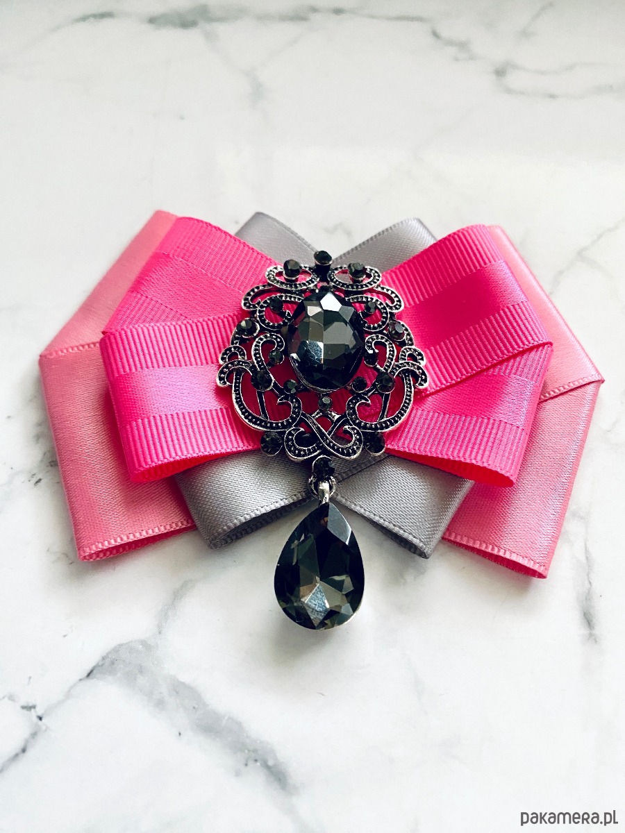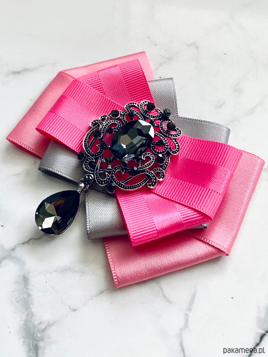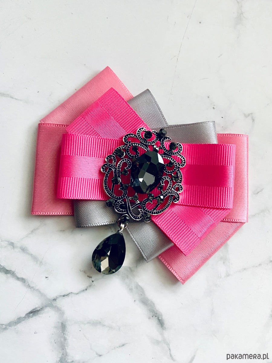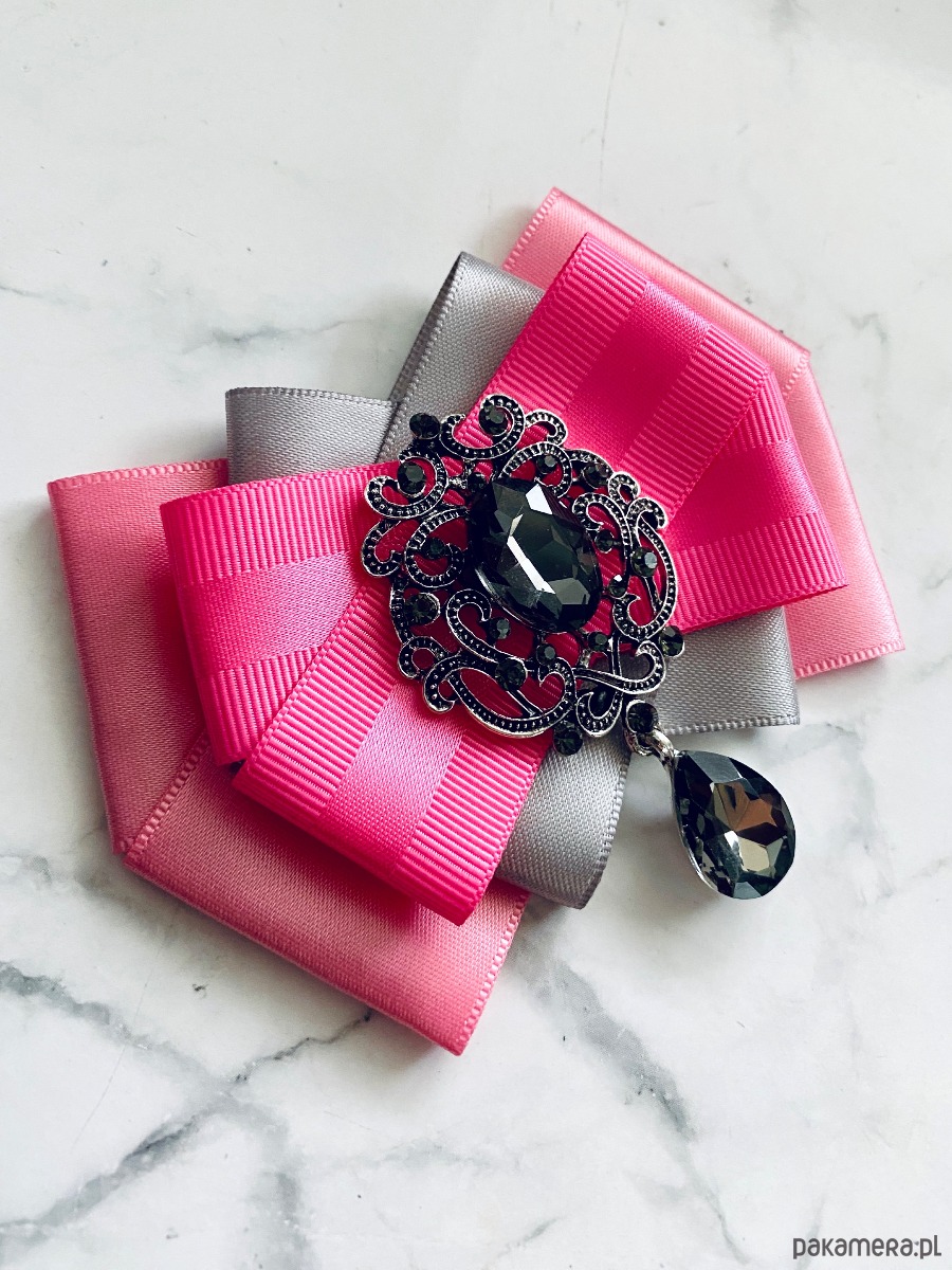 Broszka wykonana z wysokiej jakości taśm i dodatków.