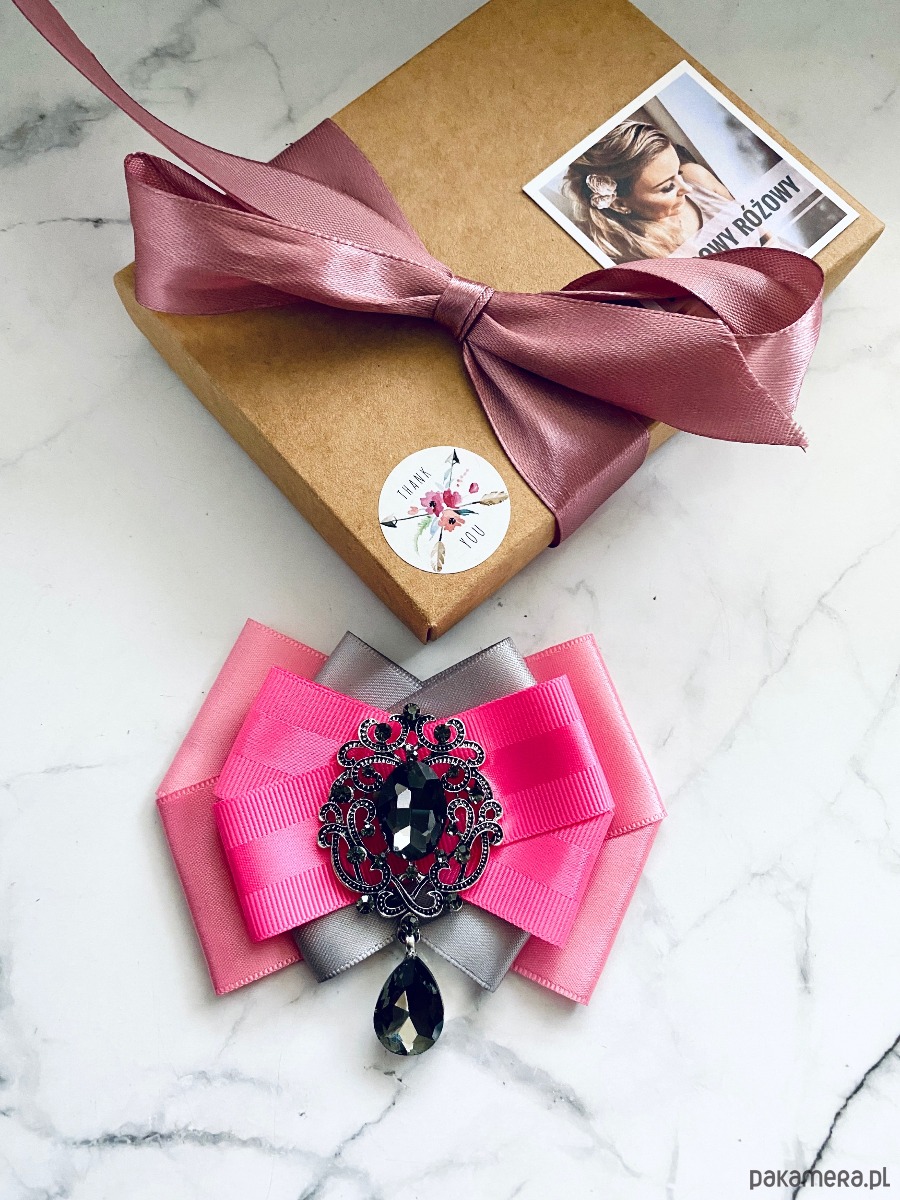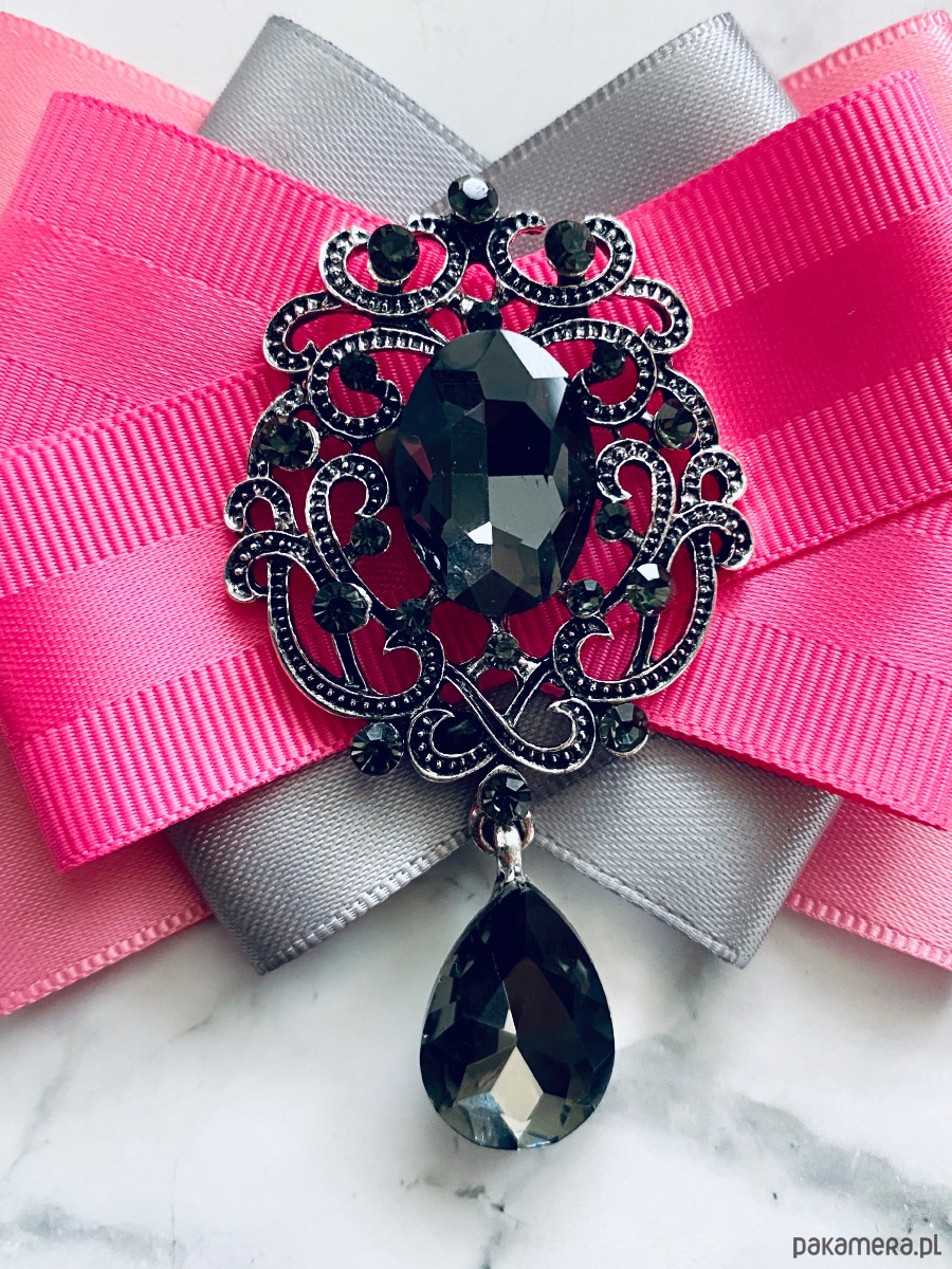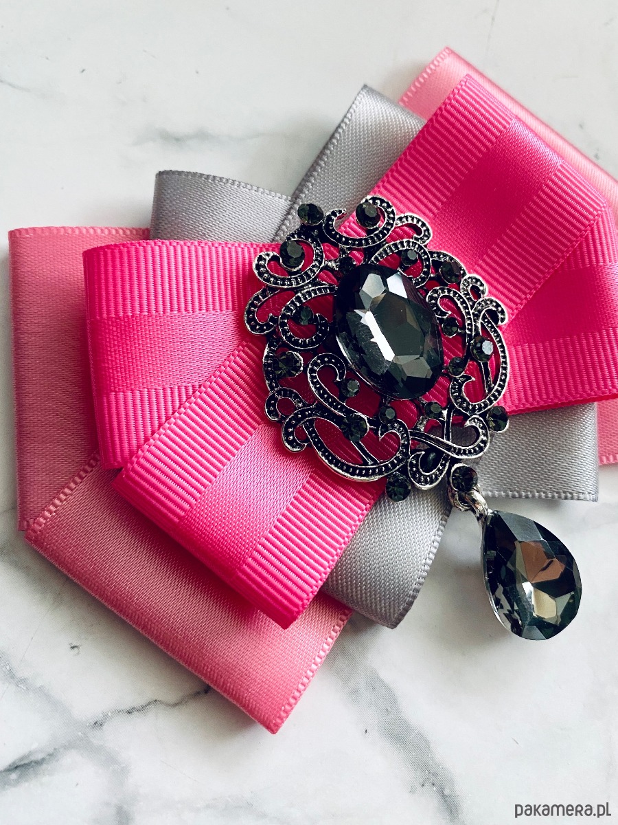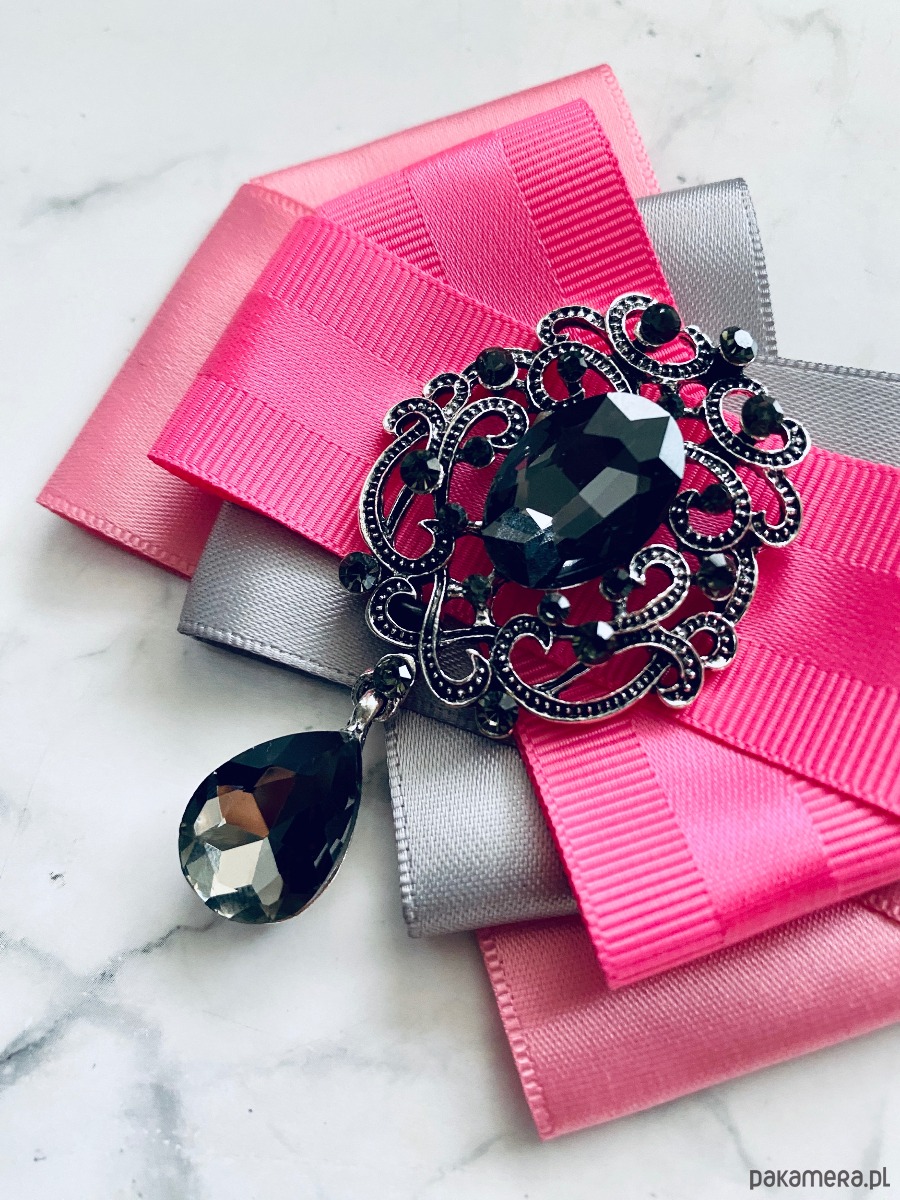 Broszka wykonana z wysokiej jakości taśm i dodatków.