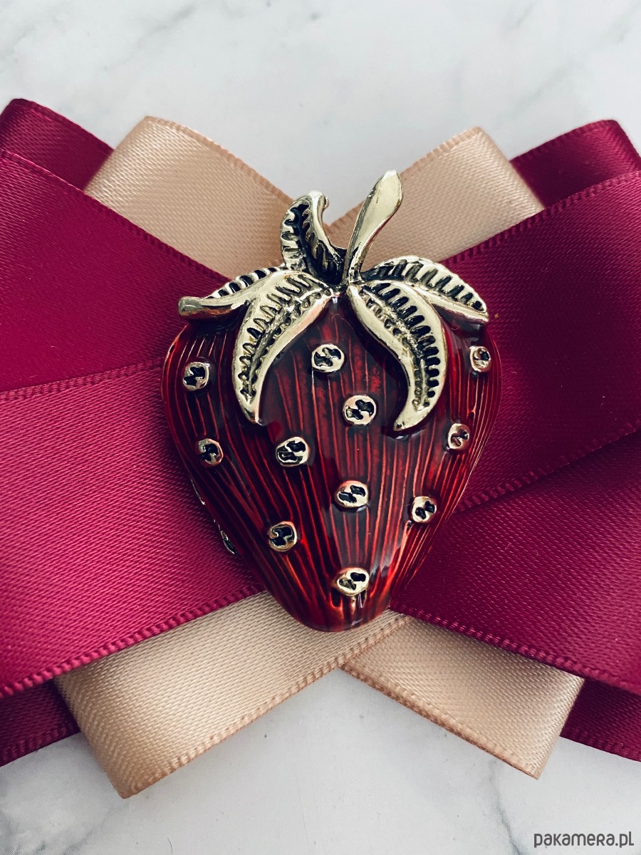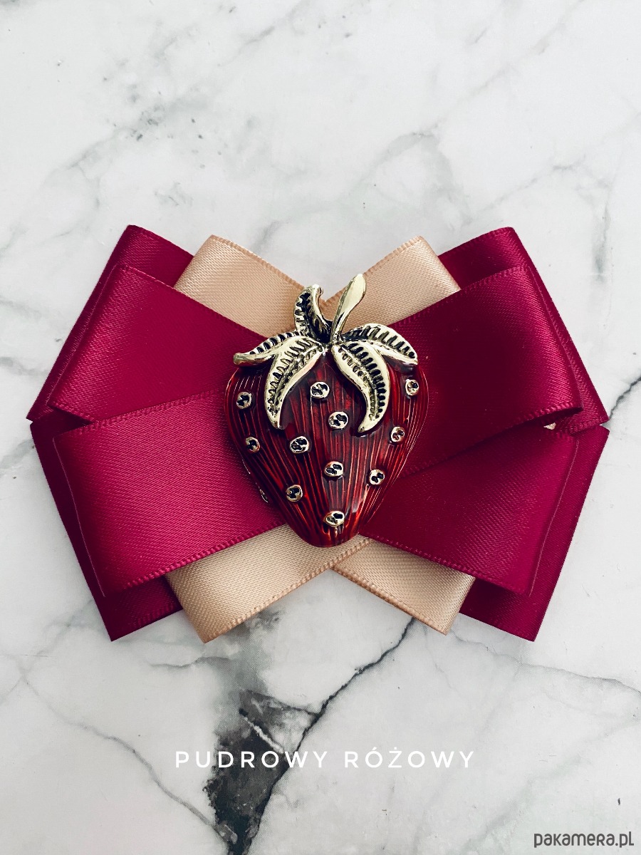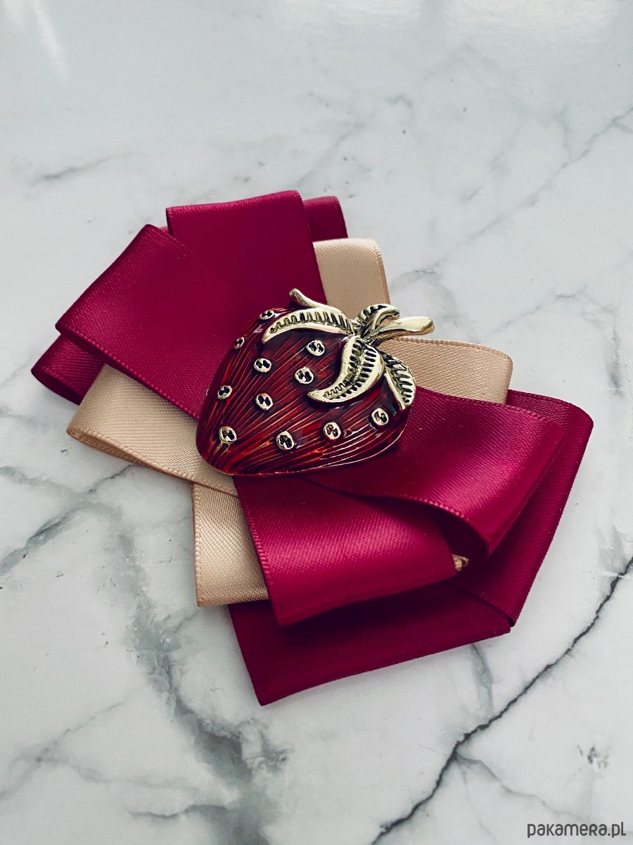 Kolory burgundu i beżu z cudną dużą ozdobą Truskawką.